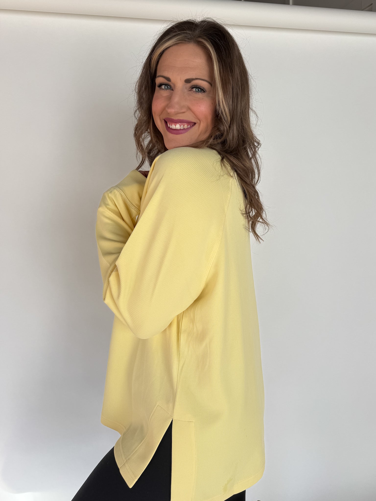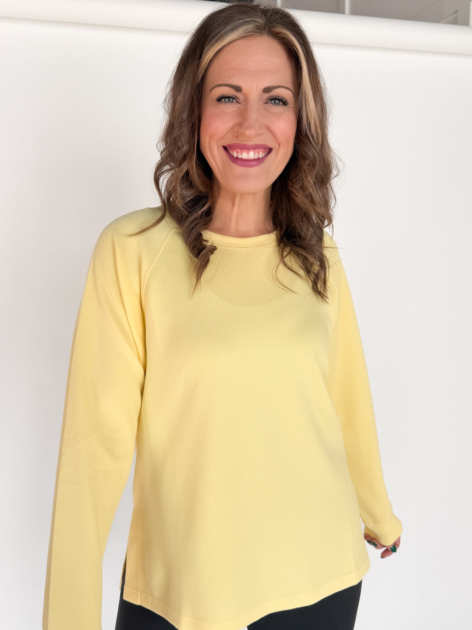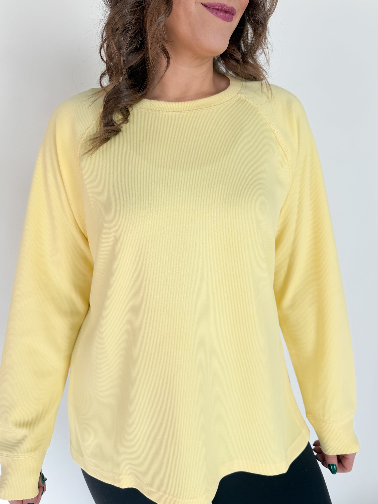 Luxe Ribbed Raglan Top-Yellow