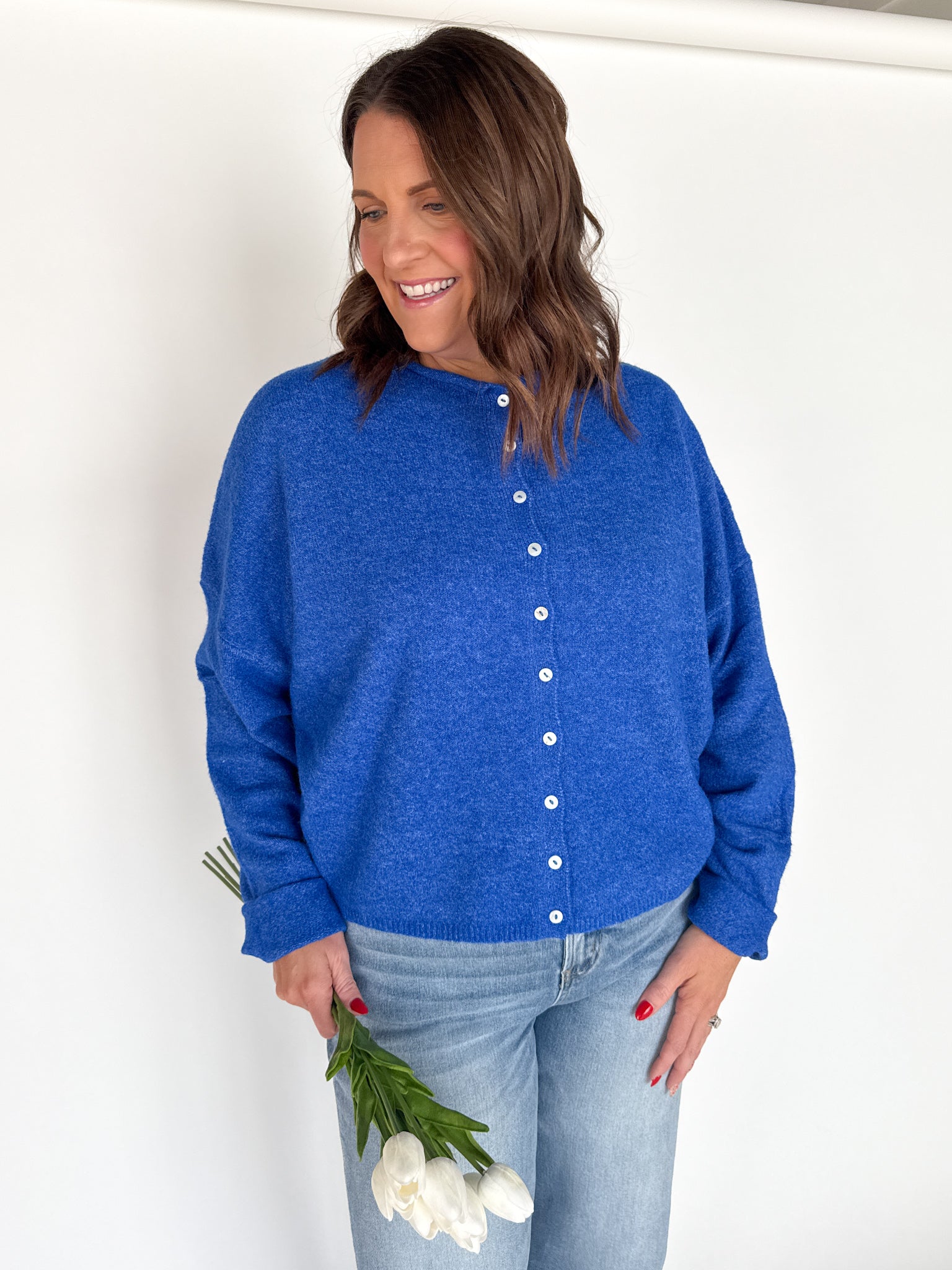 Our top-selling Piper Cardigan is back in a gorgeous royal blue you’ll love. Lightweight and endlessly versatile, it’s perfect for layering or wearing on its own. Style it buttoned up for a polished look or leave it unbuttoned over your favorite tee or tank. A tried-and-true favorite you’ll reach for season after season.