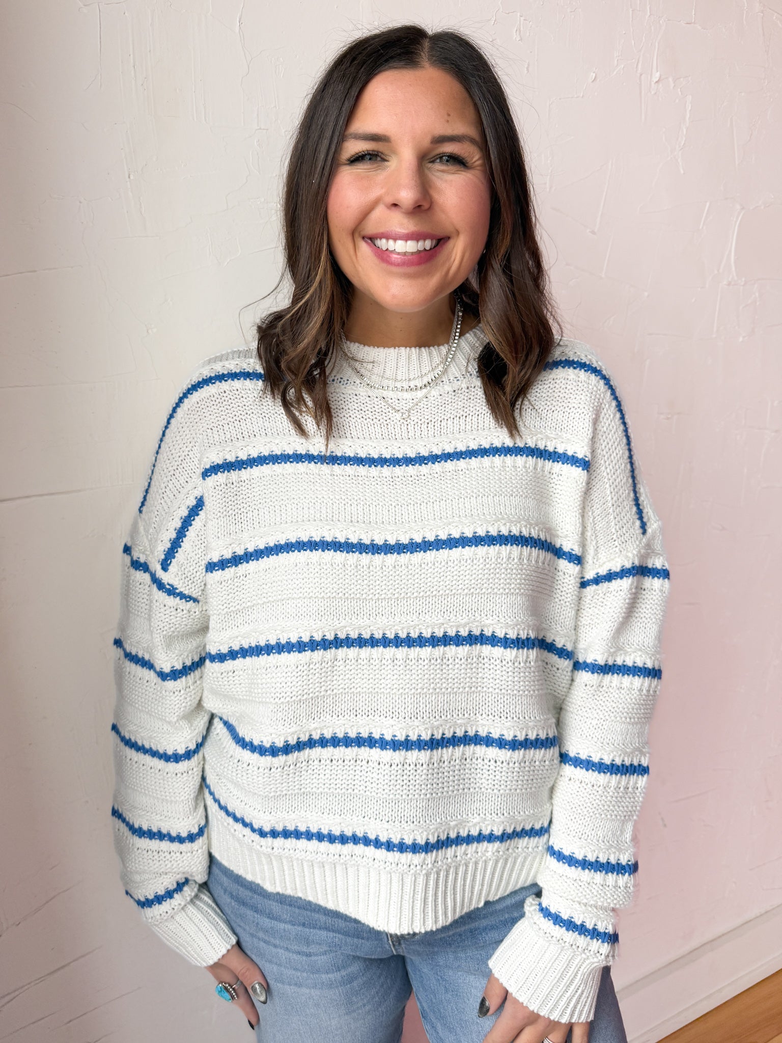 Blue Striped Sweater- Ivory
