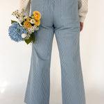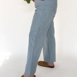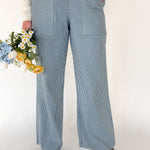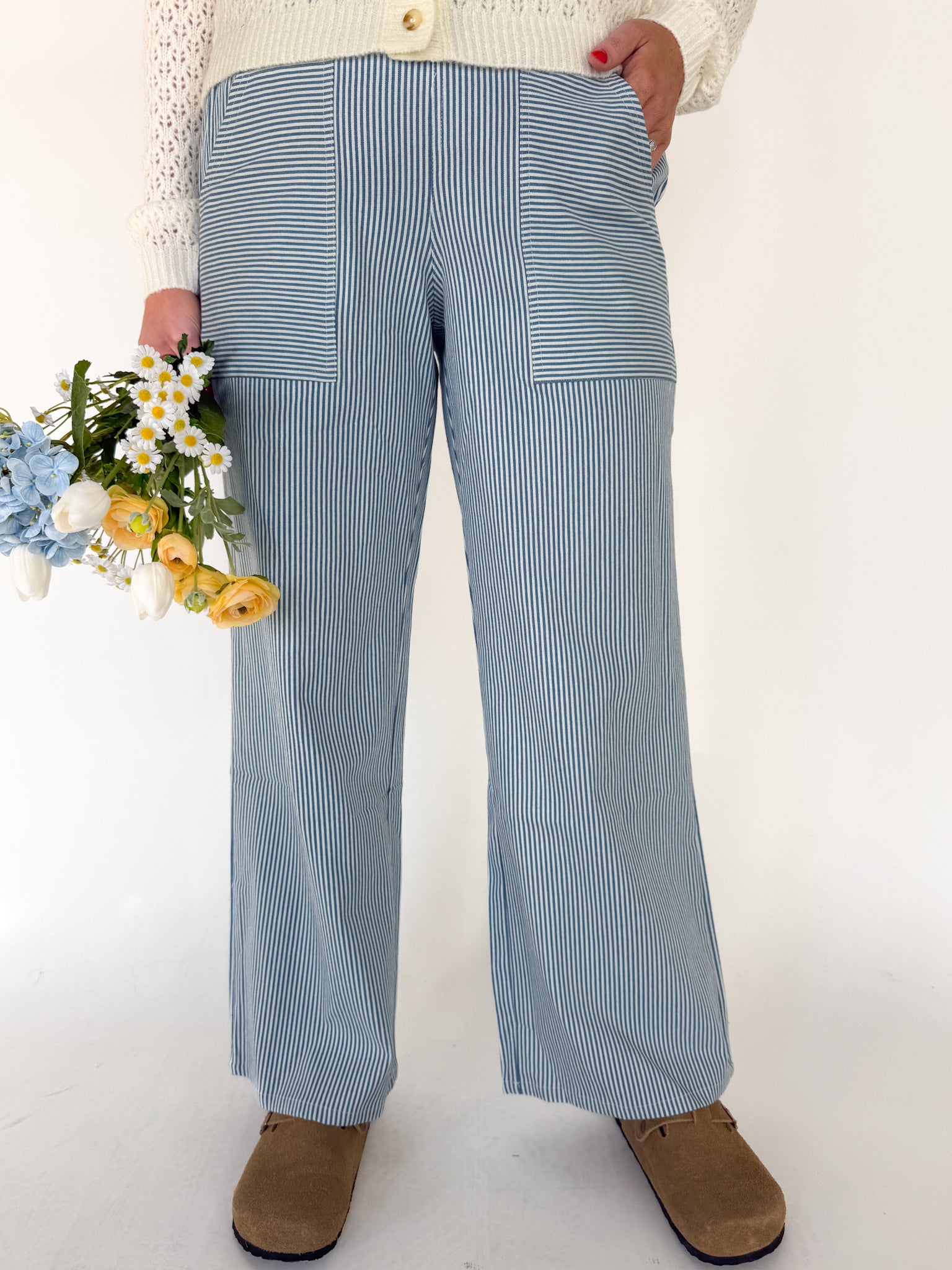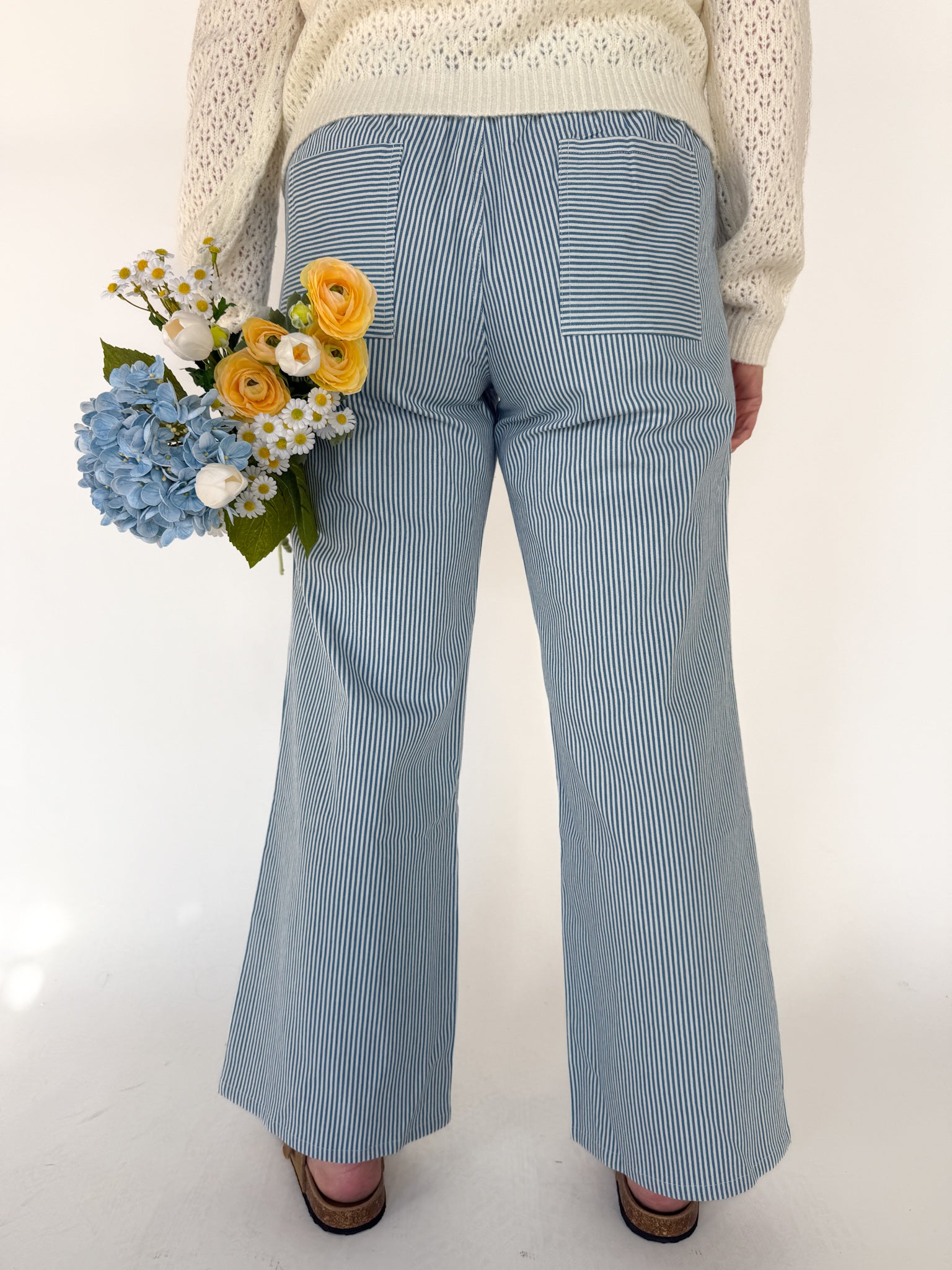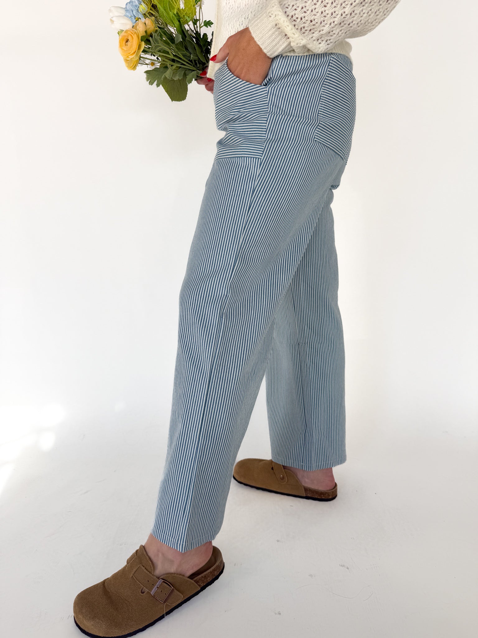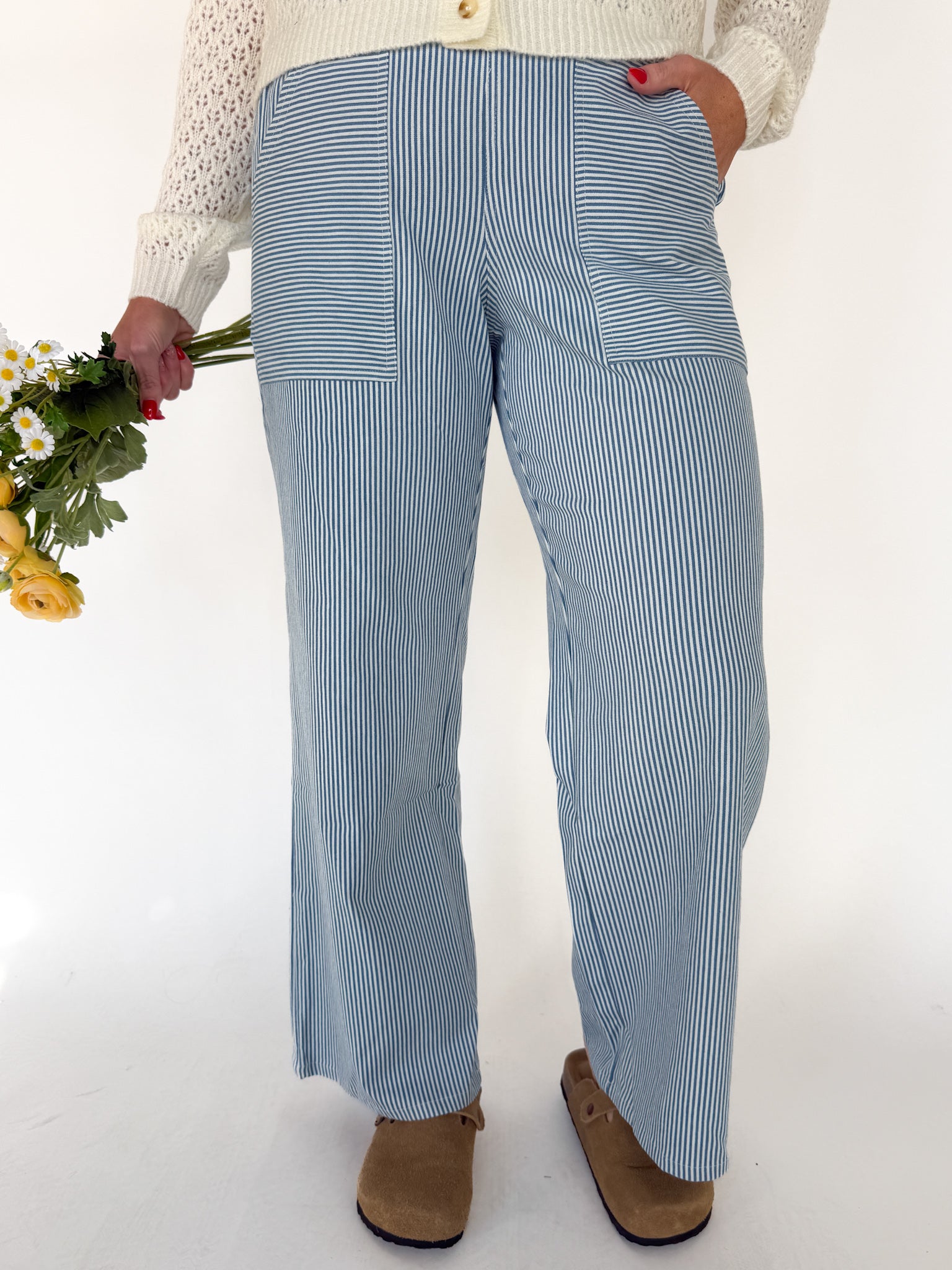 These lightweight pinstripe pants feature an elastic waistband for all-day comfort and both side and back pockets for practicality. Perfect for the office or weekend errands, they strike the ideal balance between polished and relaxed.