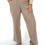 Striped Wide Leg Pants- Brown