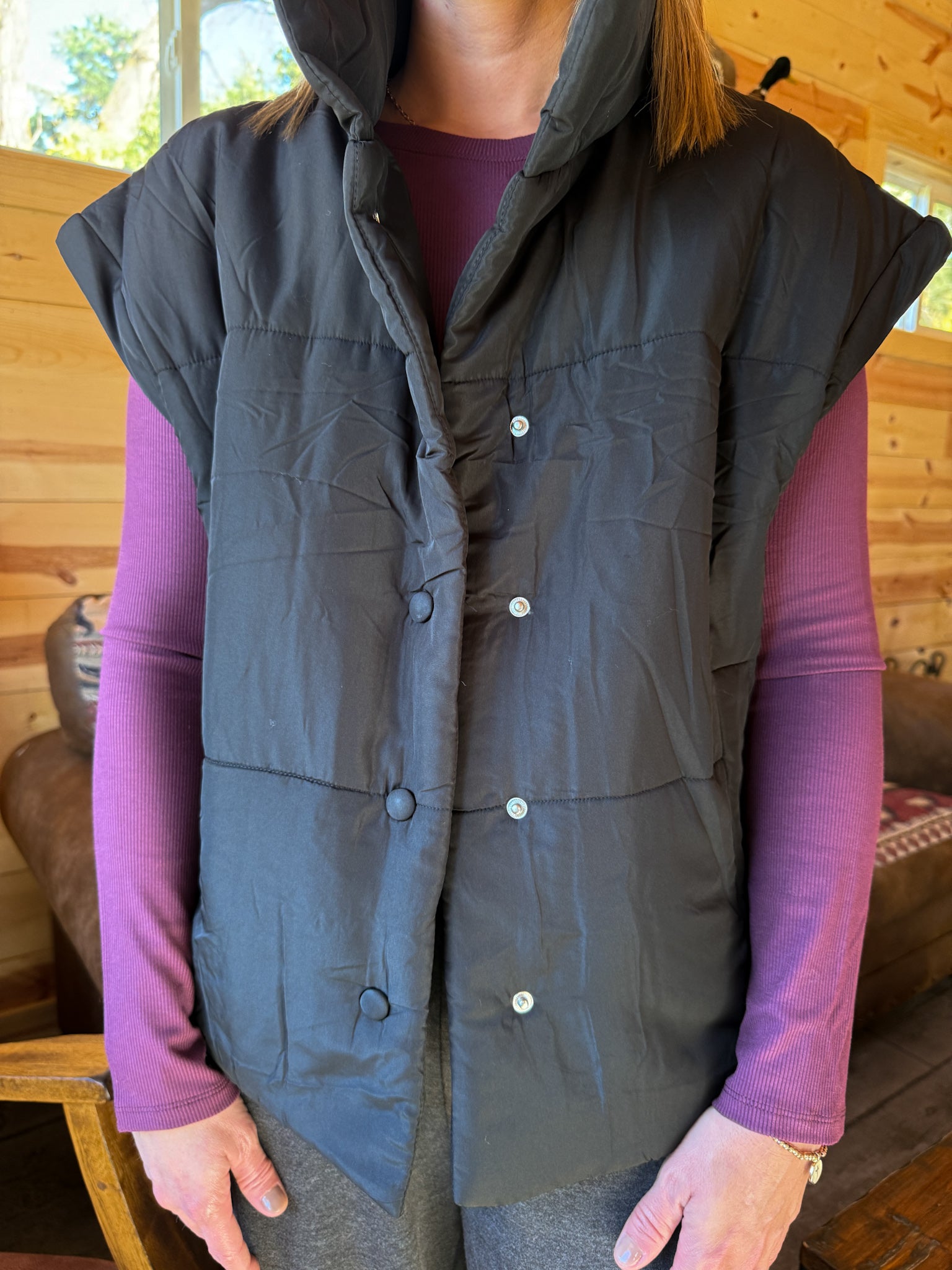 Oversized Puffer Vest- Black