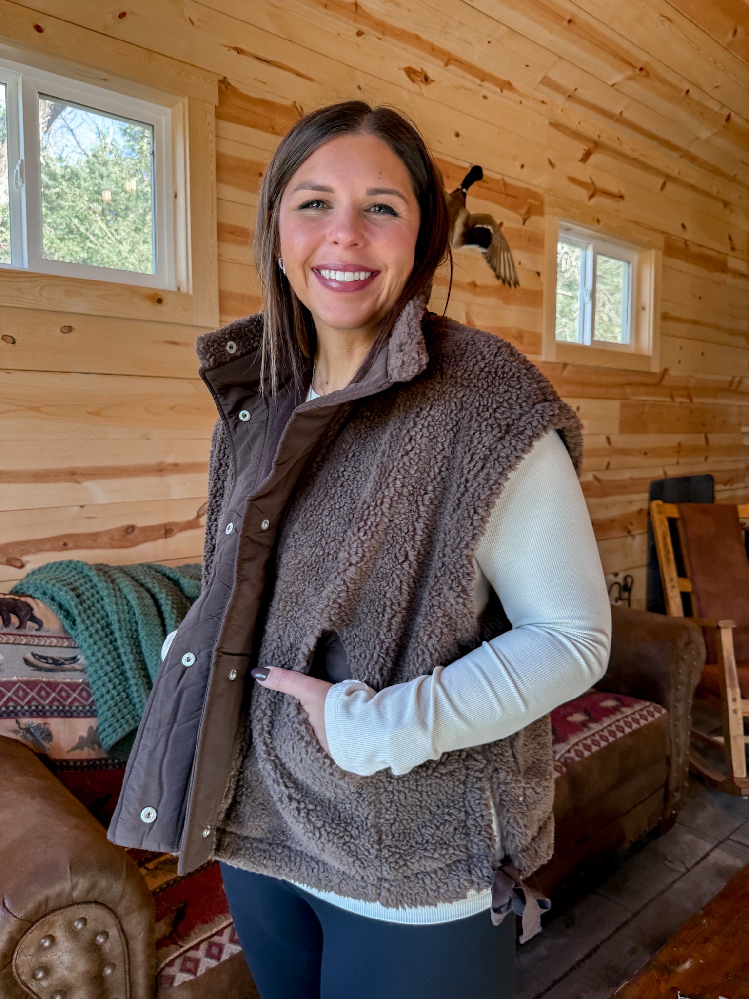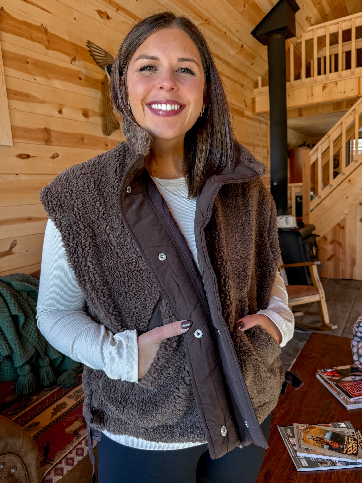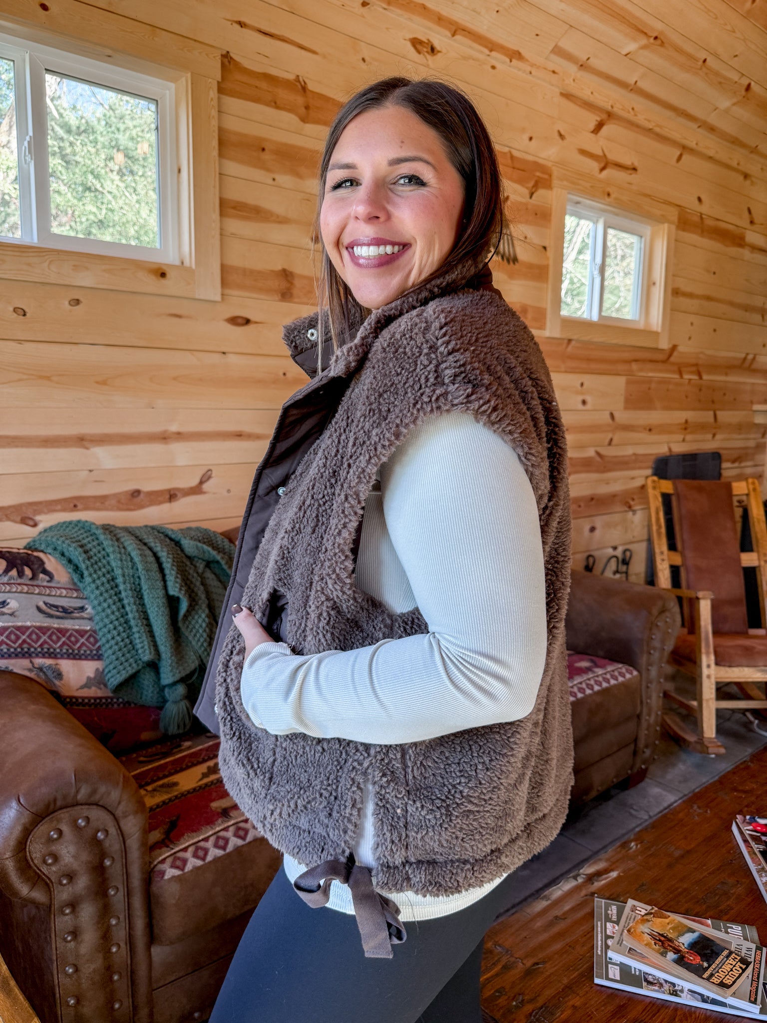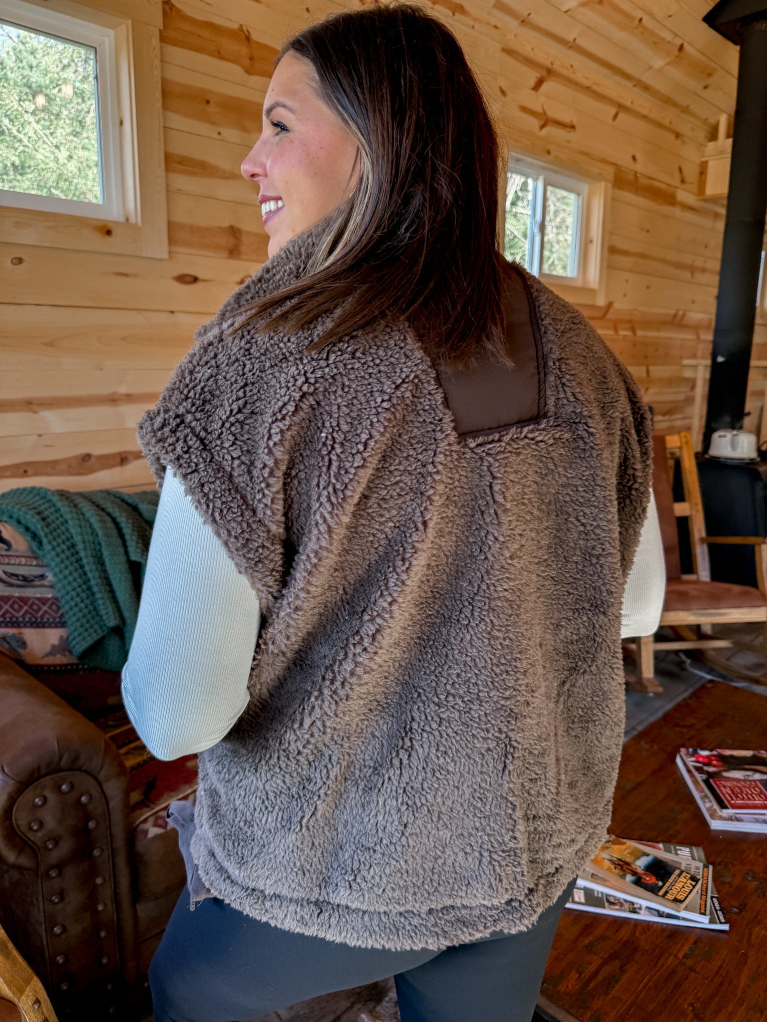 Oversized Sherpa Vest- Brown