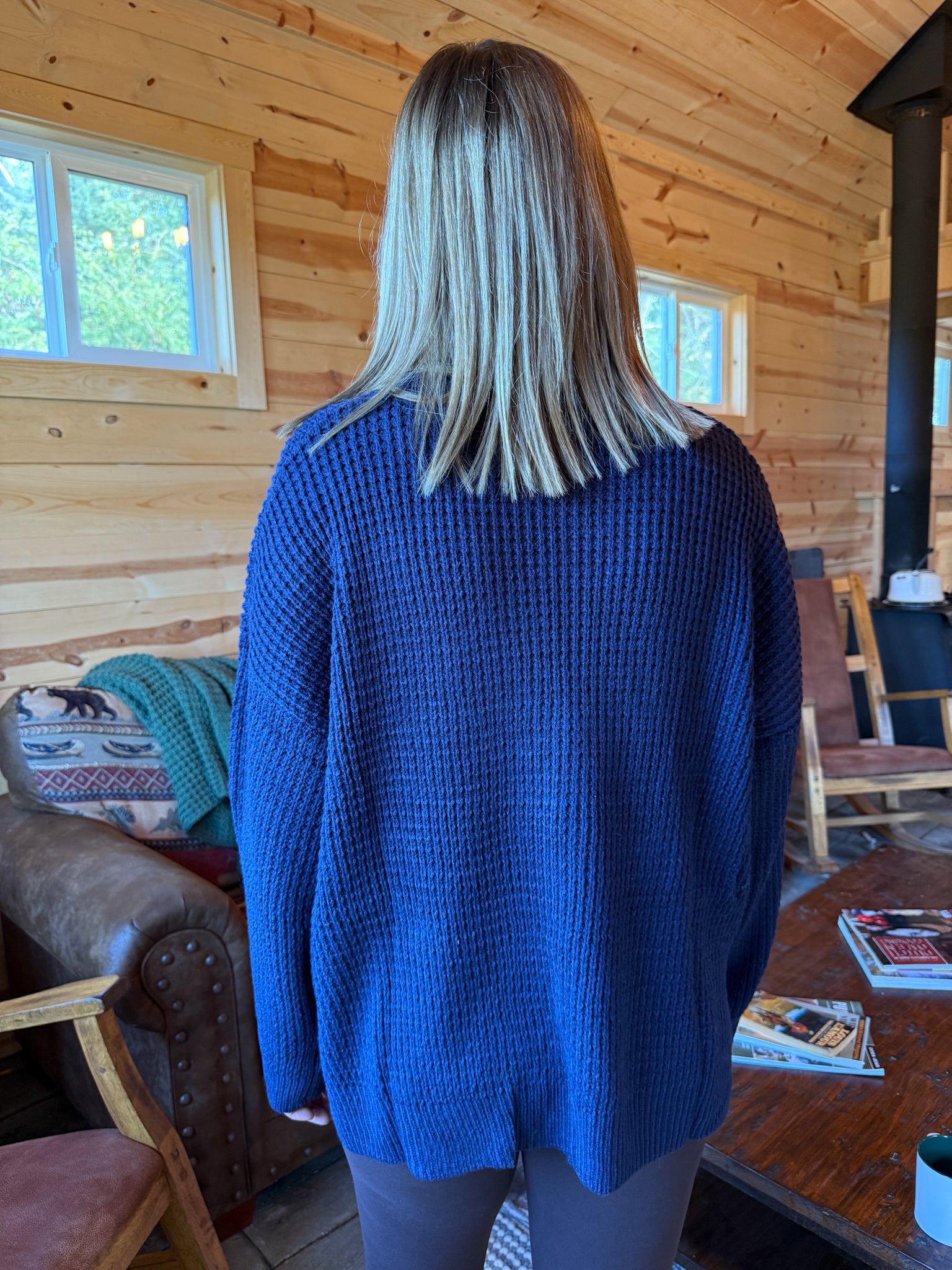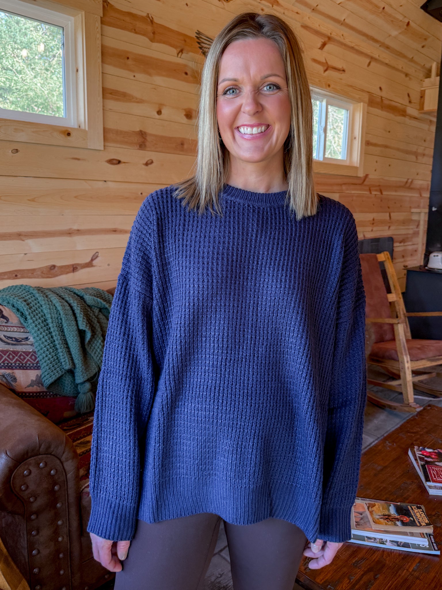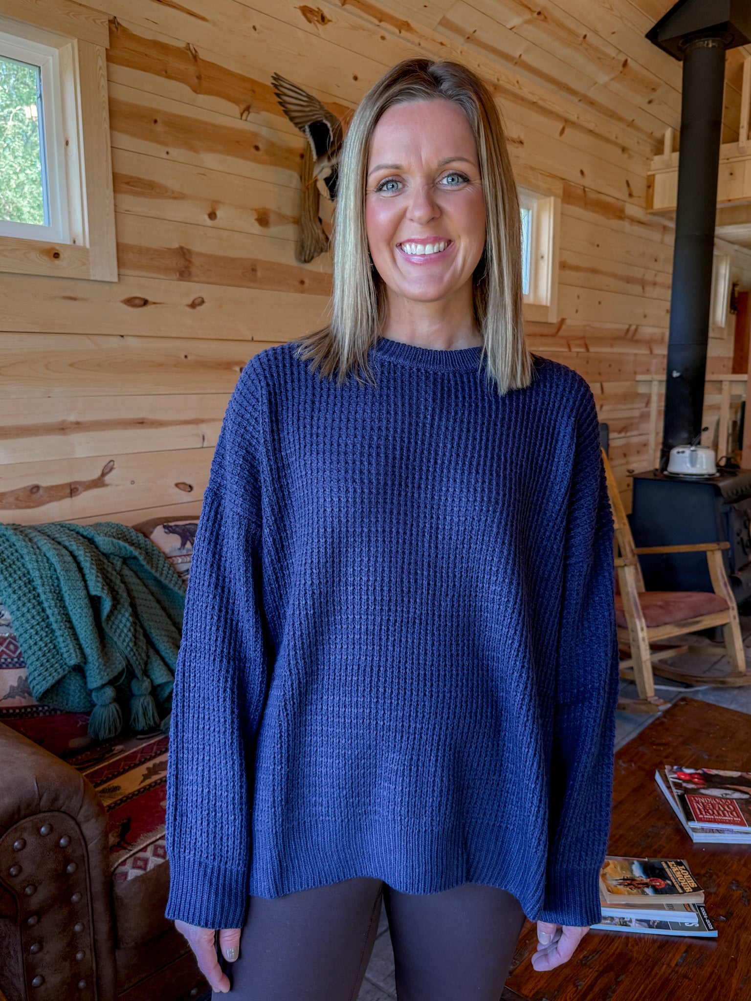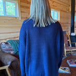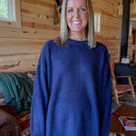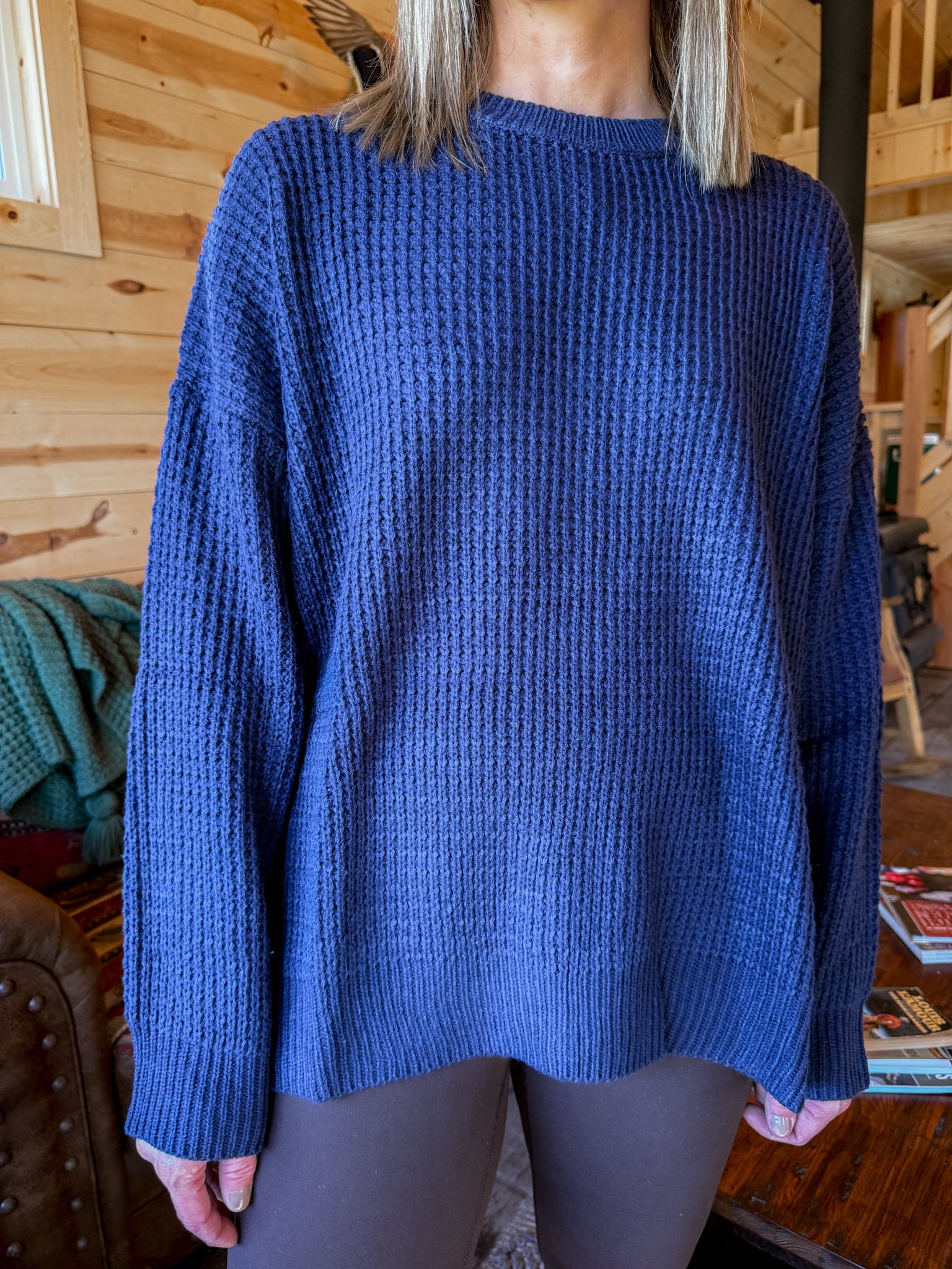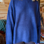Round Neck Waffleknit Sweater- Navy