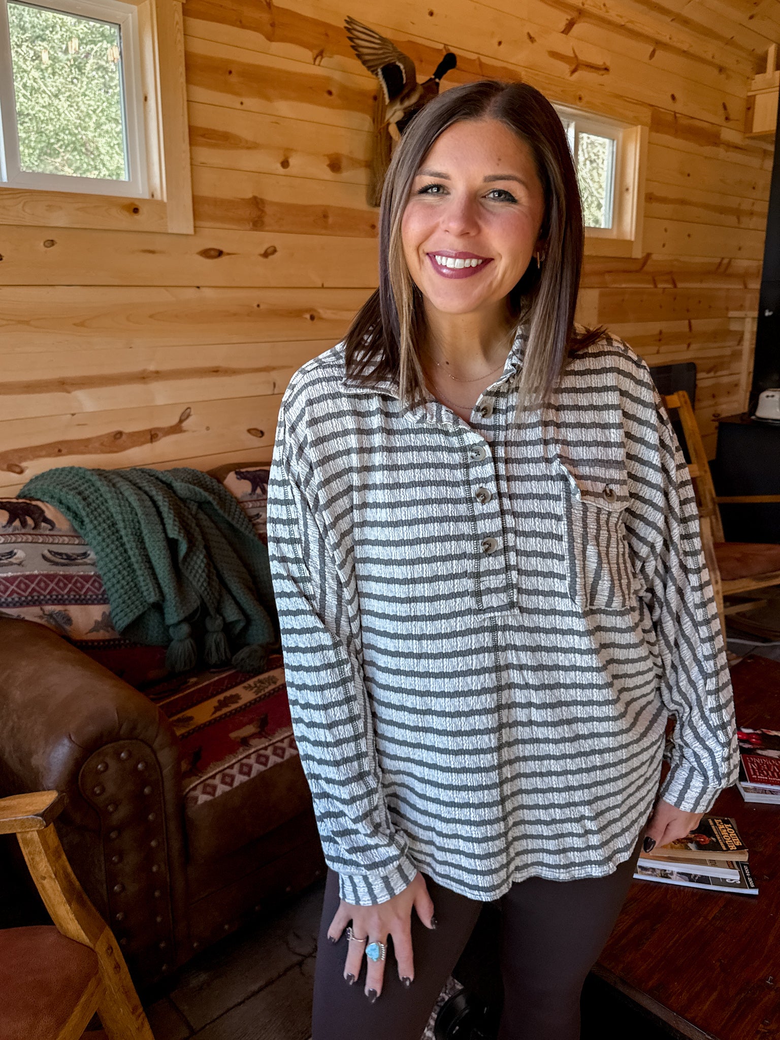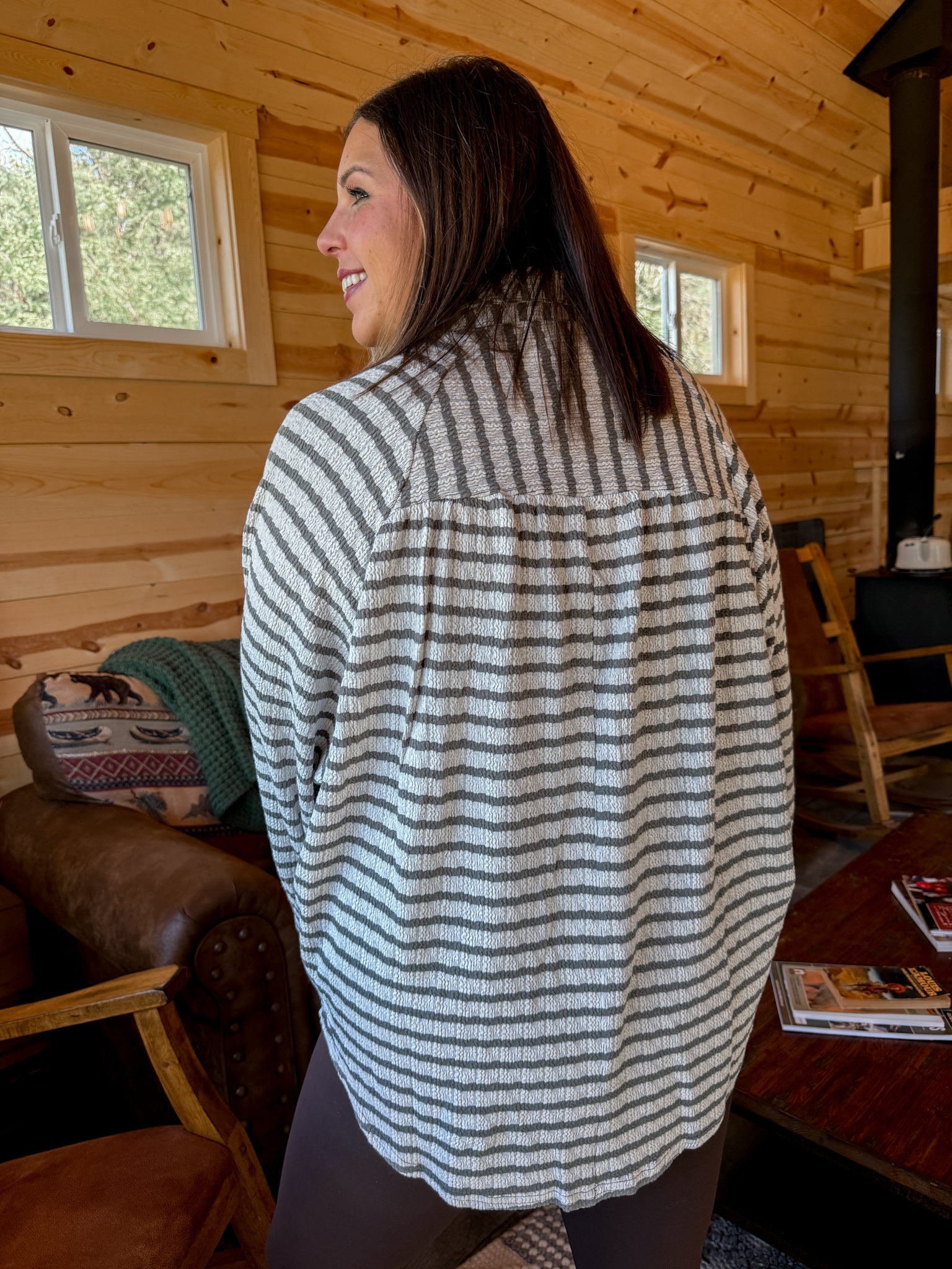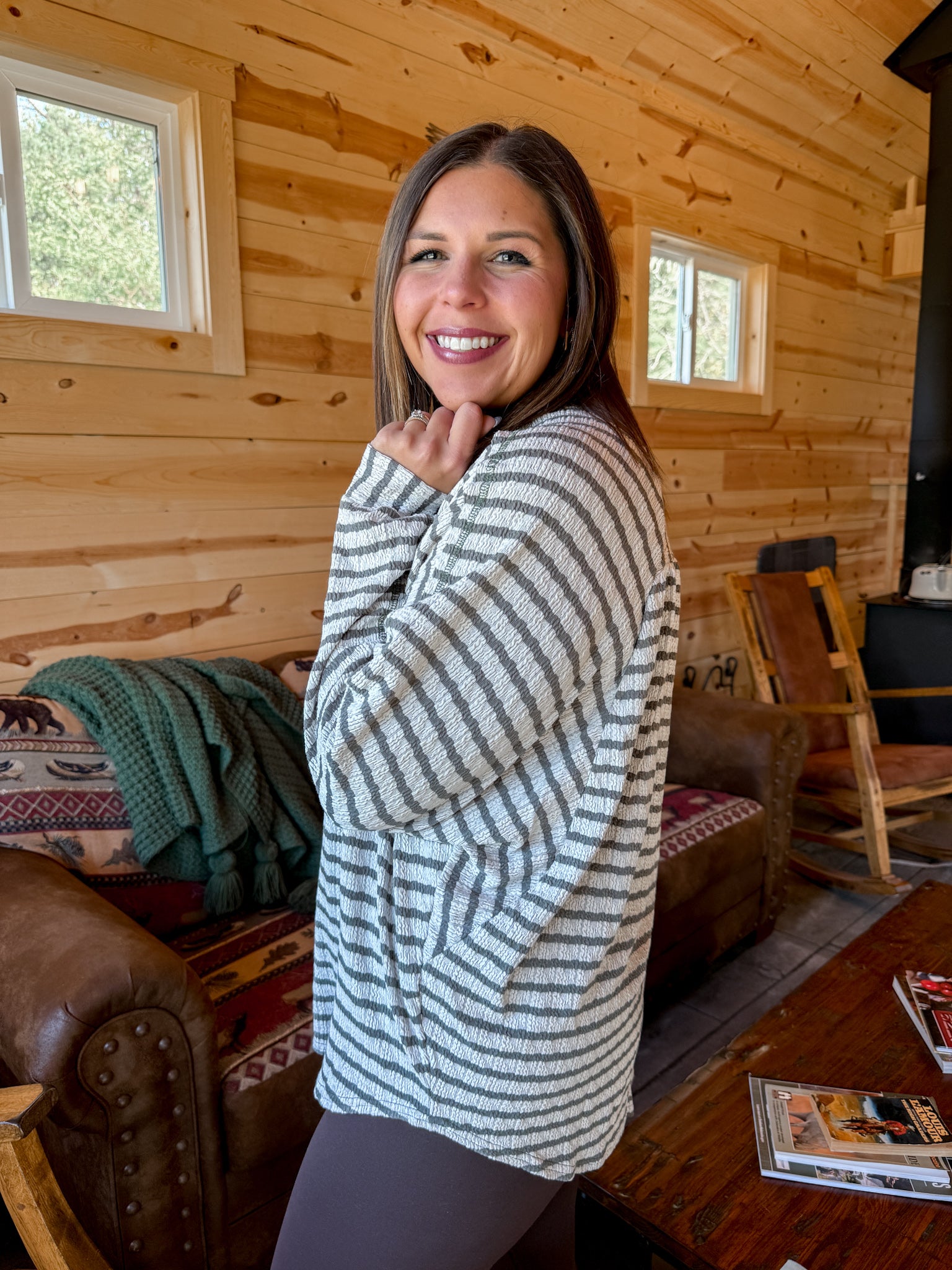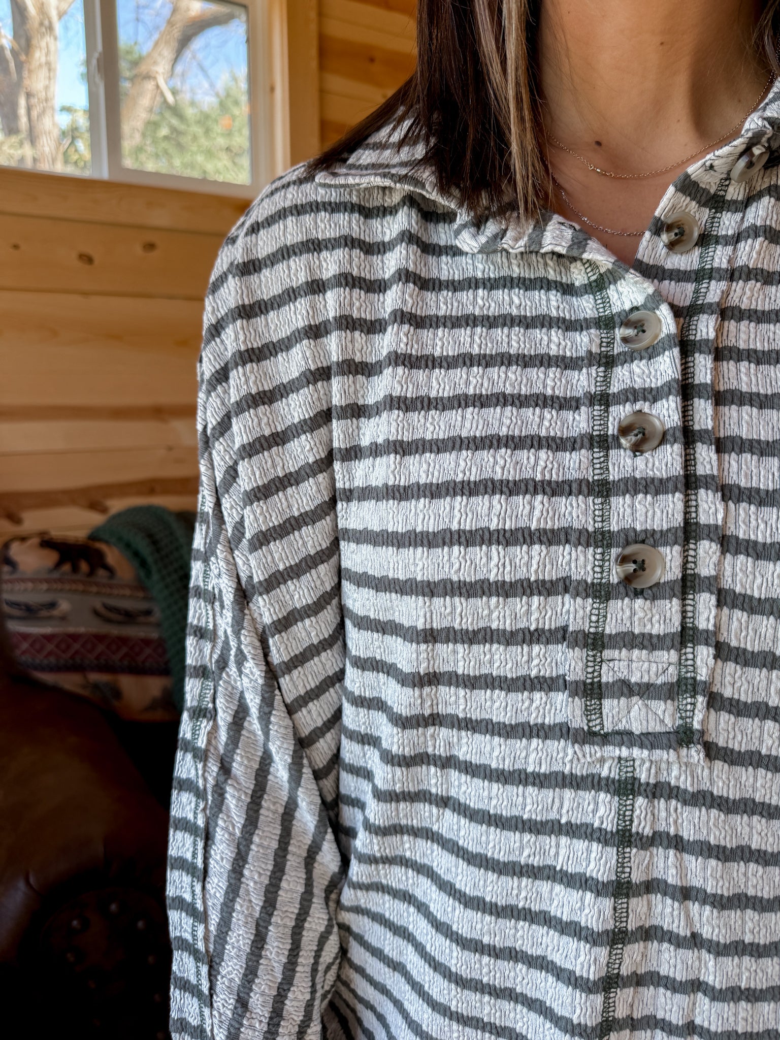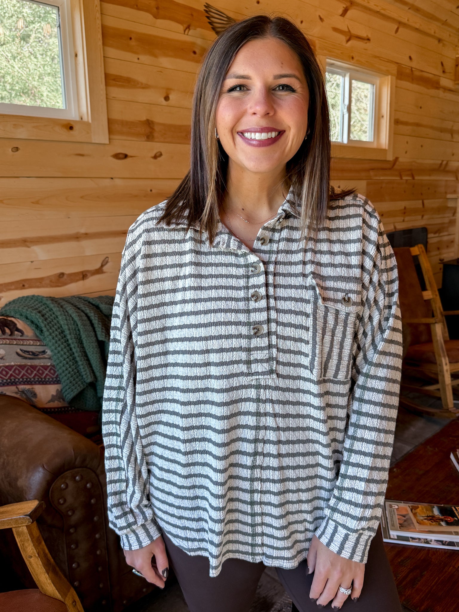 Textured Stripe Top- Olive