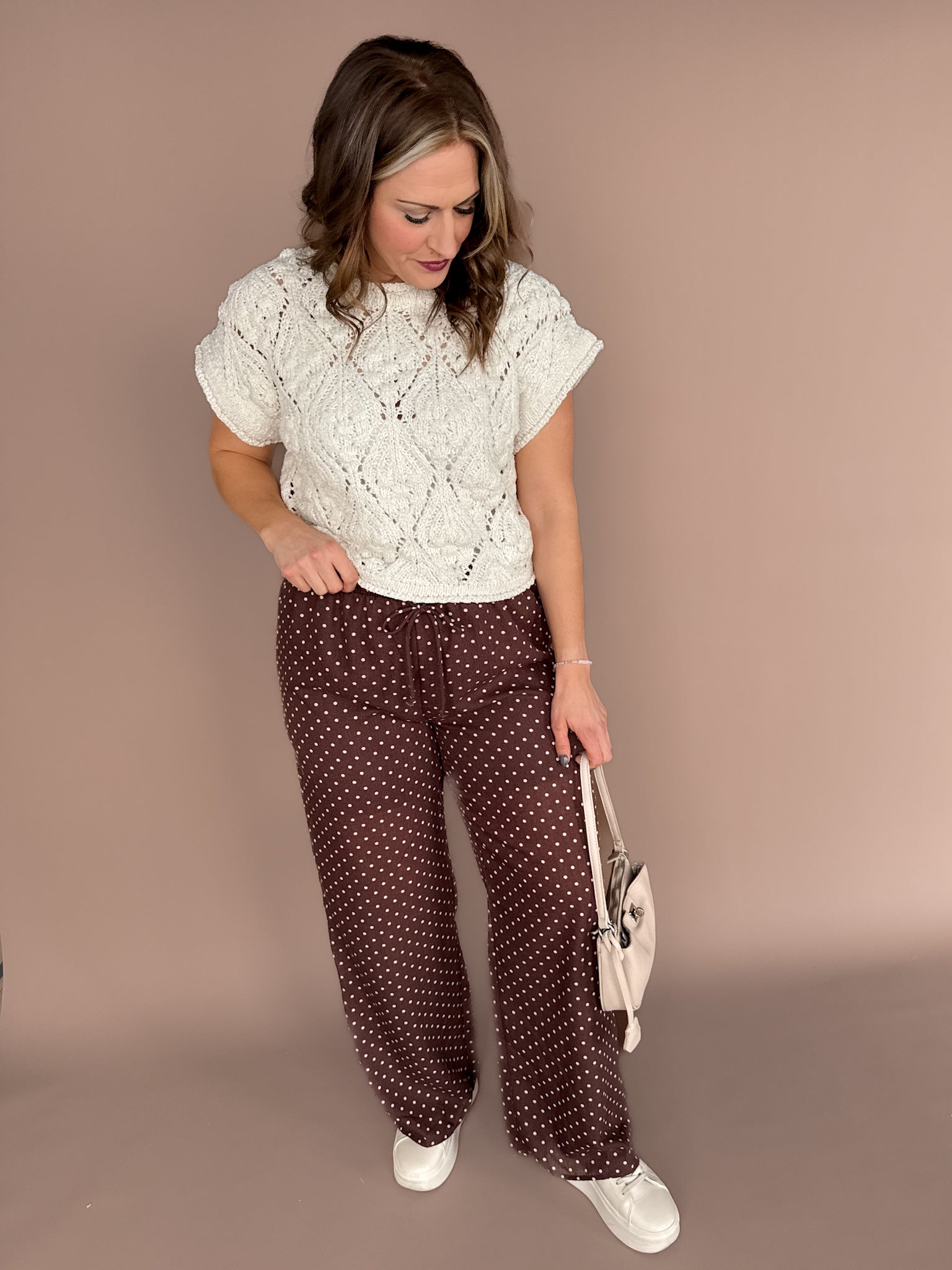 This open-knit, boho-inspired short-sleeve sweater is the perfect piece to ease into spring. Lightweight and breathable with an elevated feel, it’s easy to dress up with fun statement pants or keep classic with denim. Polished enough for work, comfortable enough for travel, and versatile enough for everyday wear—this is one of those elevated basics you can’t go wrong with. Effortless, timeless, and made to move with you wherever the day takes you.