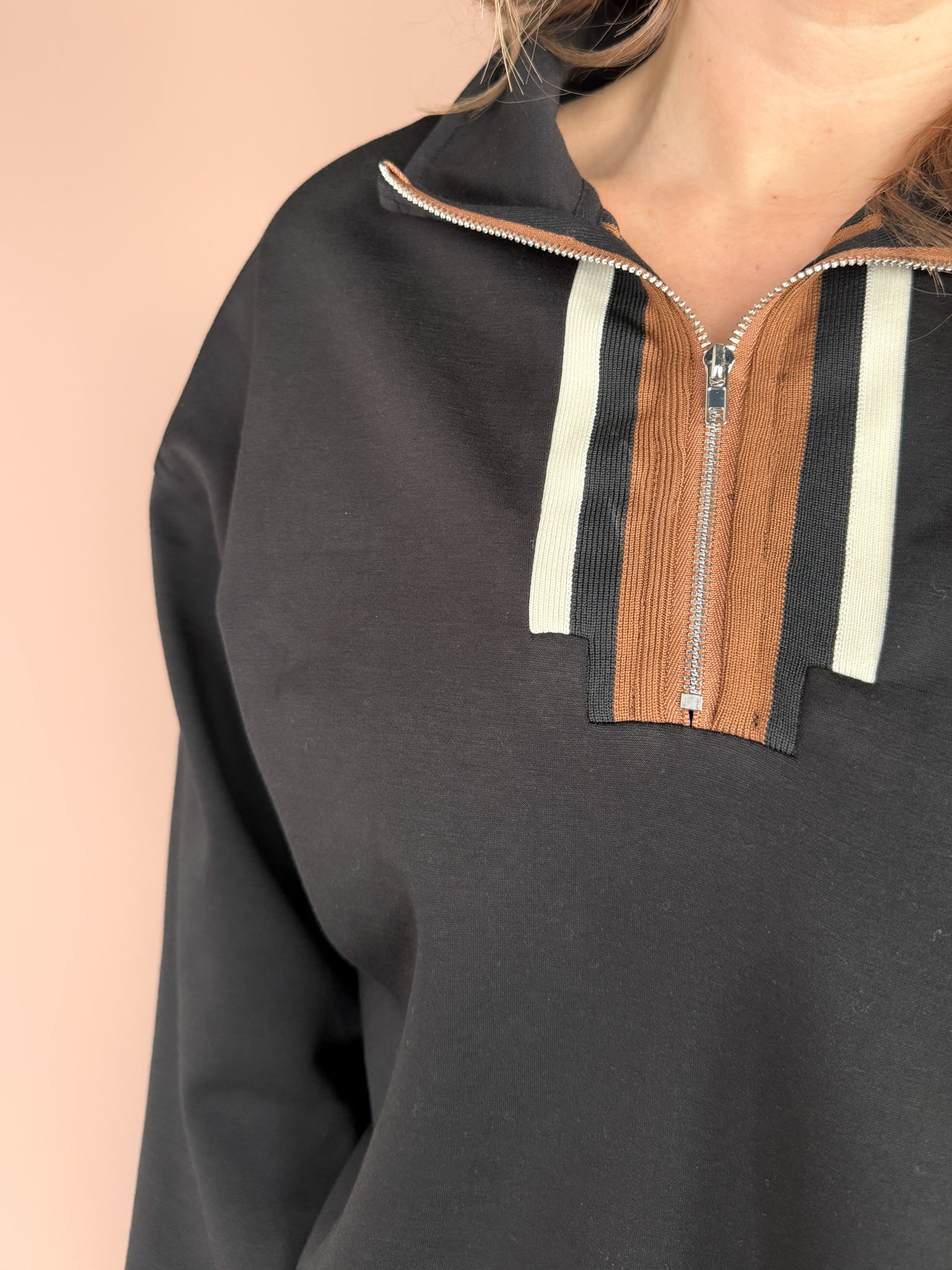 Color Block Zip Up Pullover