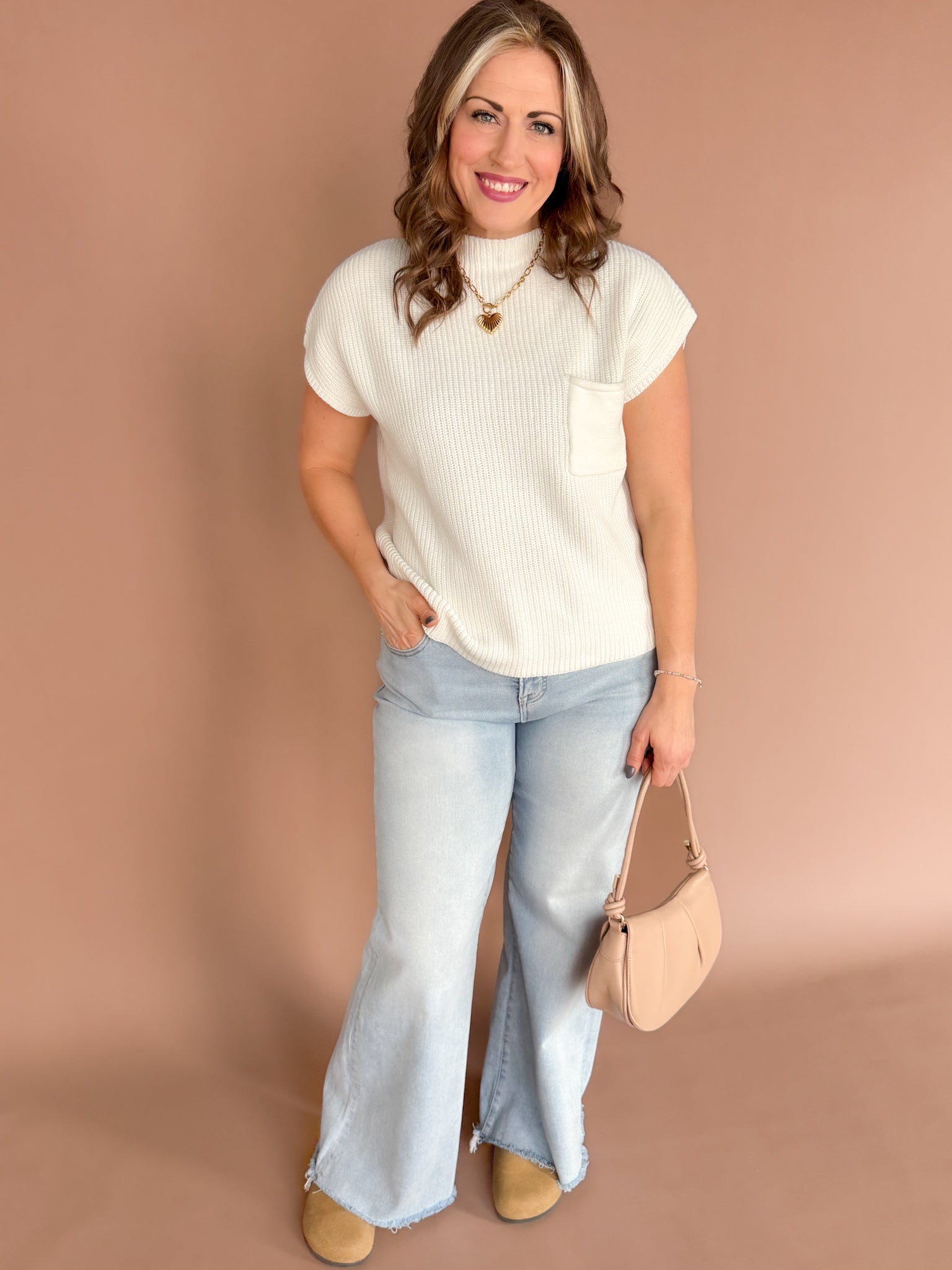 This mock neck short sleeve sweater is the definition of effortless style. Simple yet elevated, it’s perfect worn on its own or layered under jackets and cardigans for a polished look. The clean silhouette makes a subtle statement without trying too hard—an easy, versatile piece you’ll reach for season after season. Comfortable, timeless, and endlessly wearable.