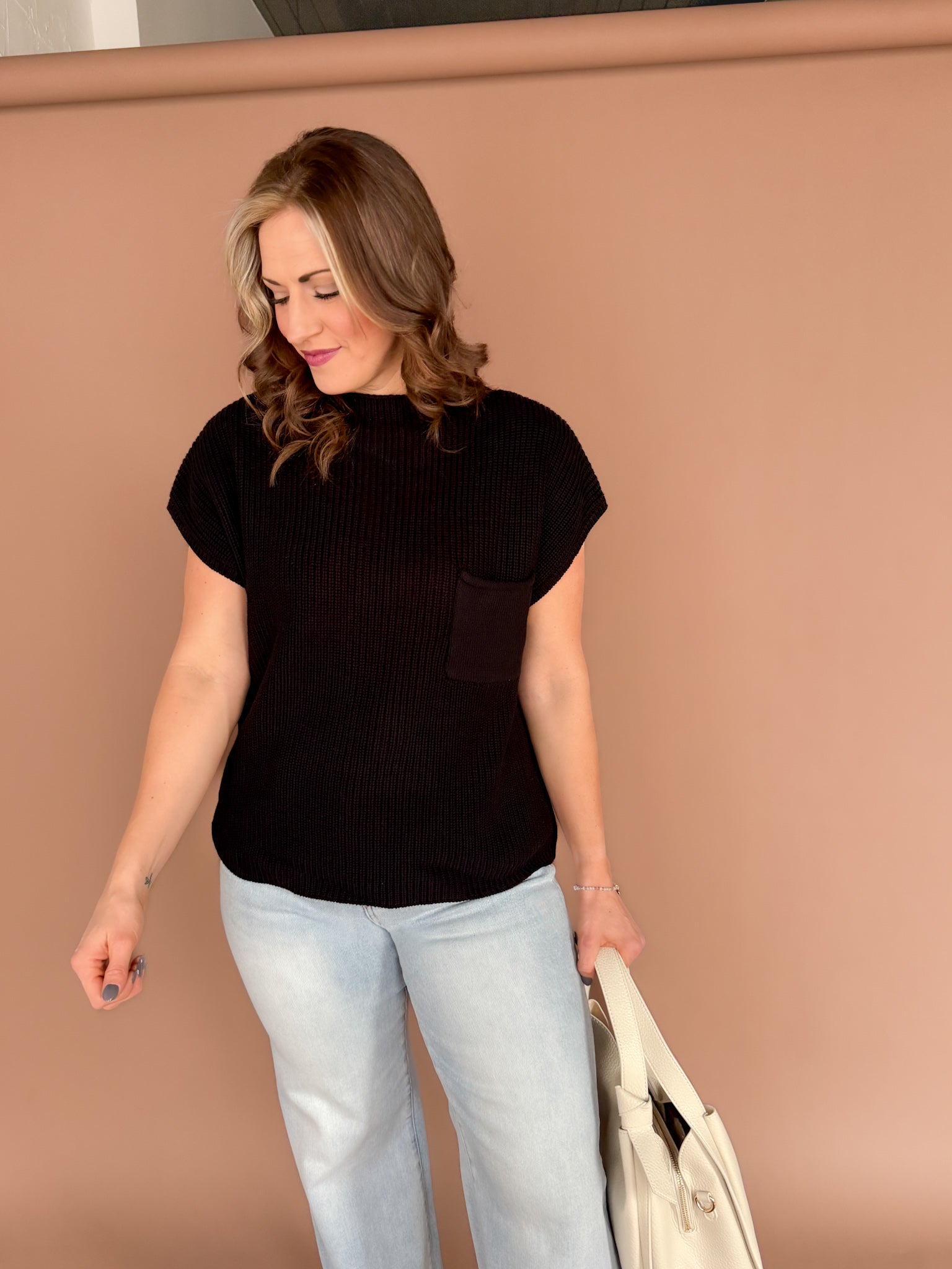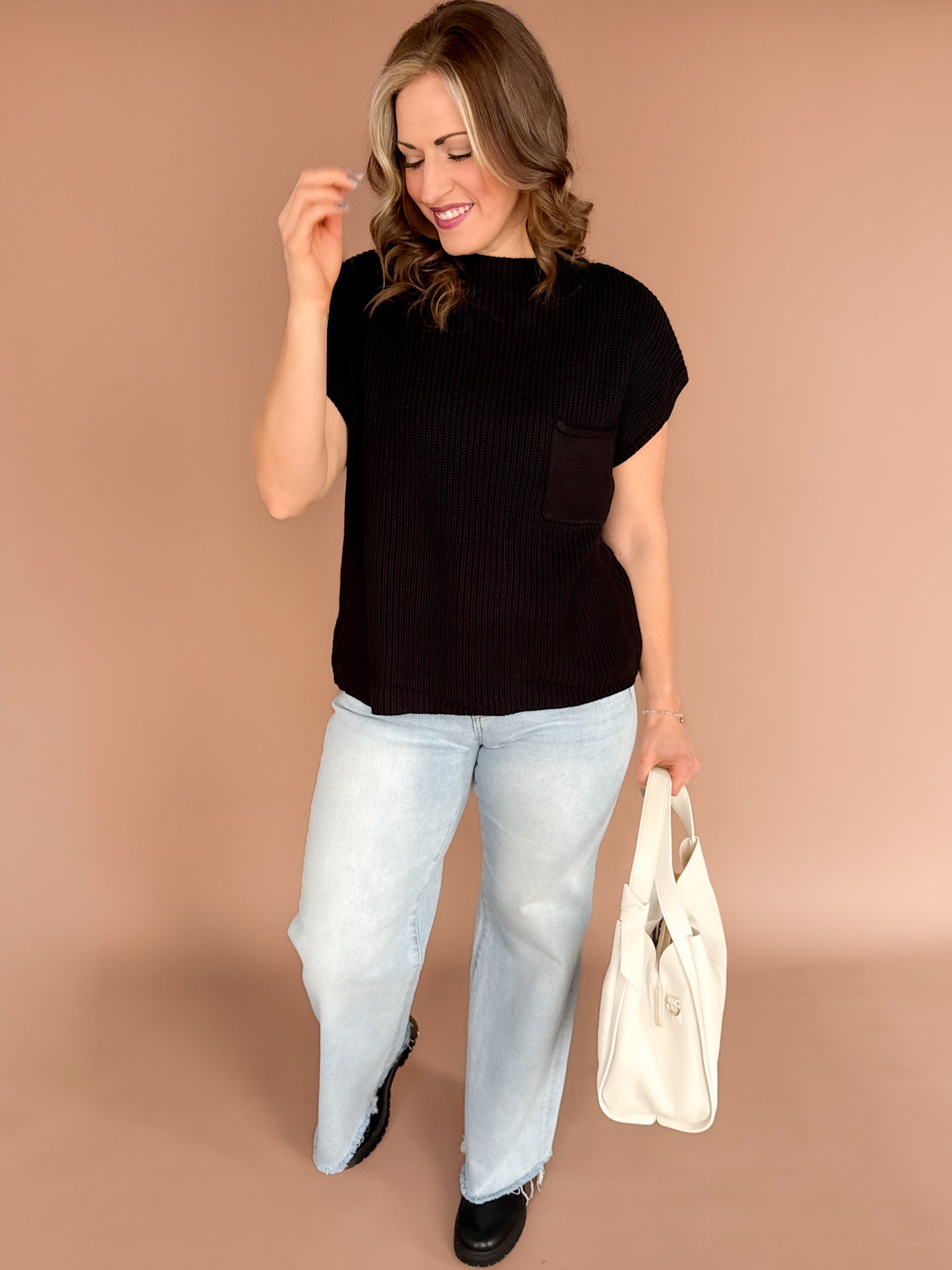 This mock neck short sleeve sweater is the definition of effortless style. Simple yet elevated, it’s perfect worn on its own or layered under jackets and cardigans for a polished look. The clean silhouette makes a subtle statement without trying too hard—an easy, versatile piece you’ll reach for season after season. Comfortable, timeless, and endlessly wearable.