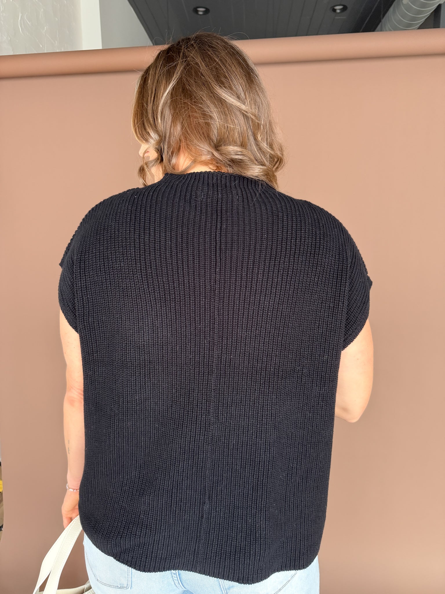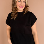 Ribbed Mock Neck Sweater-Black