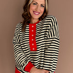 Striped Henley Top- Black/Red