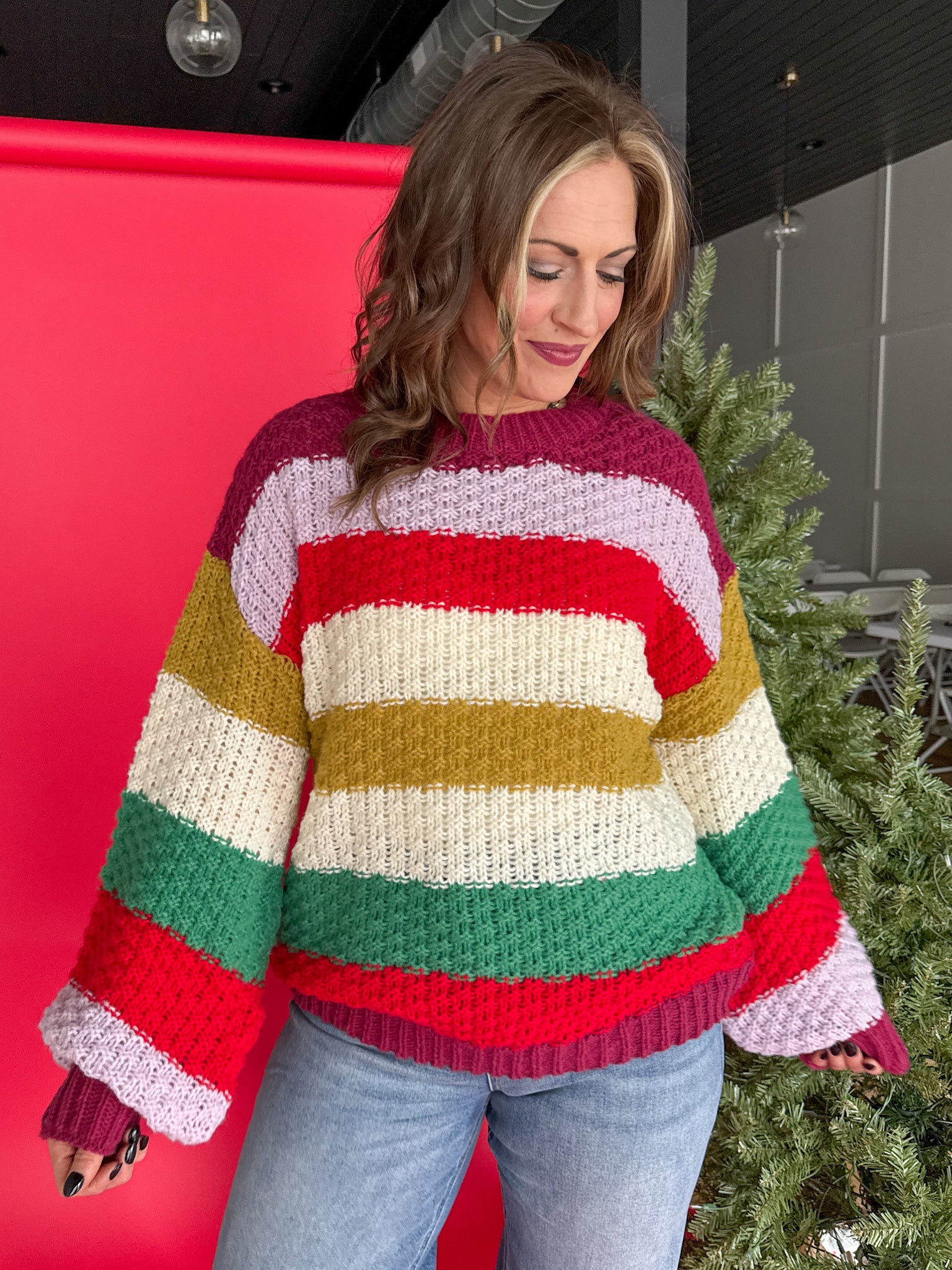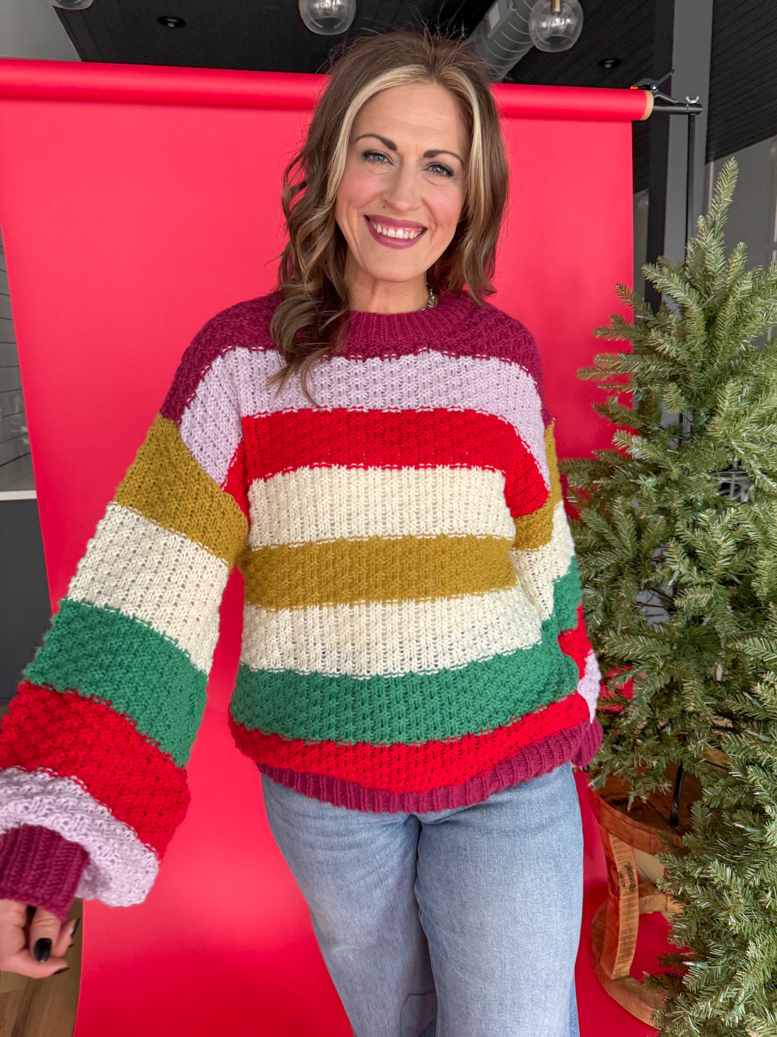 Bring on the holiday fun with our Colorblock Christmas Sweater—a cheerful mix of festive colors that instantly lifts your seasonal style. Designed with a longer length, it offers perfect coverage for leggings while still looking chic paired with your favorite denim. Cozy, cute, and versatile, it’s an ideal choice for the workplace, Sunday service, and every holiday gathering on your calendar. This feel-good piece makes it easy to stay comfortable while celebrating in style.