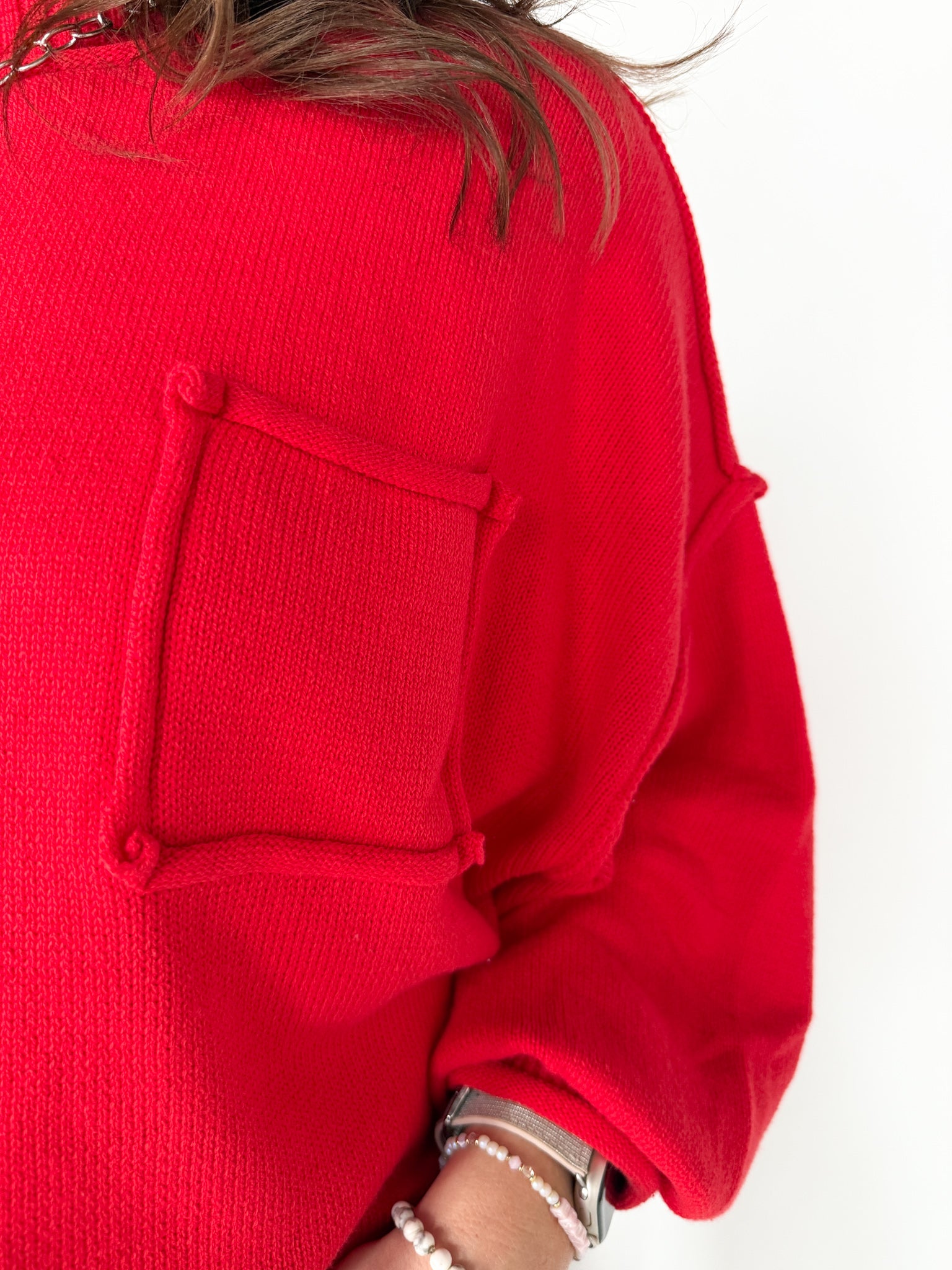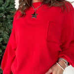 Oversized Front Pocket Sweater- Red