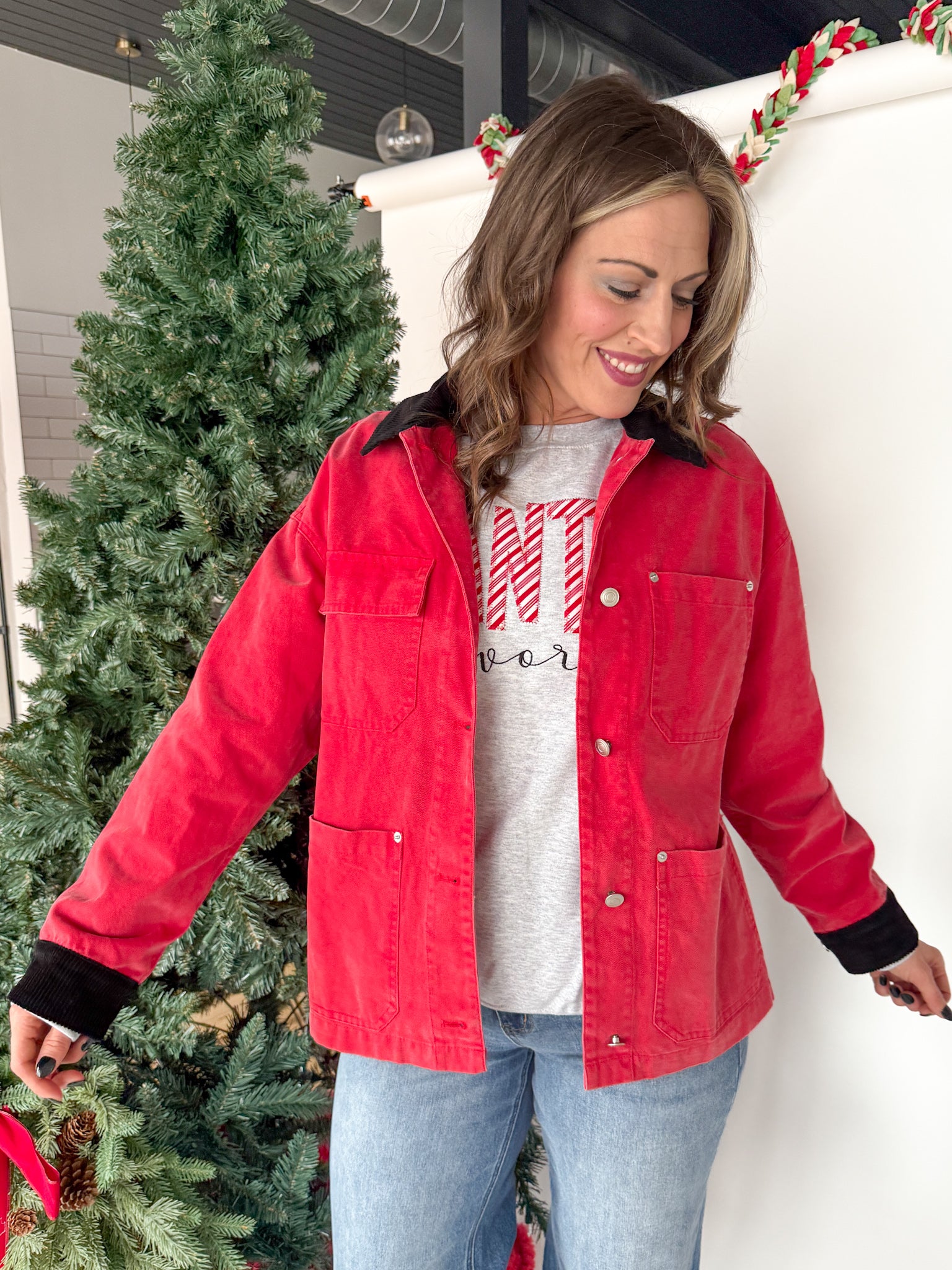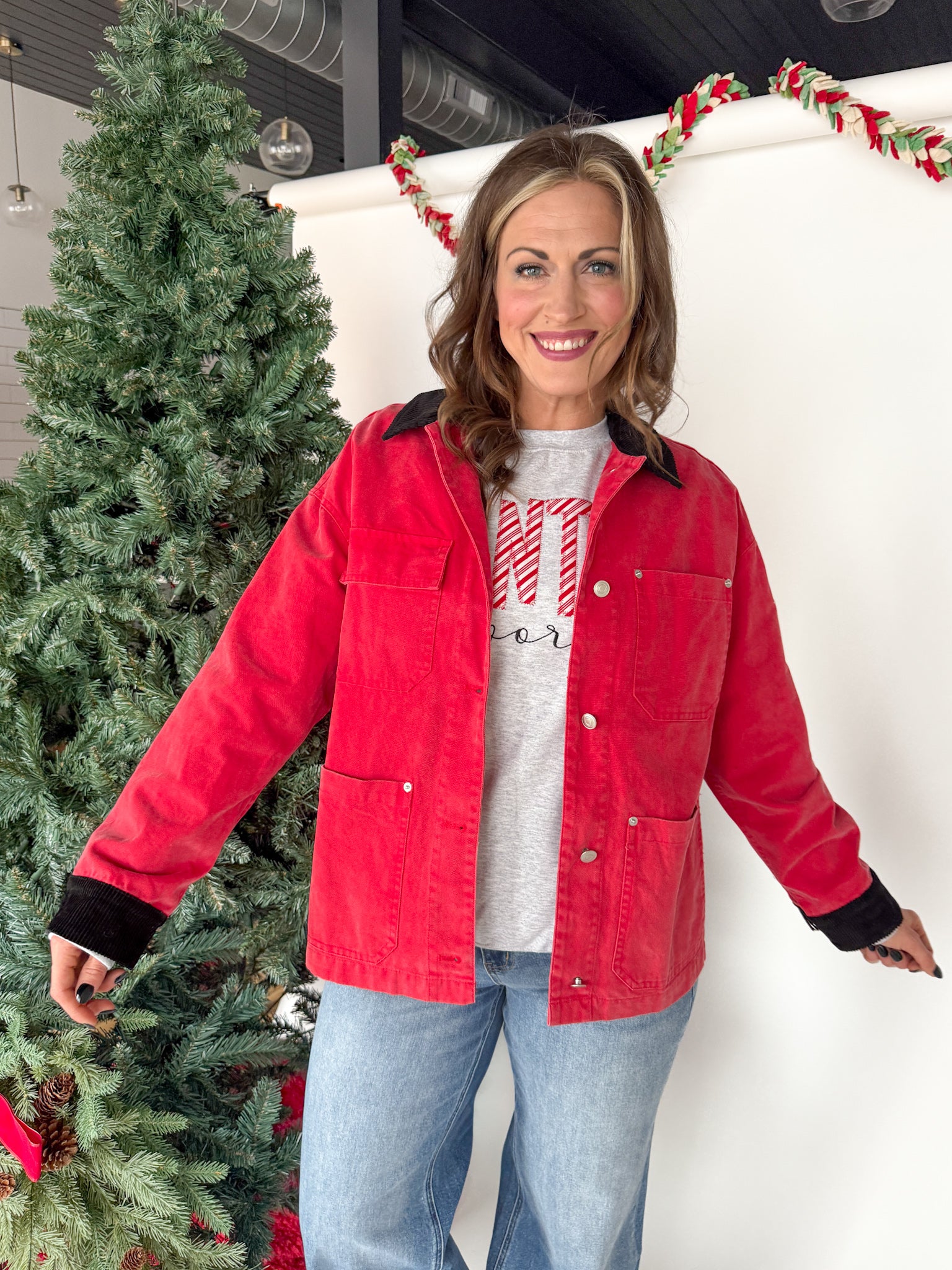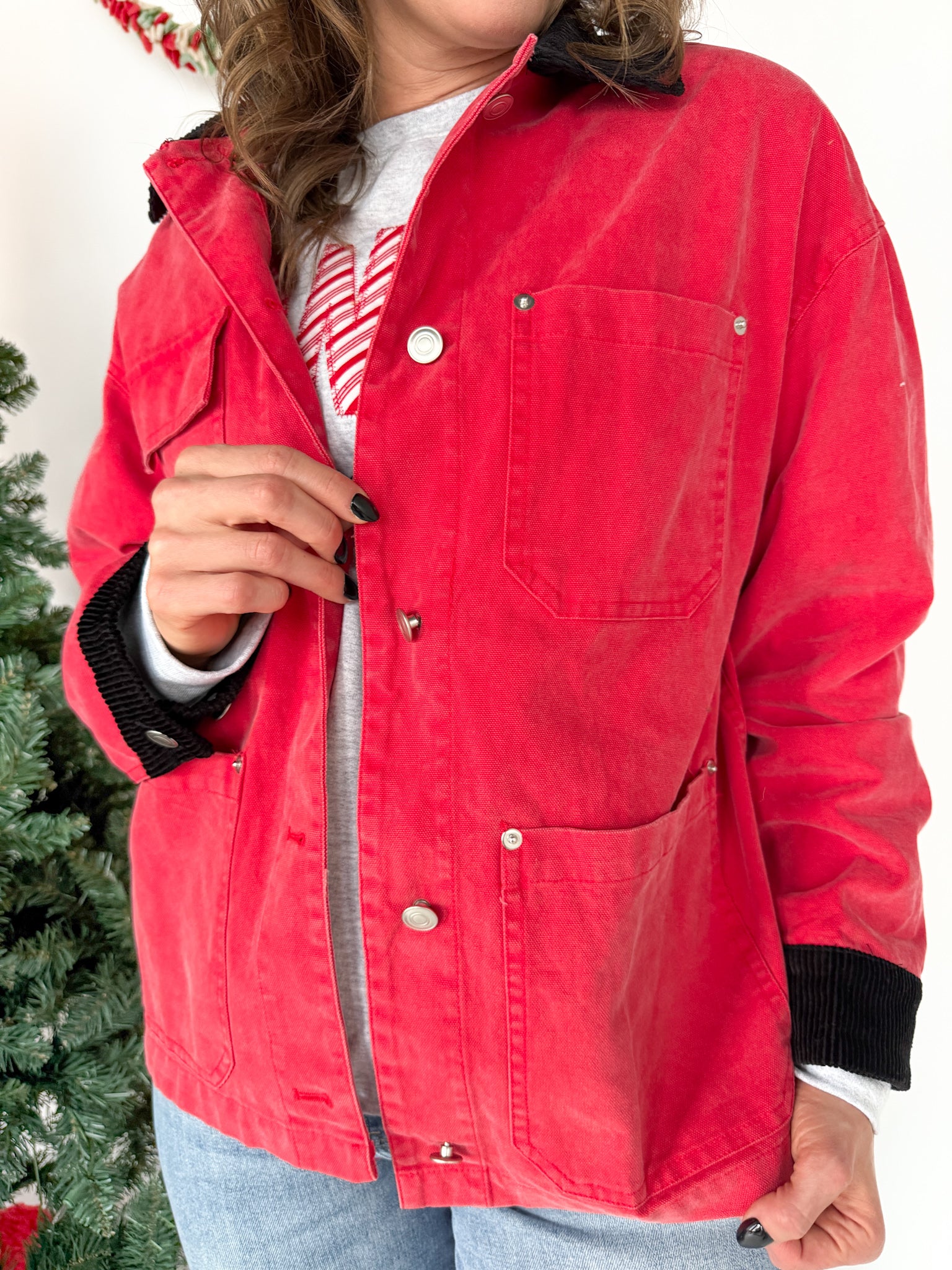 Oversized Utility Jacket- Red