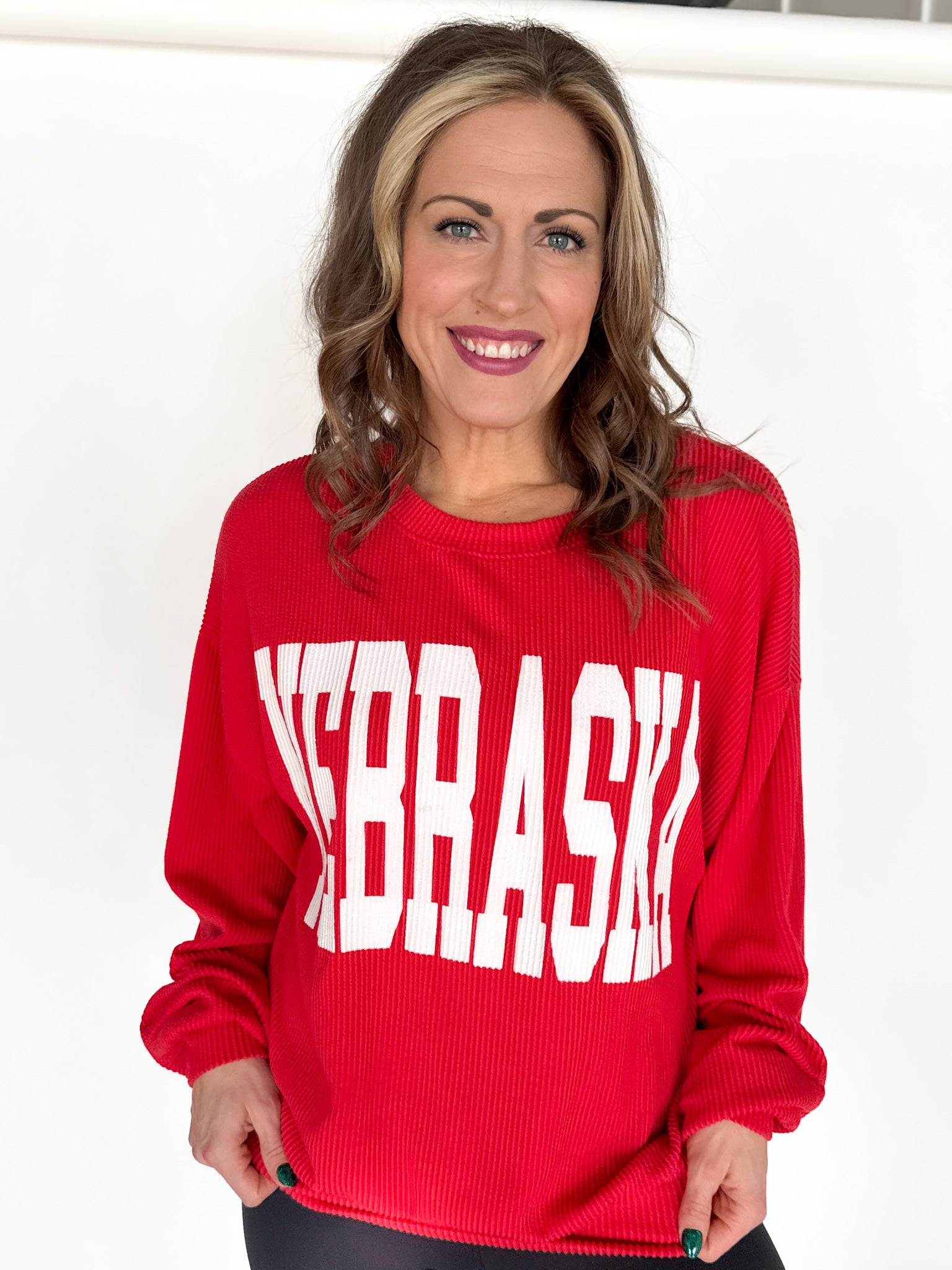 Ribbed Nebraska Pullover- Red