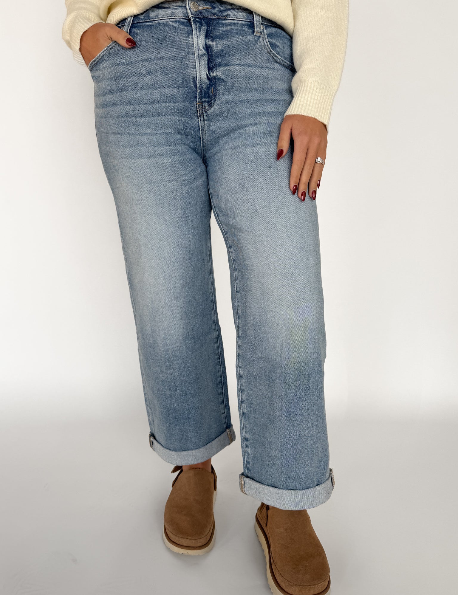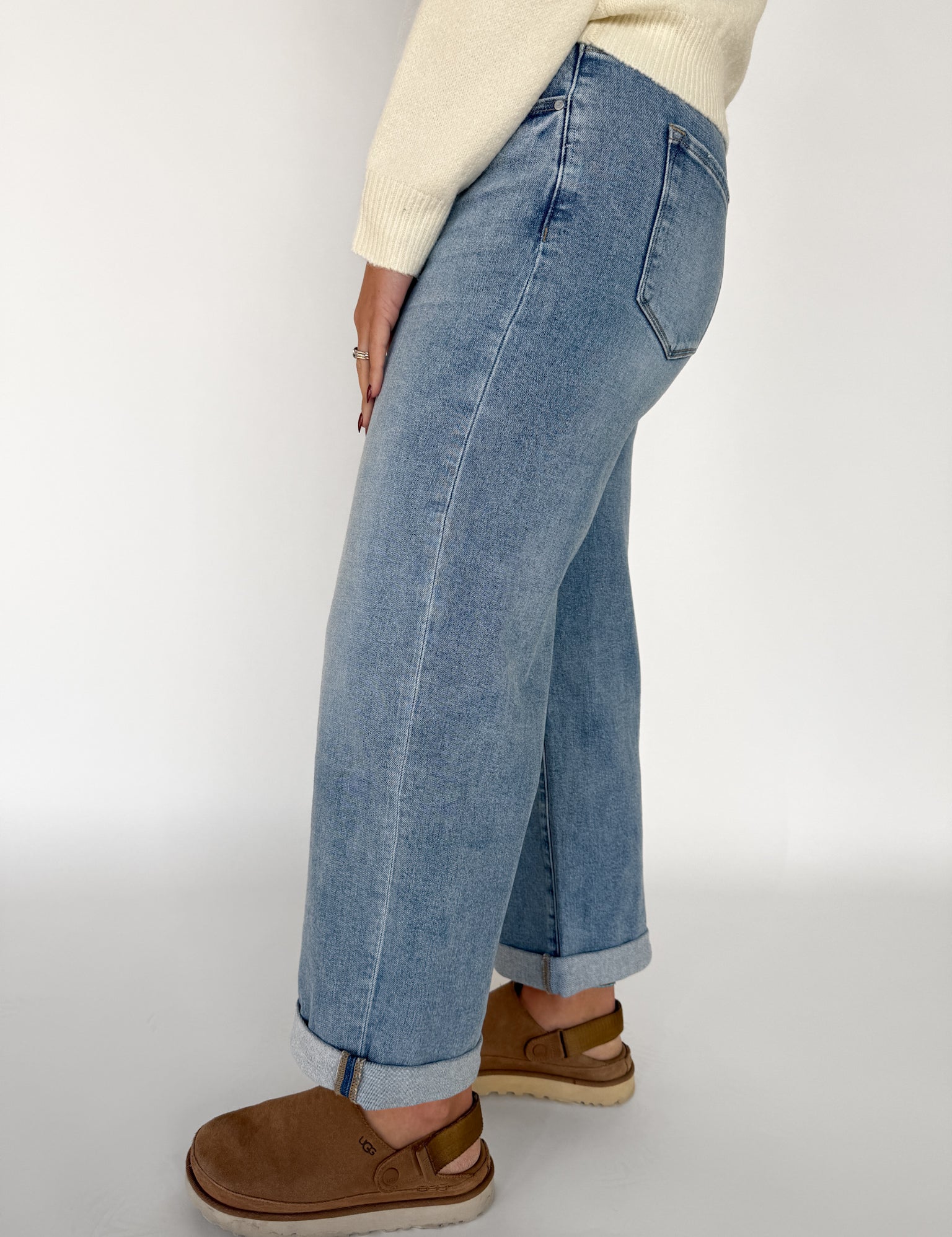 High Rise Rolled Leg Denim Jeans
