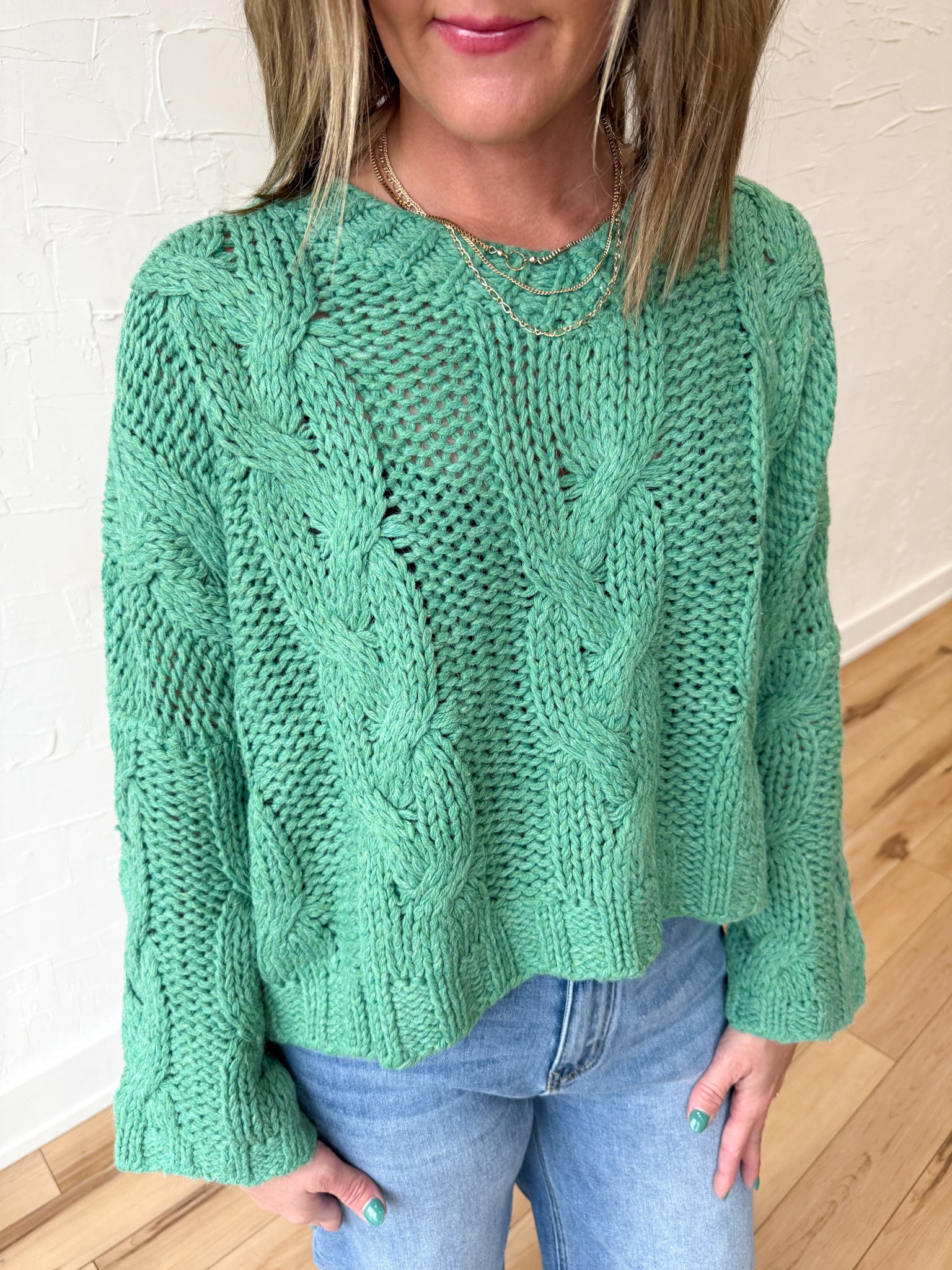 This gorgeous green cable knit sweater is cozy, comfy, and full of charm! The rich hue and timeless knit design make it a standout piece for fall. It’s the kind of sweater that makes you want to grab a hot cup of coffee and catch up with your girlfriends. Effortless to style and easy to wear from brunch to church, it’s the perfect mix of classic comfort and everyday style.