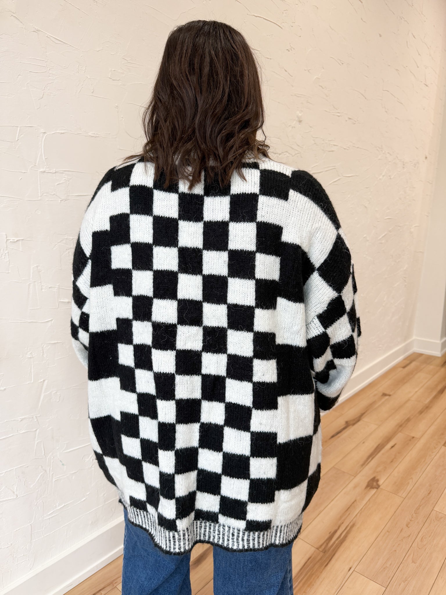 Checkered Sweater Cardigan- Blk/Wht