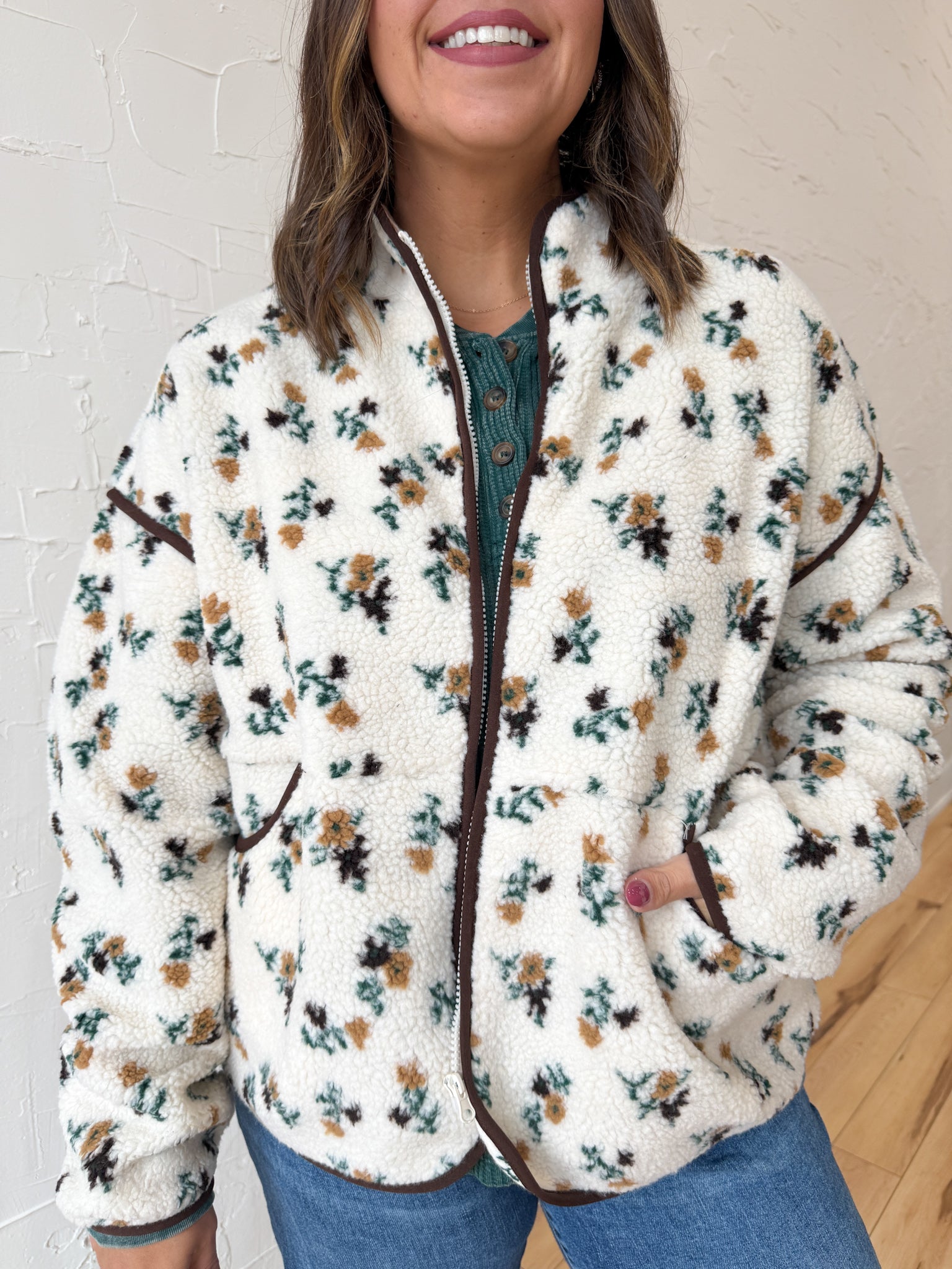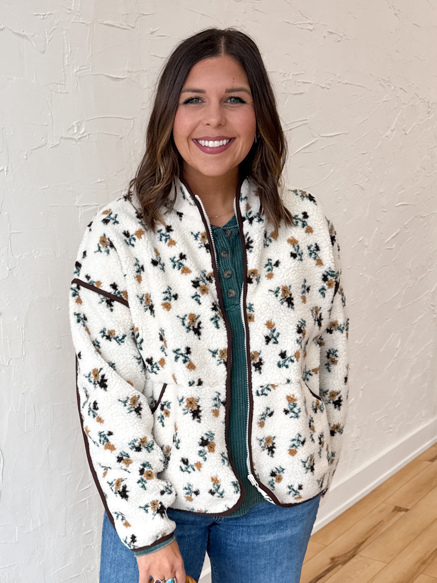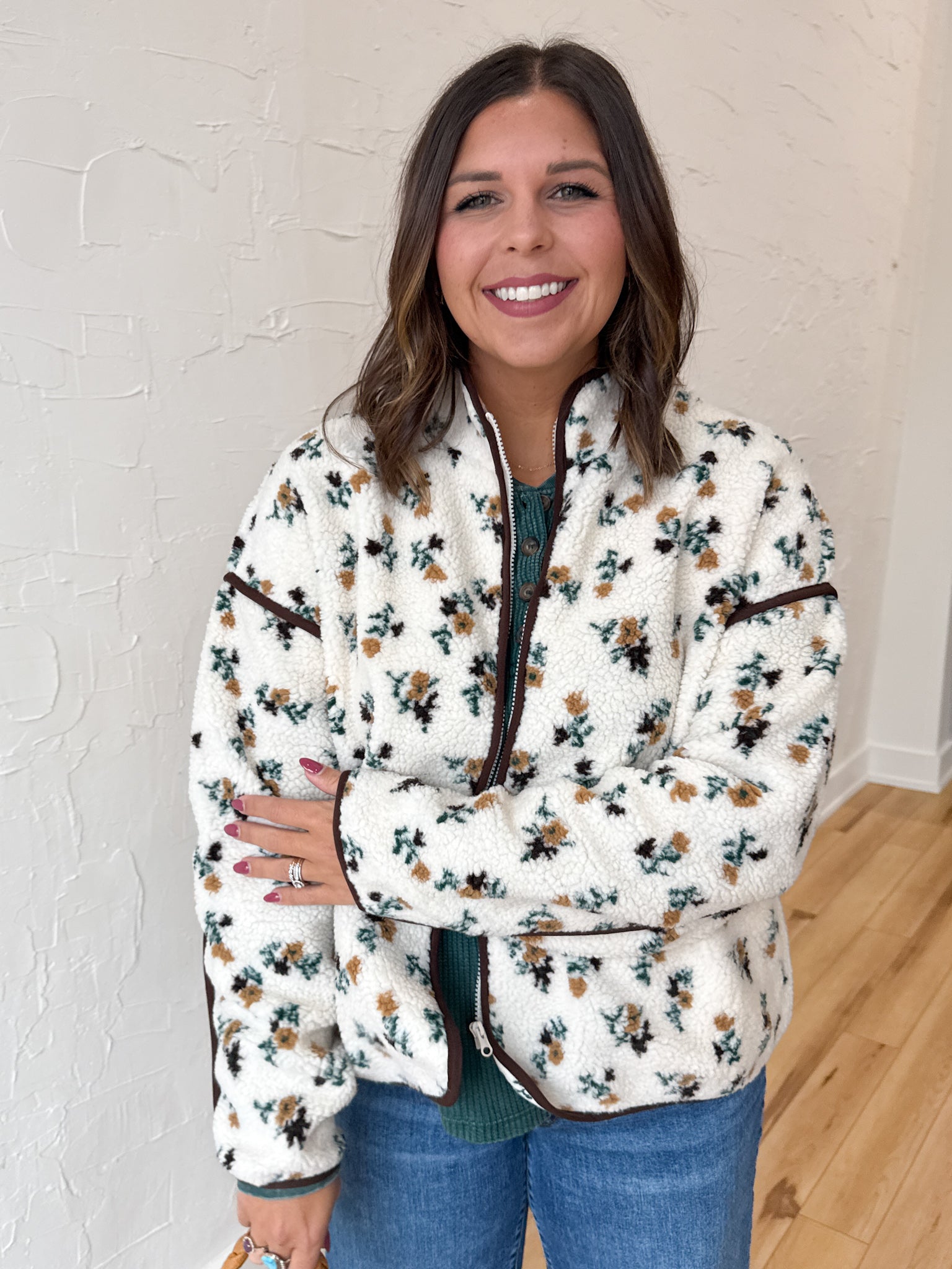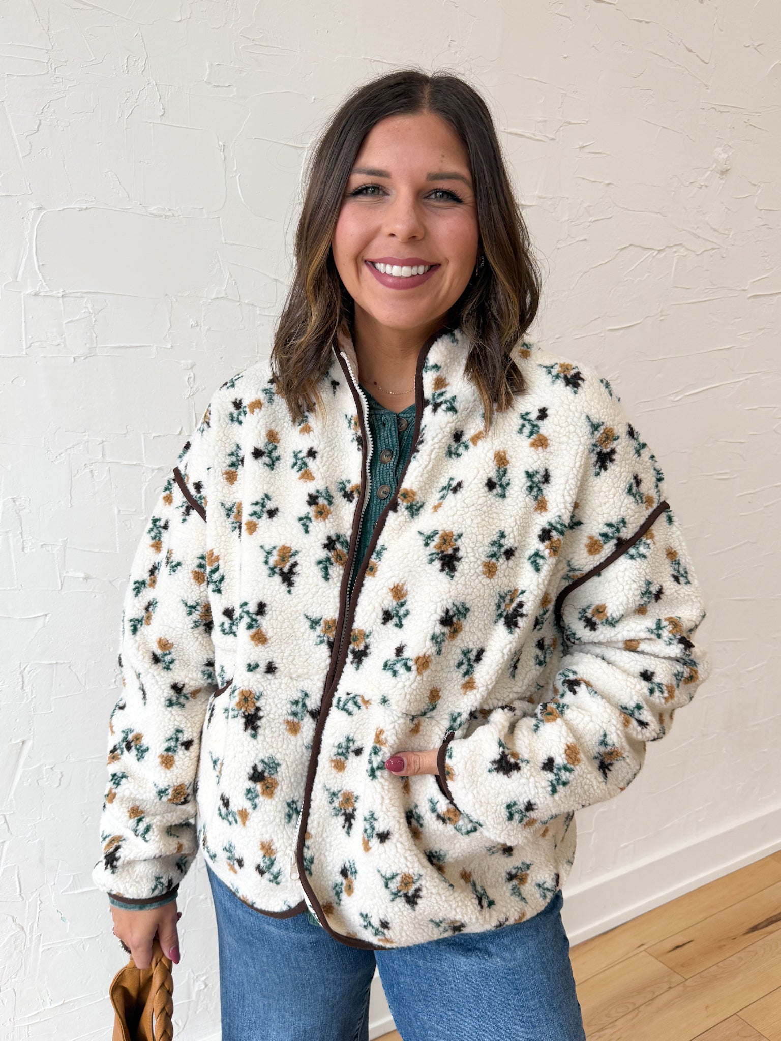 This sherpa jacket is all about cozy comfort with a fun twist. Featuring a playful color combo and a subtle floral pattern, it’s the perfect mix of cute and functional. Soft, warm, and easy to throw on, it’s your go-to jacket for chasing kids, running errands, or meeting up with the girls for coffee. Stylish enough to stand out, comfy enough to live in — this one’s an instant fall favorite.