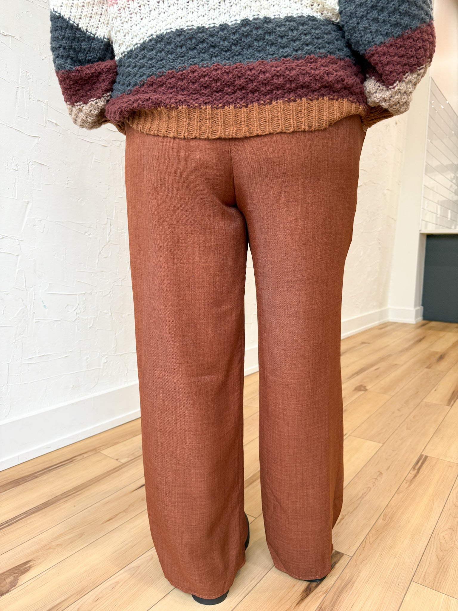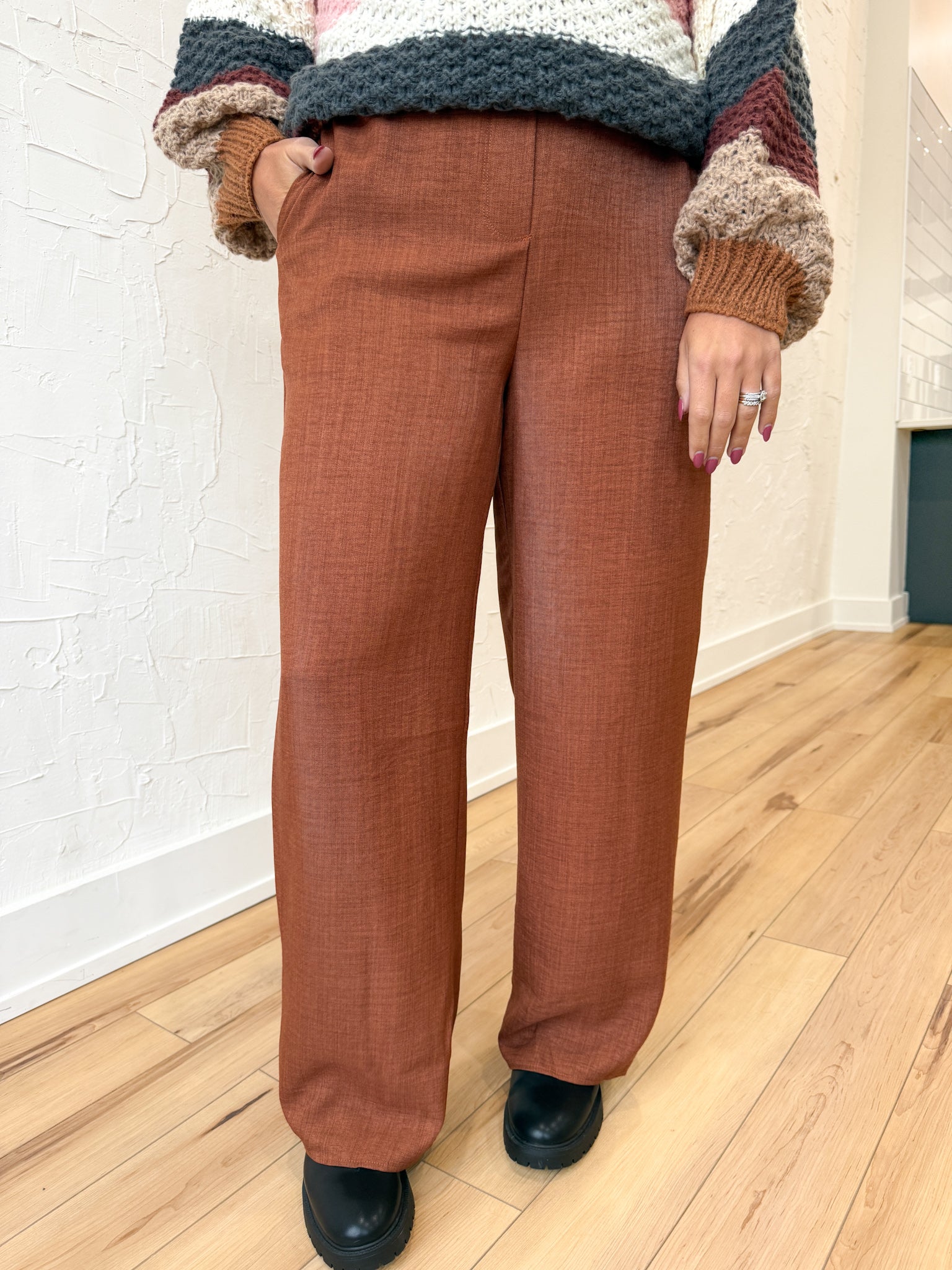 These wide leg trouser pants strike the perfect balance between polished and comfortable. Tailored enough to pair with heels and a blazer for the office, yet soft and easy enough to style with sneakers for a more laid-back vibe. The rich neutral tone makes them endlessly versatile—your new go-to for workdays, weekends, and everything in between