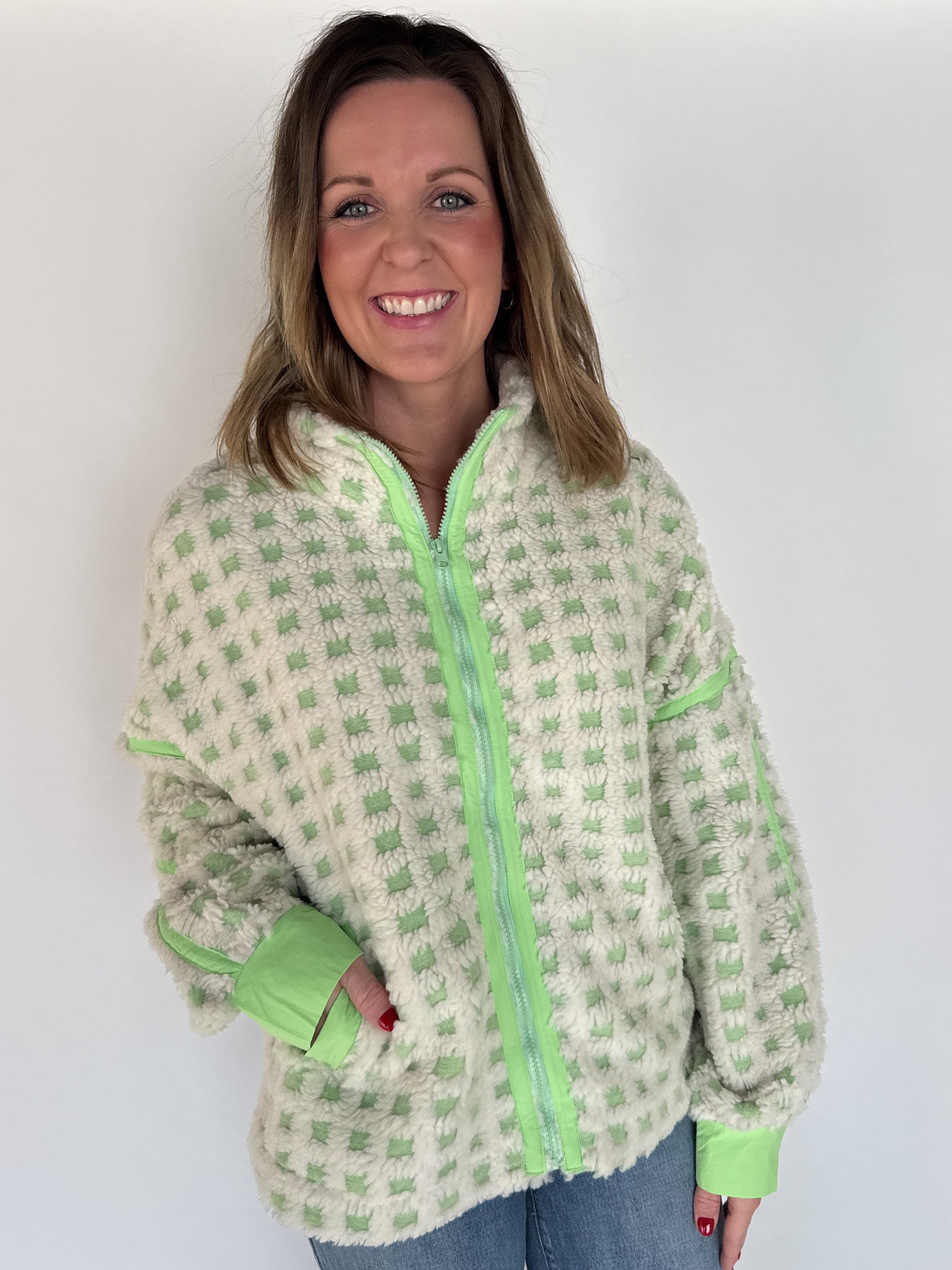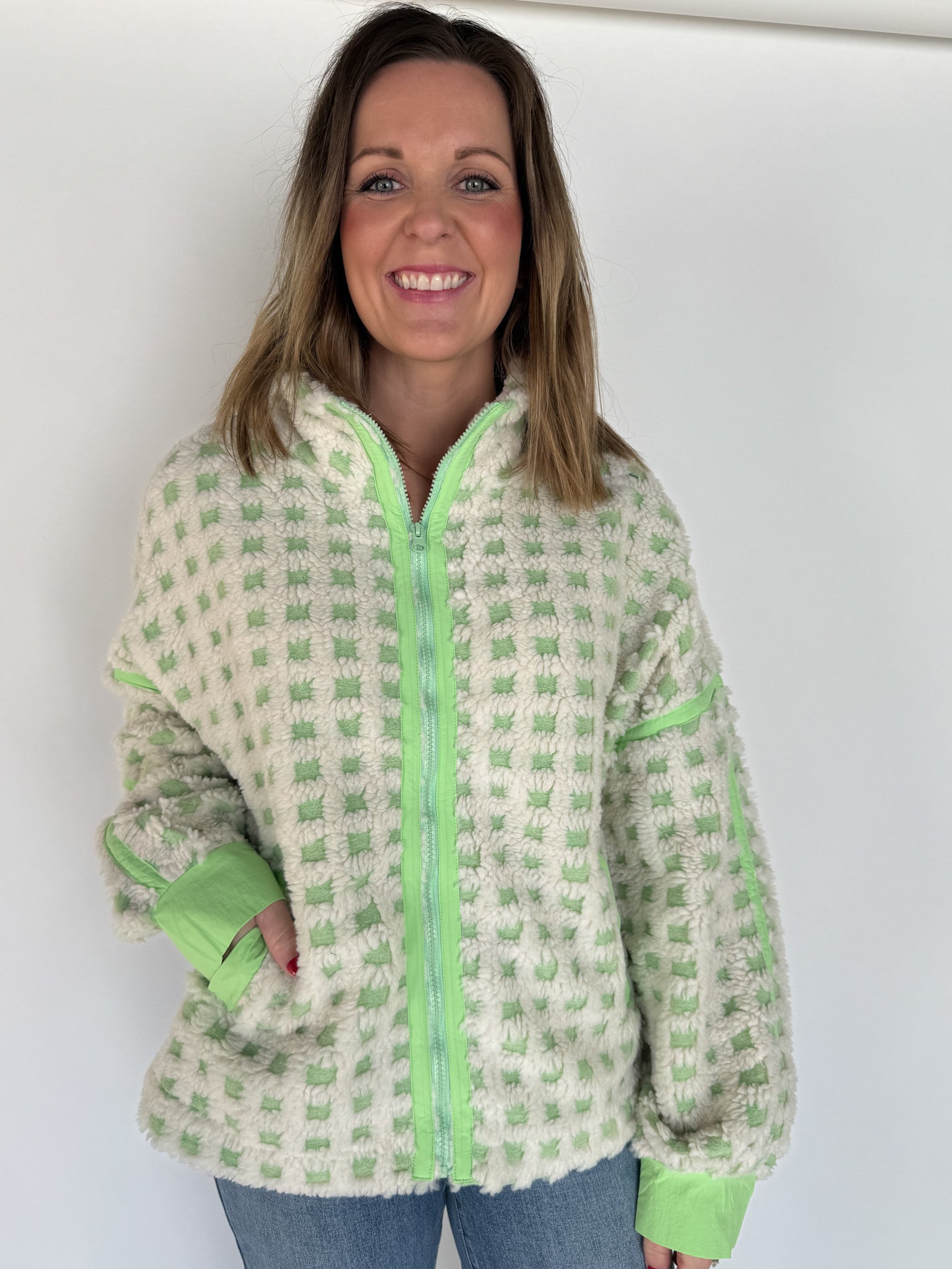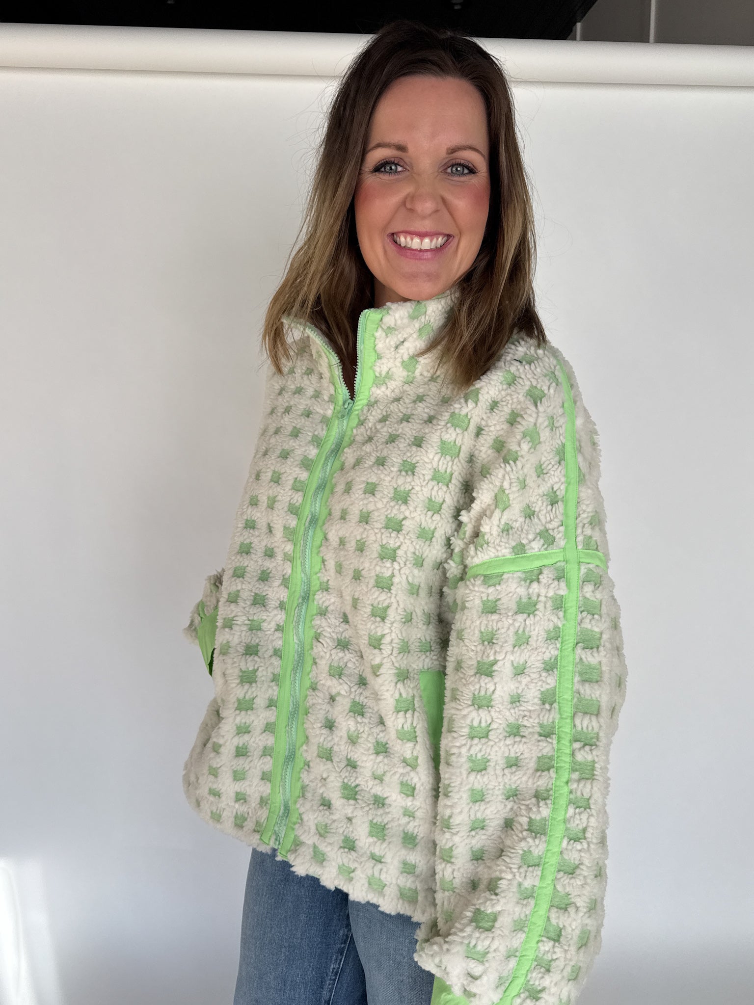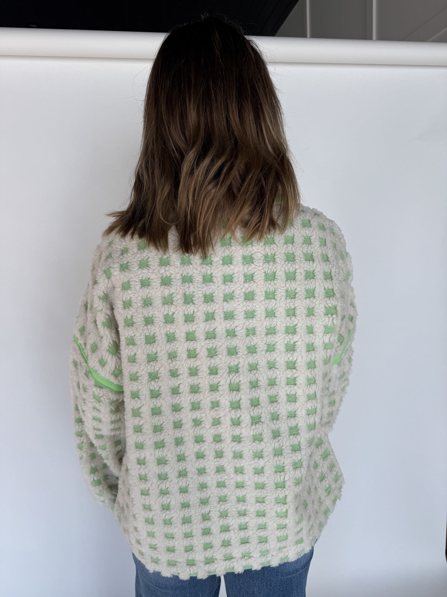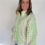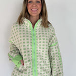Checkered Fleece Jacket- Lime