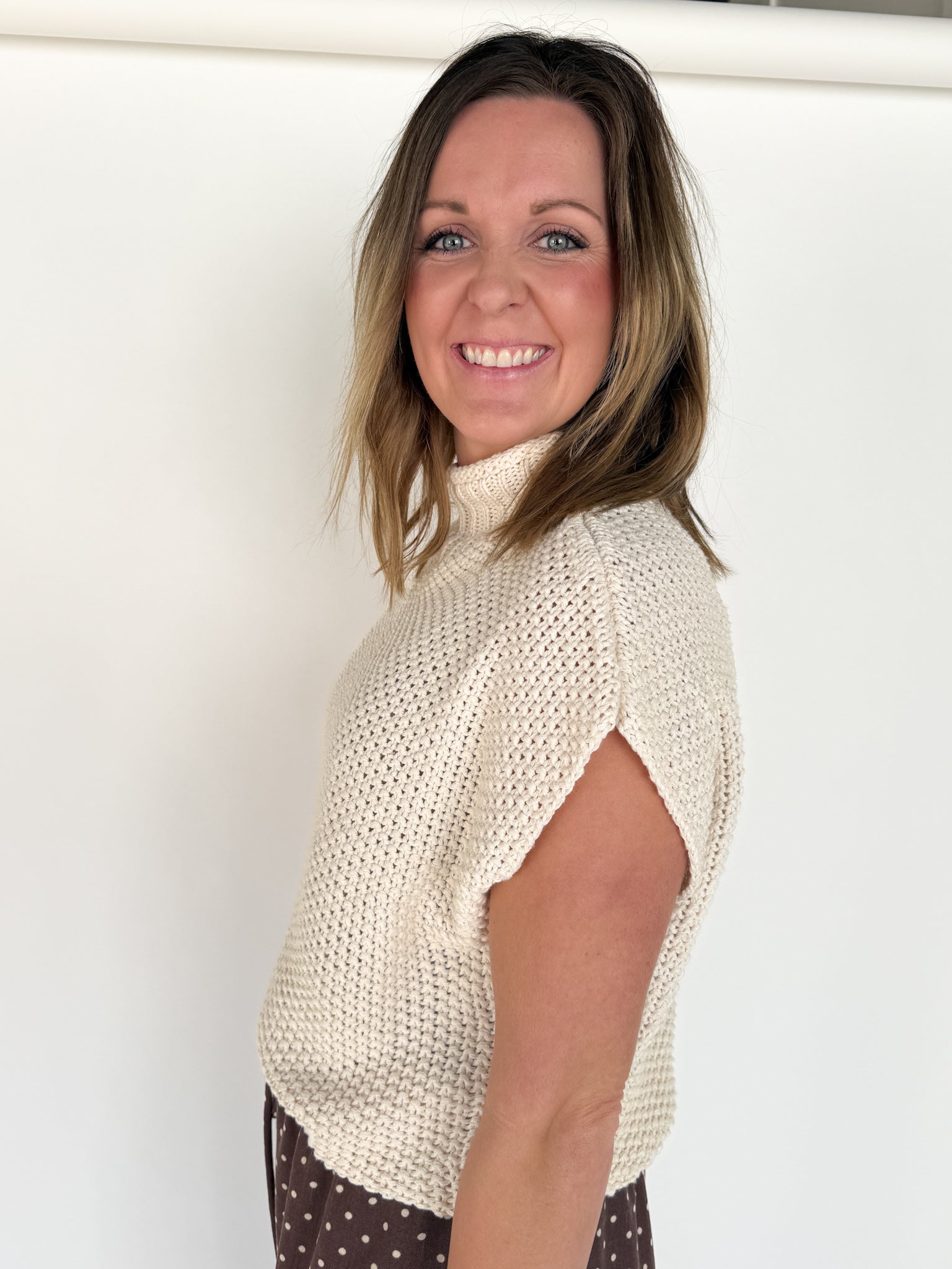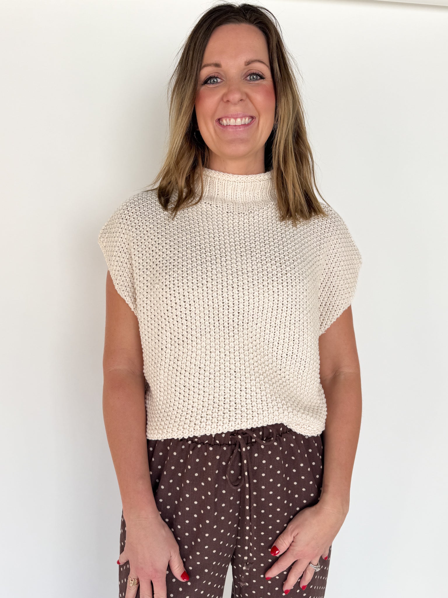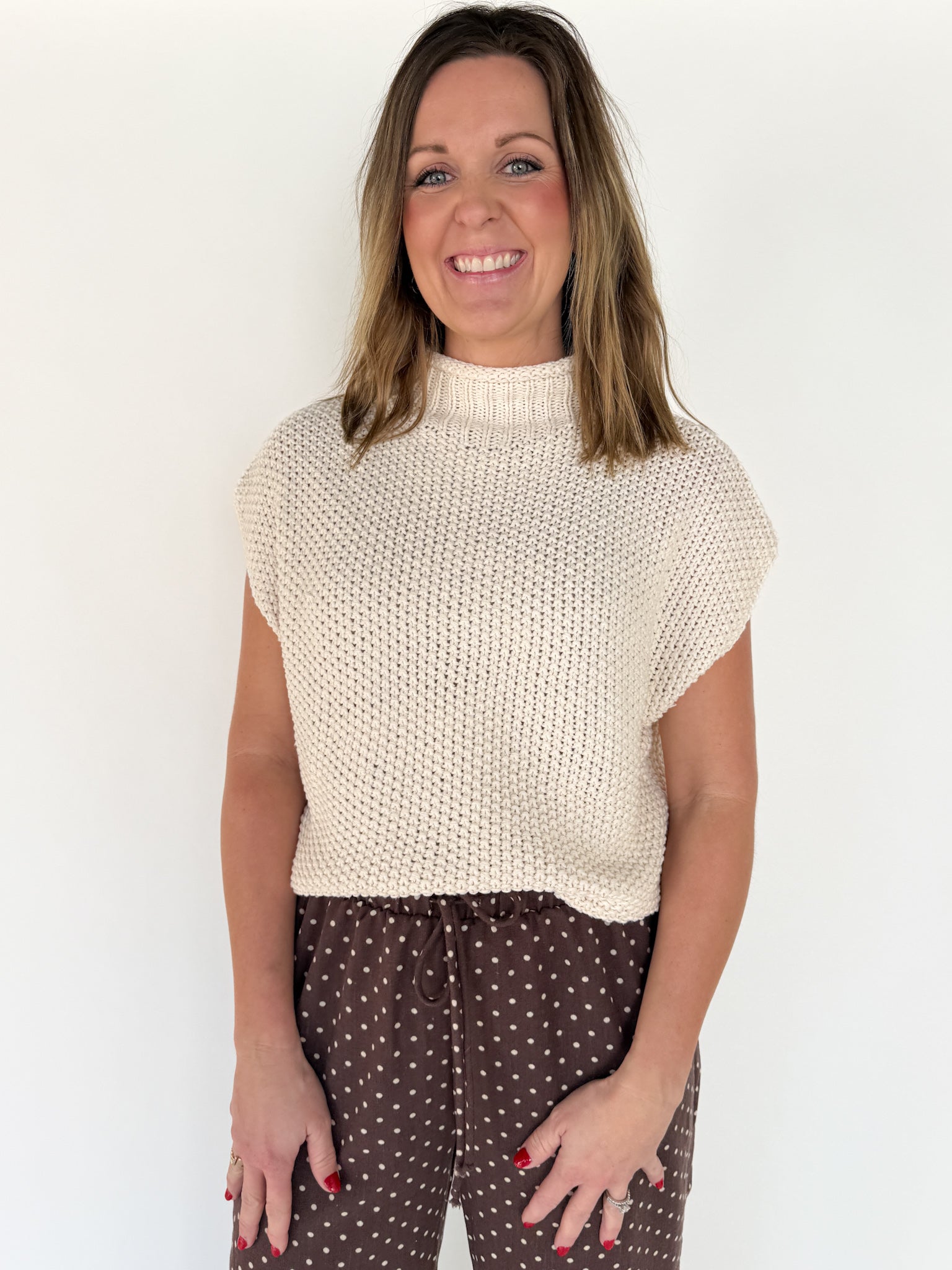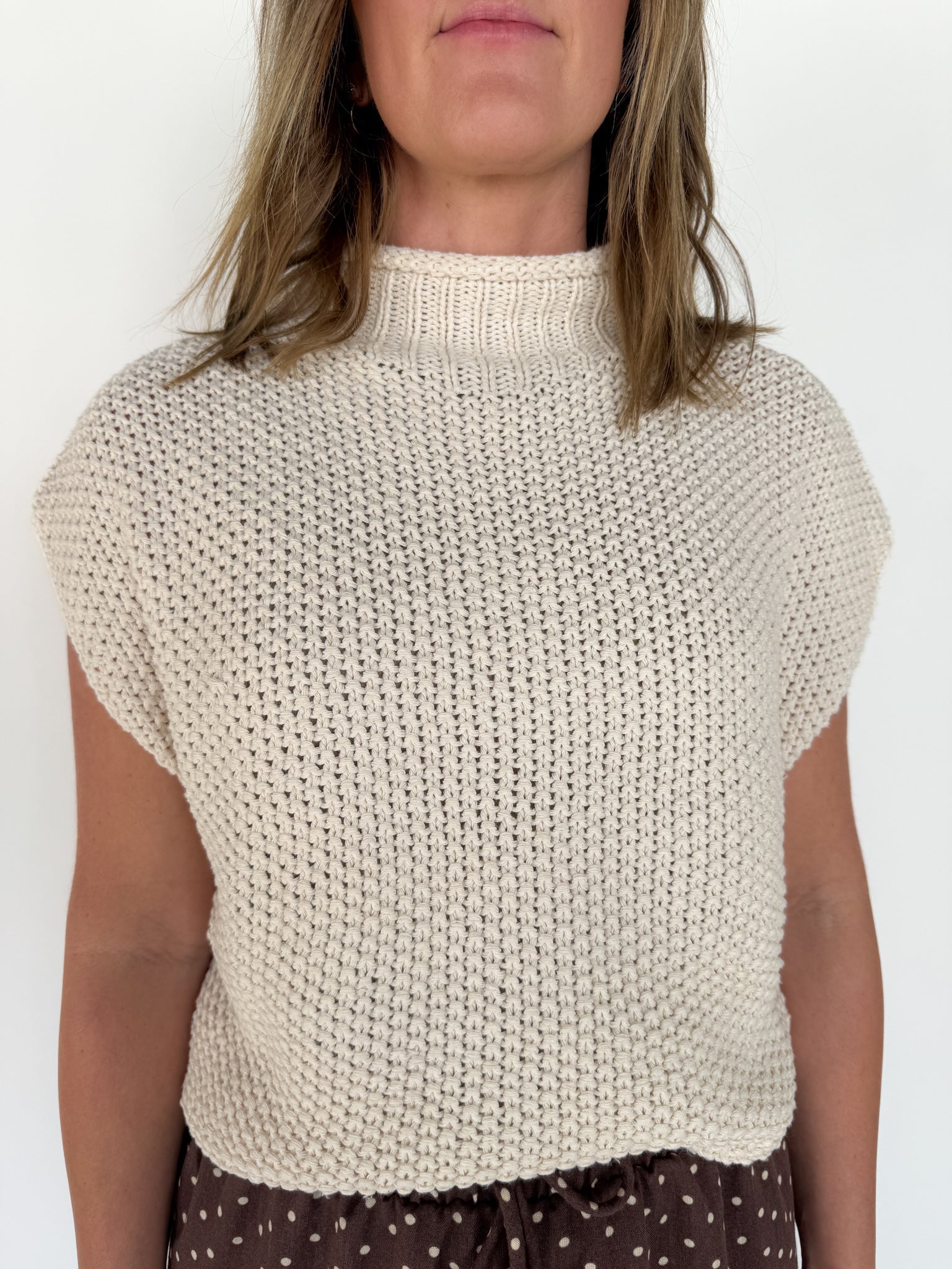 Mock Neck Knit Sweater- Cream