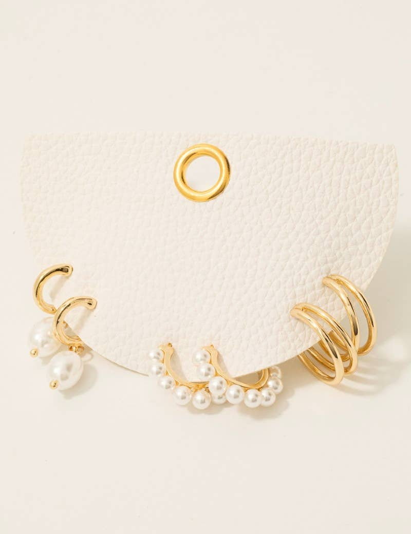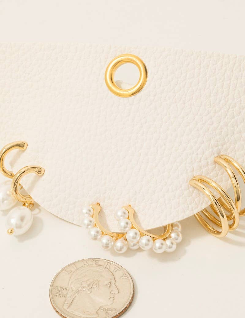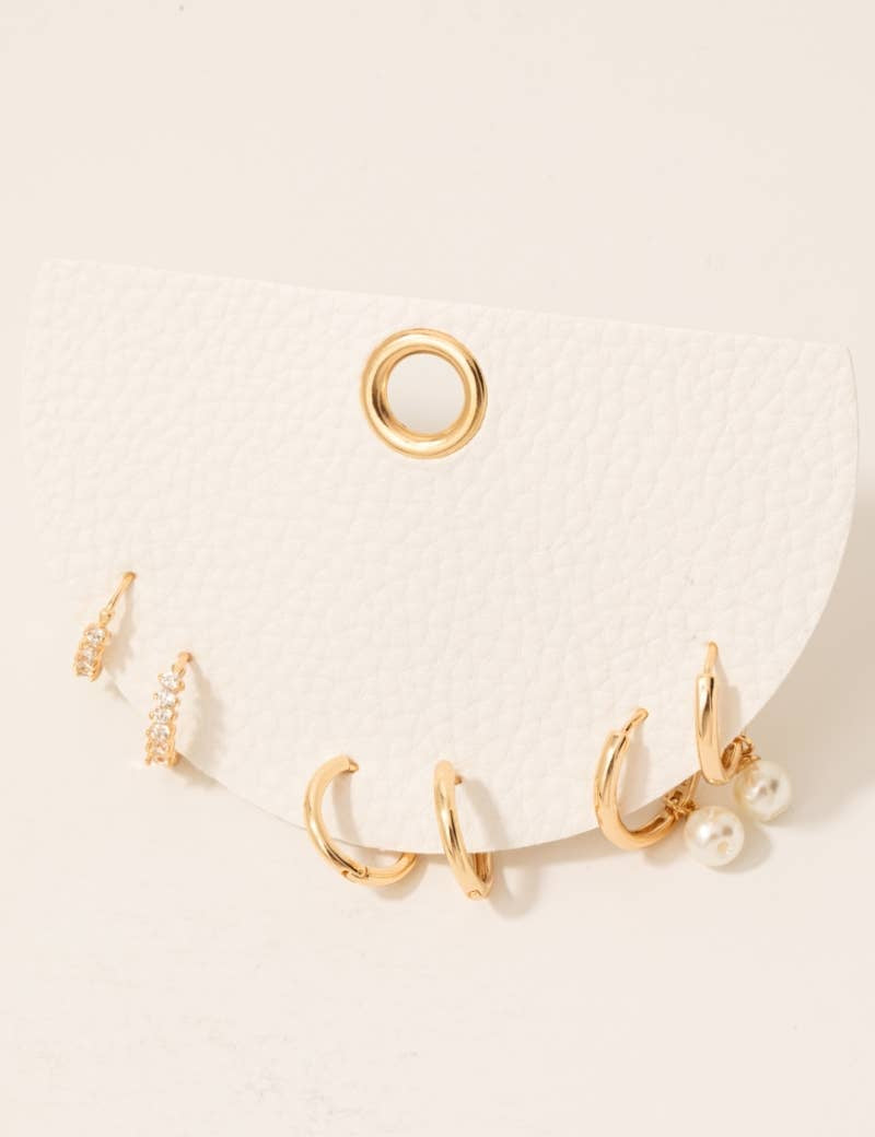 Pearl Charm And Rhinestones Mixed Hoop Earrings Set
