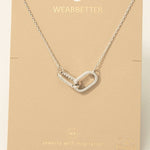 This necklace displays a fashionable gold dipped cubic zirconia pave oval link pendant style.
