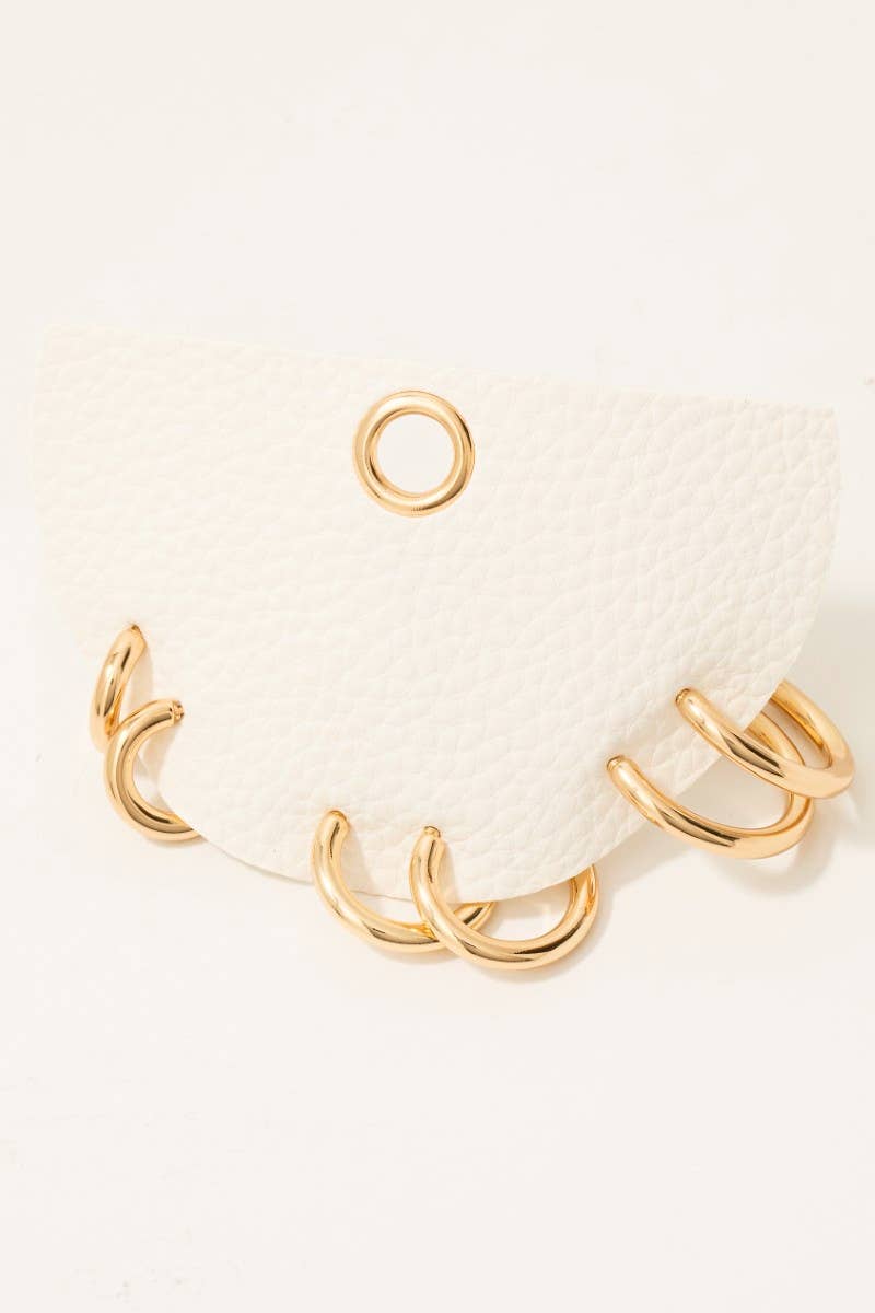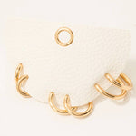 This pair of hoop earrings displays a fashionable three pair mini tube set style. Celebrate the art of accessorizing with this piece that effortlessly encapsulates modern trends.