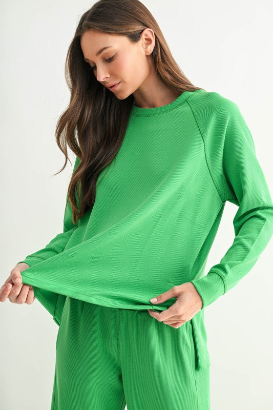 A modern essential you’ll reach for again and again. This long-sleeve tee is made from buttery-soft, sand-washed rib fabric that offers an effortless, flattering drape. Designed with a classic crew neckline, raglan sleeves, subtle side slits, and a high-low hem, it moves with you for all-day comfort. The perfect mix of cozy and refined—easy to style, easy to love.