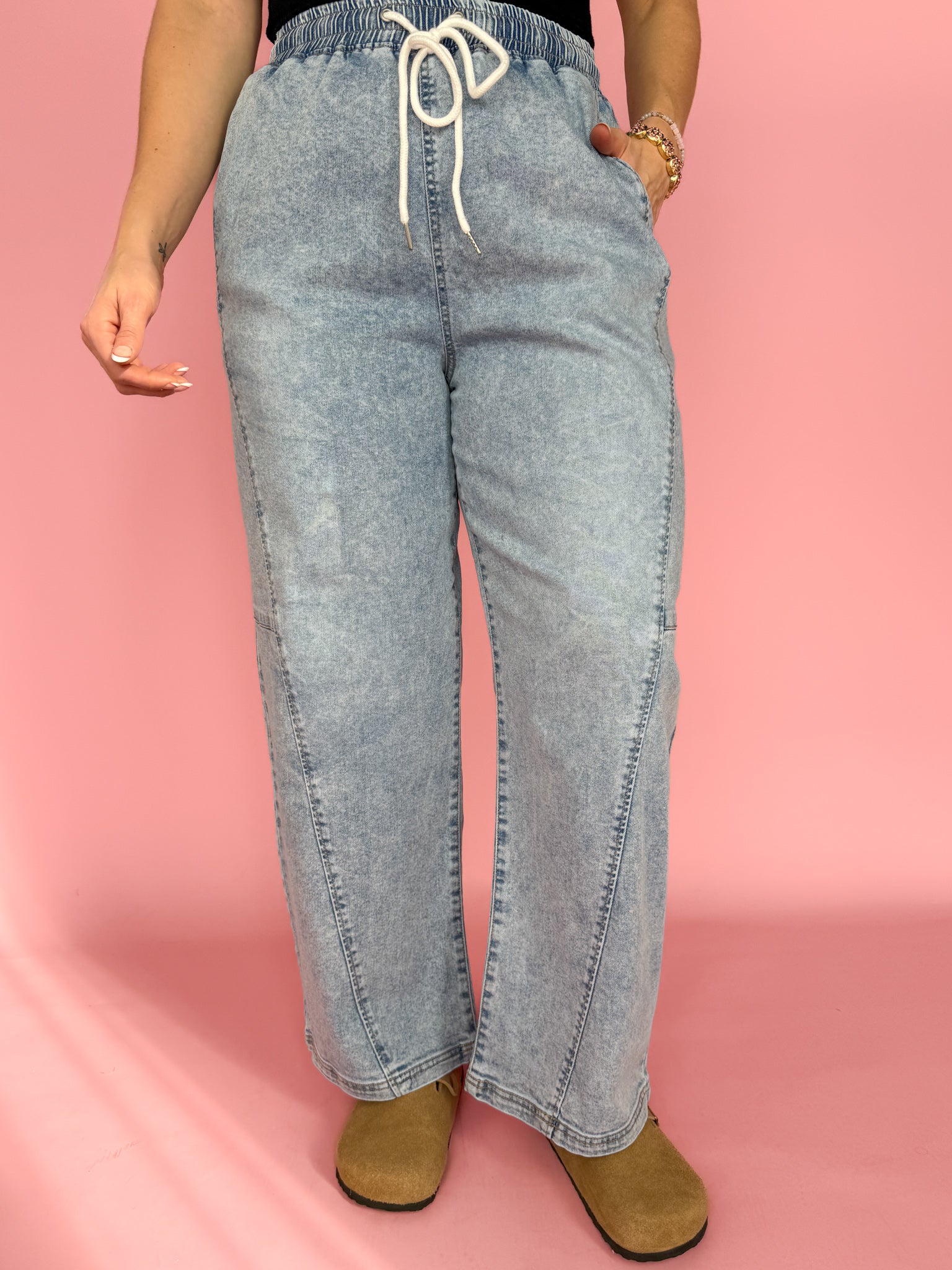 Elastic Band Barrel Jeans