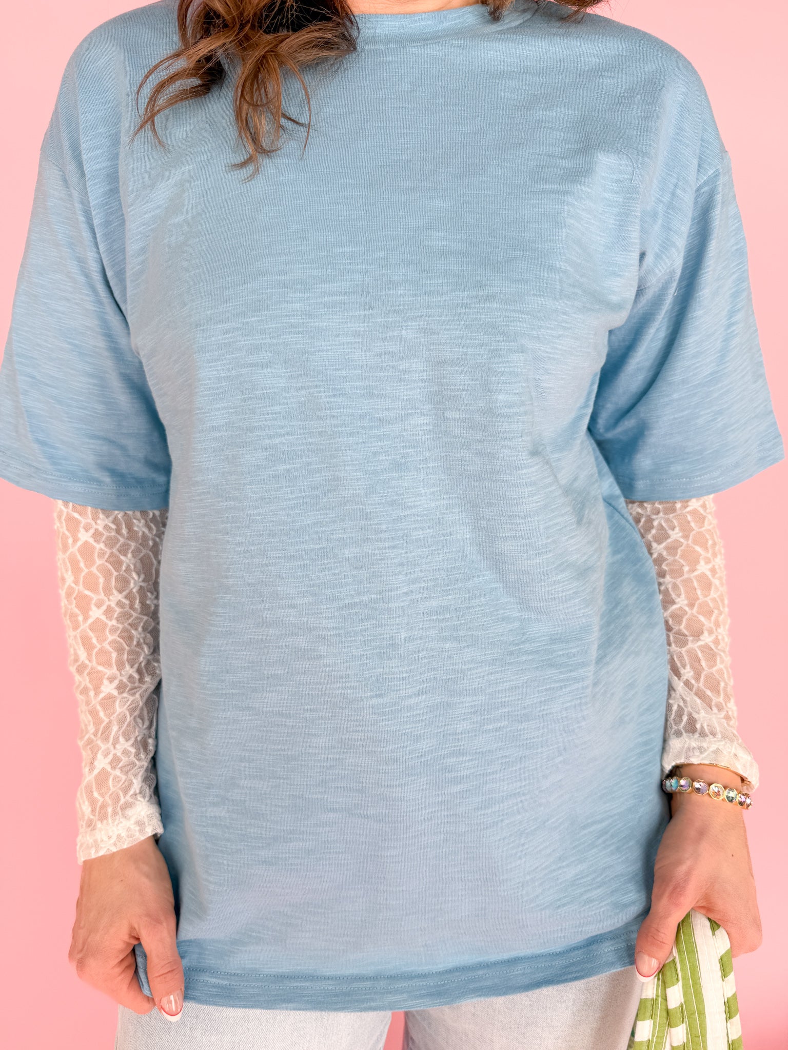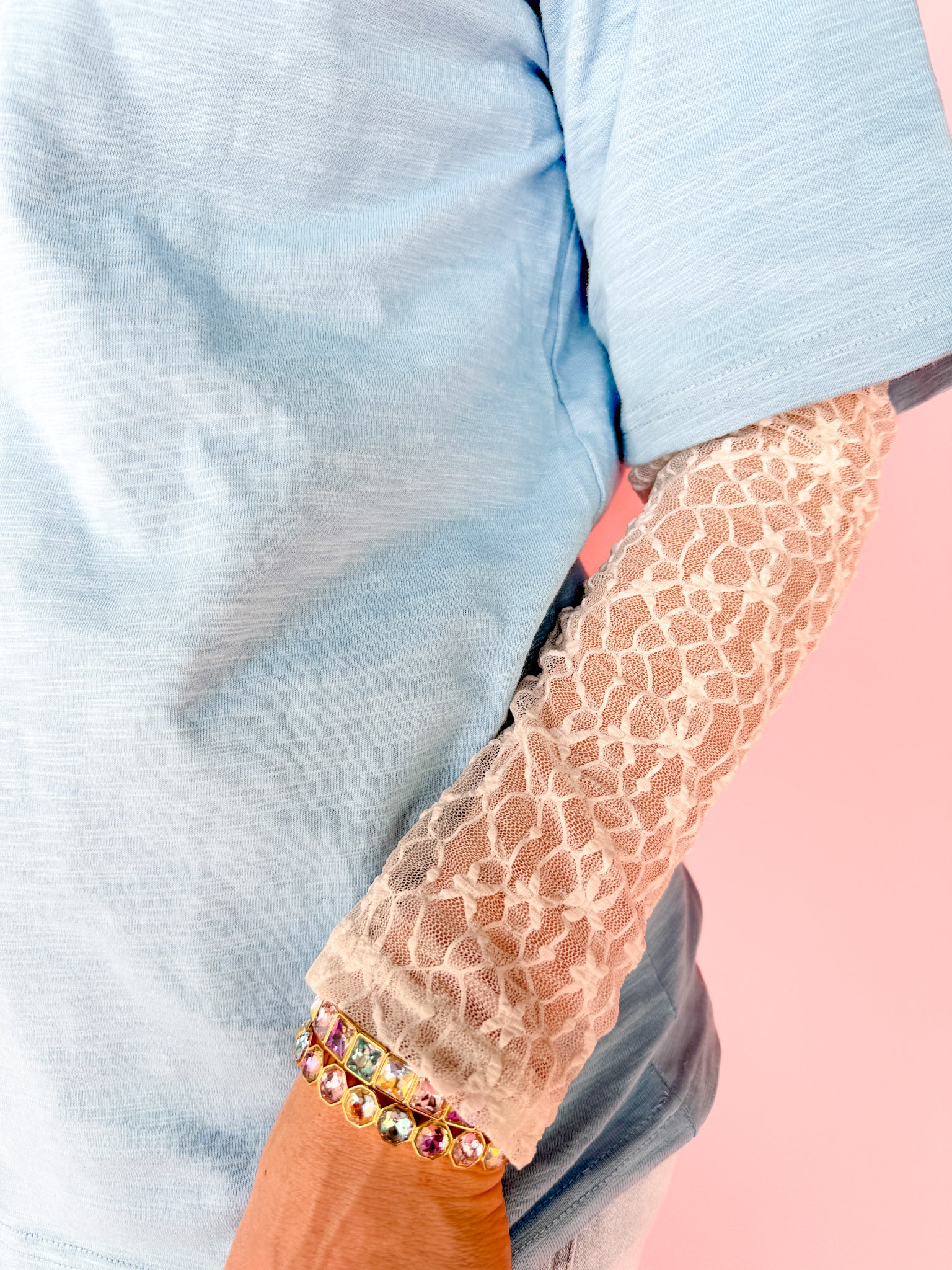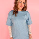 Lace Sleeve Layered T Shirt-Blue