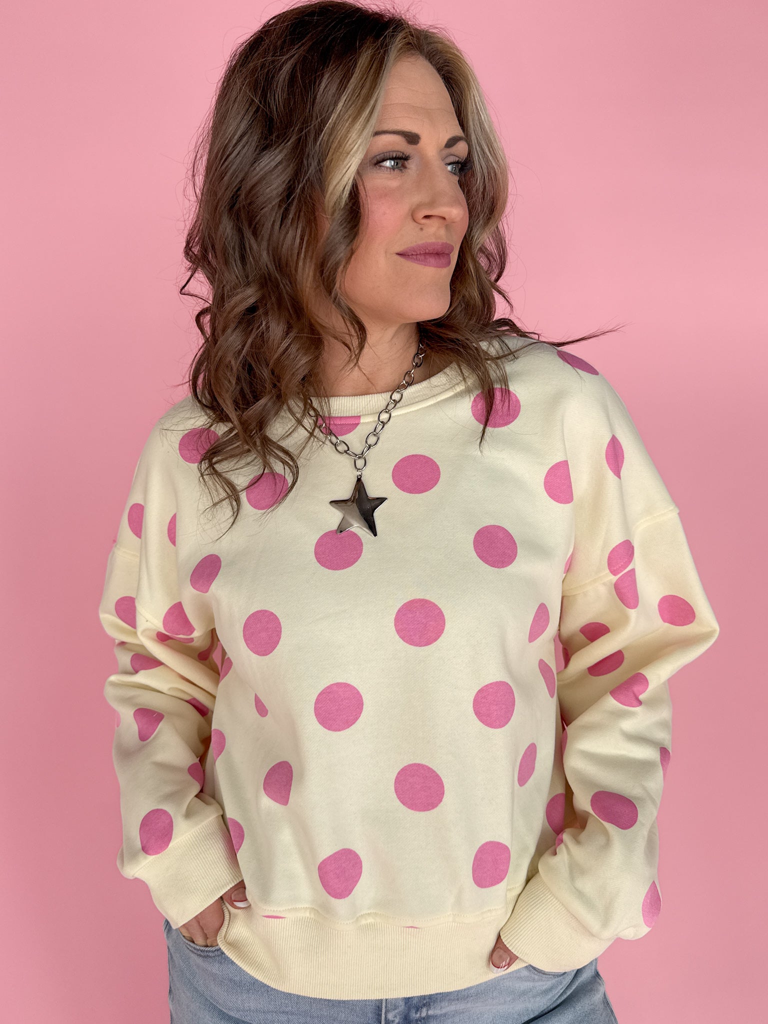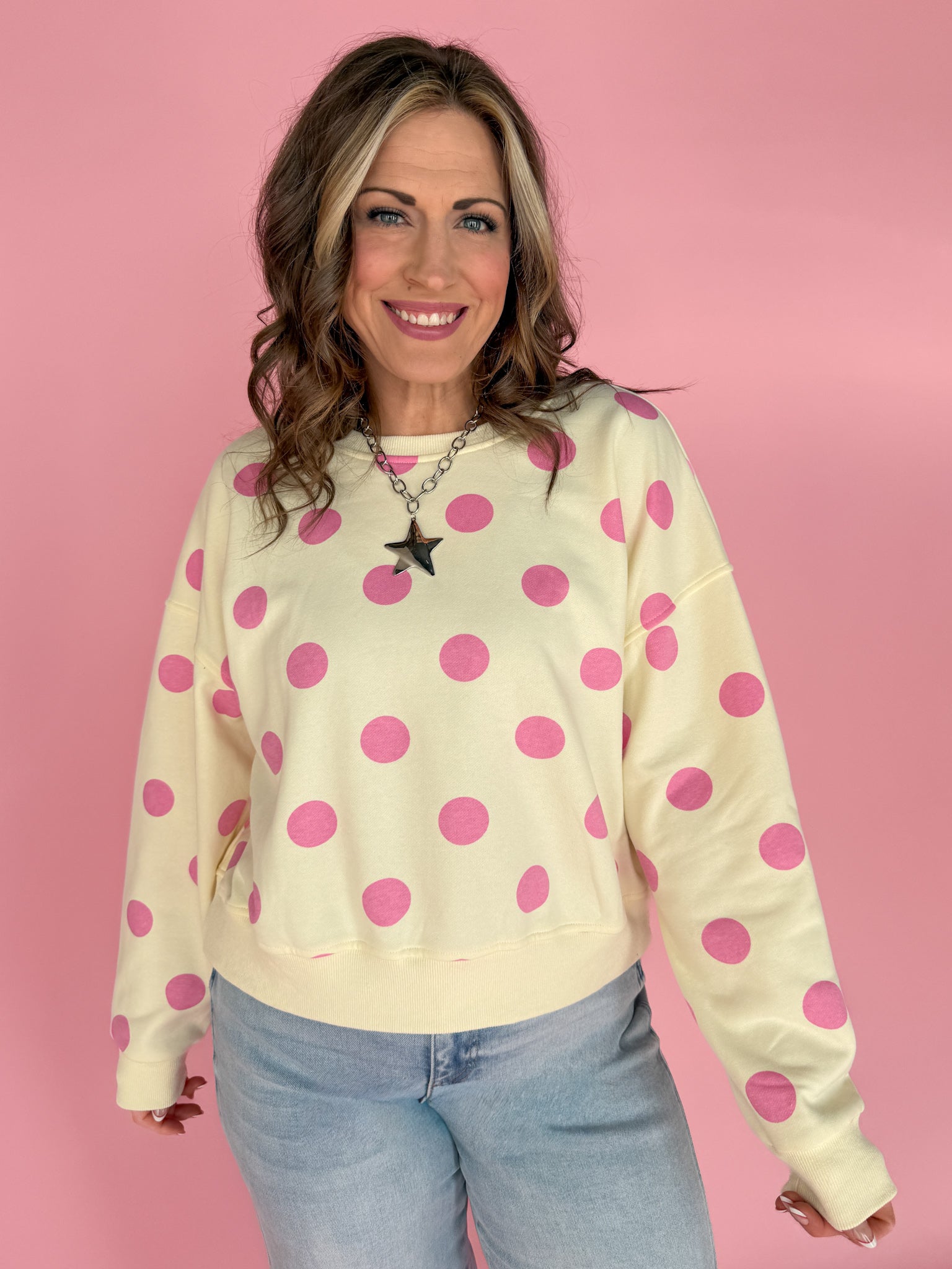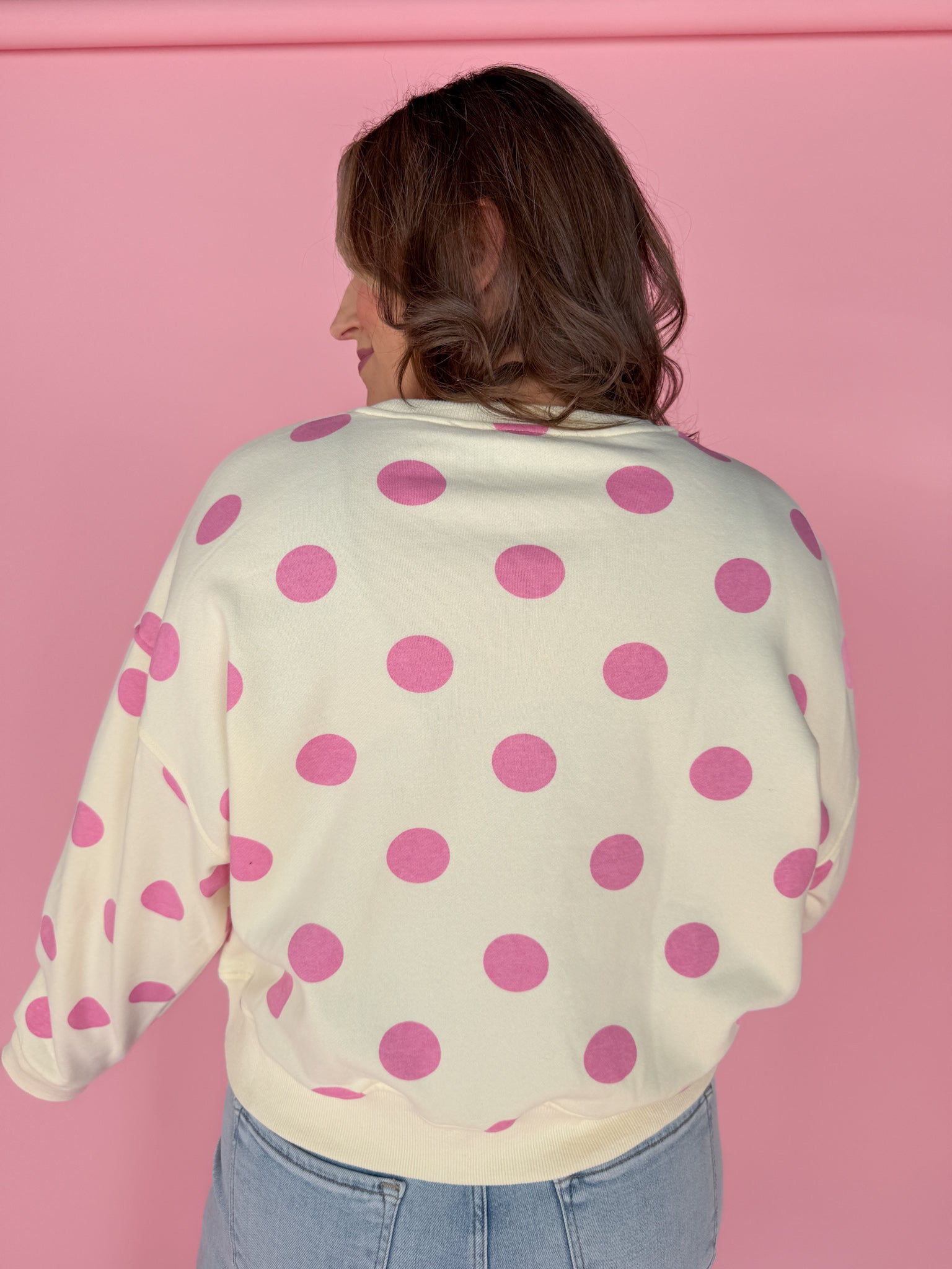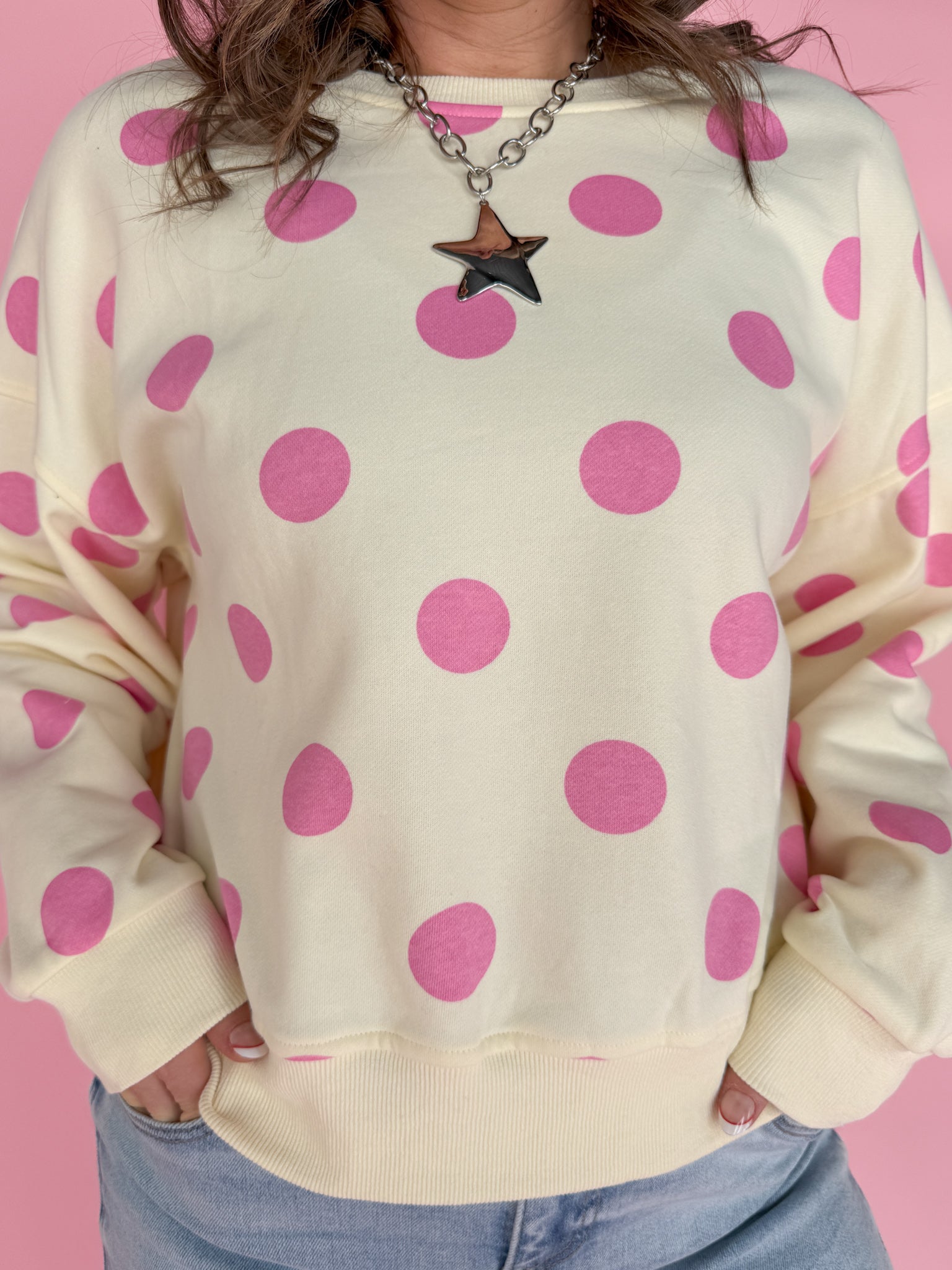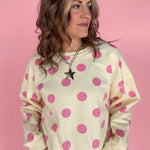 Polka Dot Crewneck-Cream/Pink