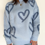 Painted Heart Sweater- Blue