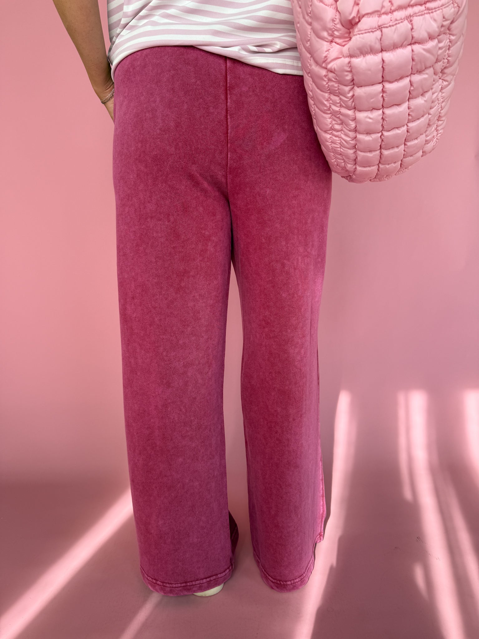 Acid Wash Wide Leg Pants-Red