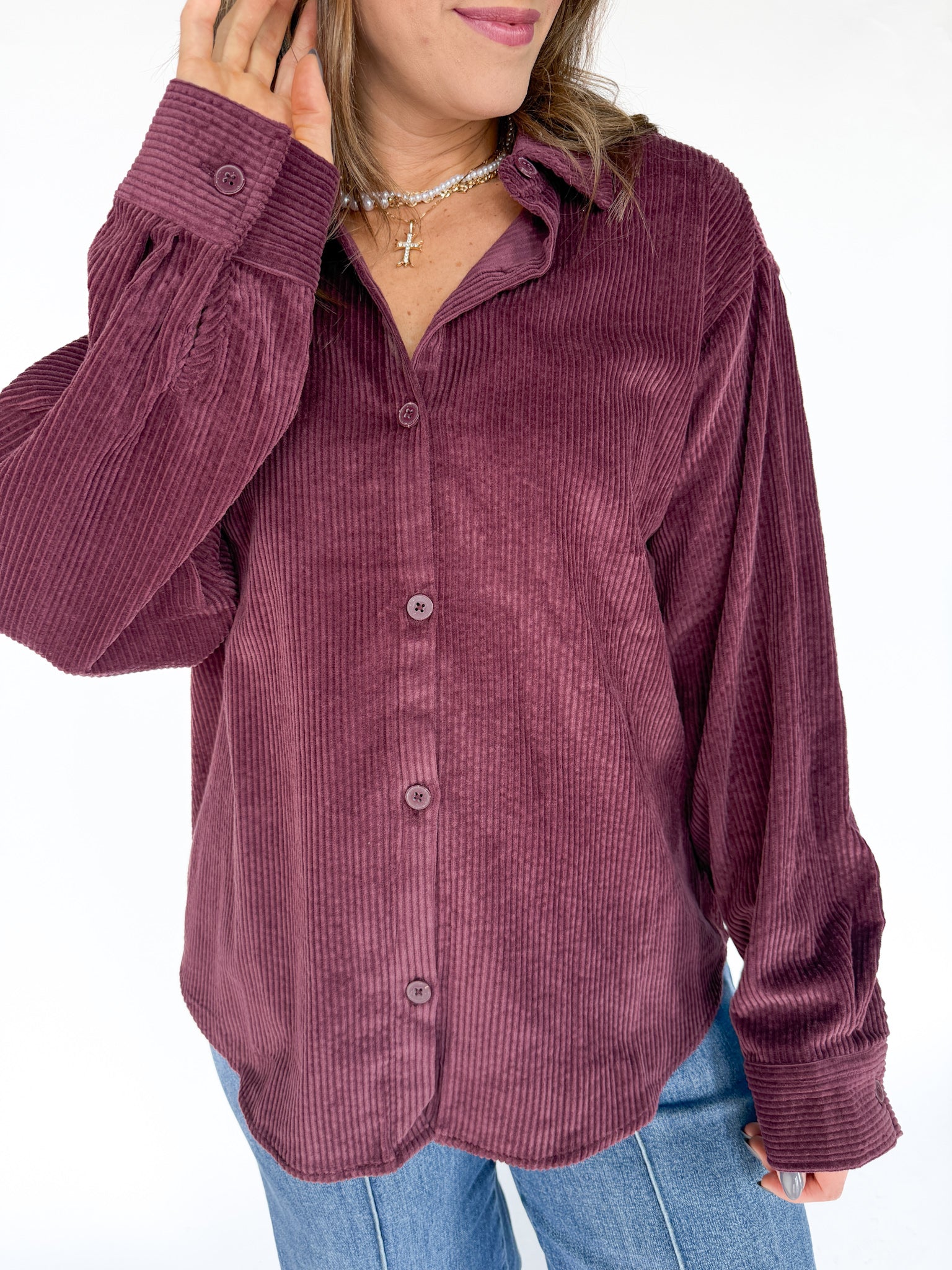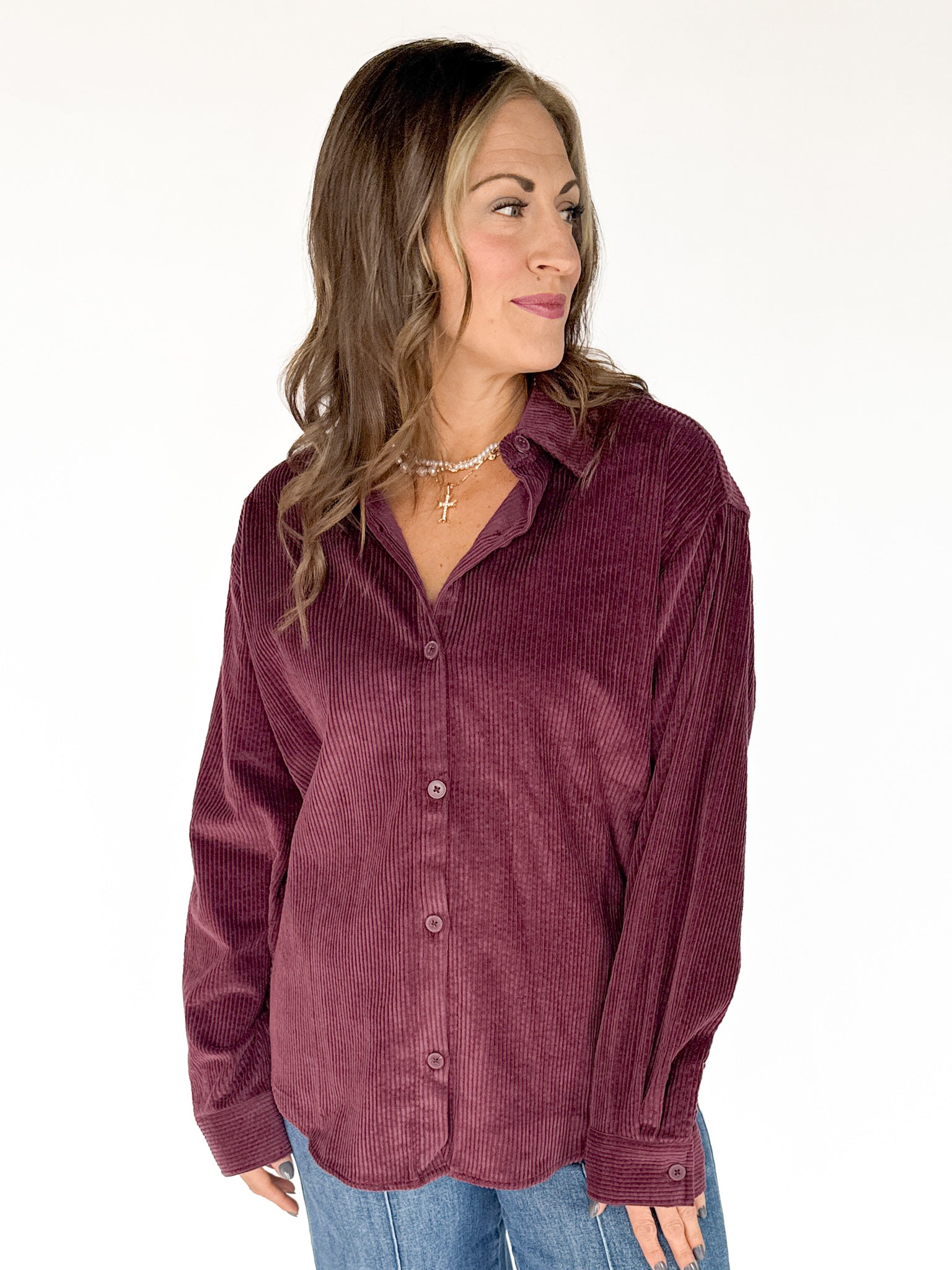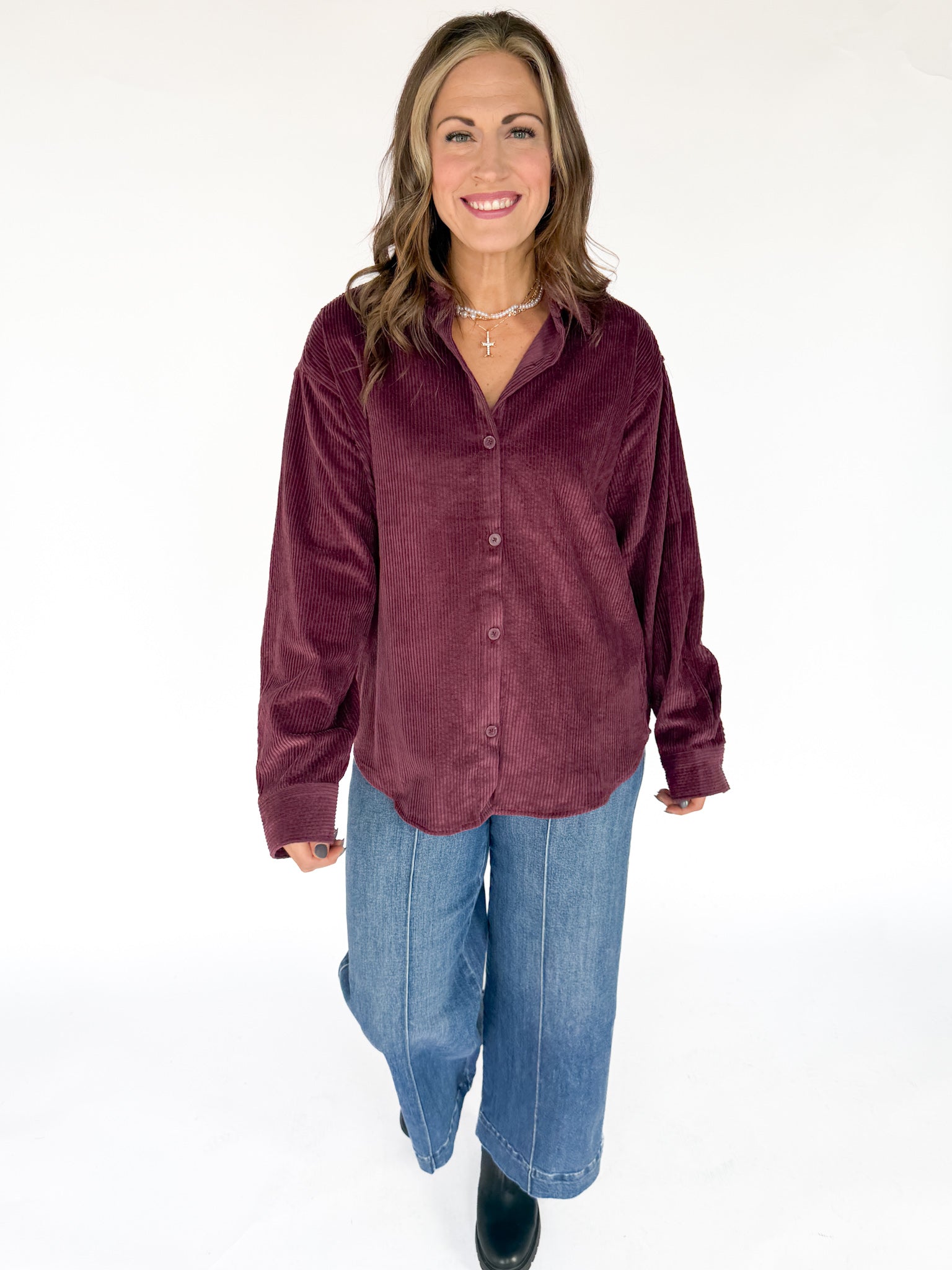 A fall staple made easy. This relaxed-fit corduroy button-up features a fun, touchable texture that instantly elevates your look. Wear it buttoned up for a polished vibe at the office or unbuttoned over a tee for a casual day out. Cozy yet versatile, it’s the effortless layer you’ll reach for all season long.