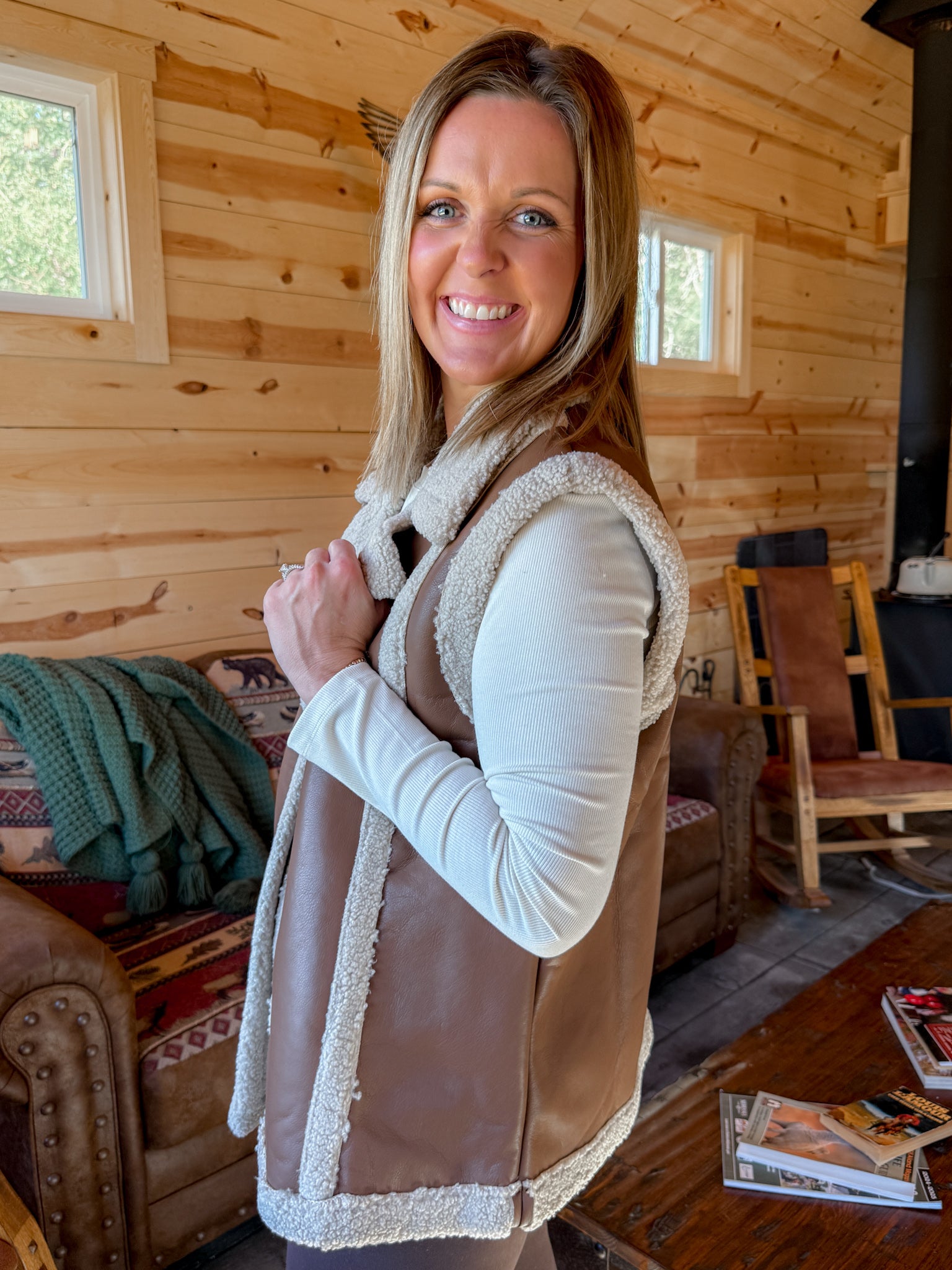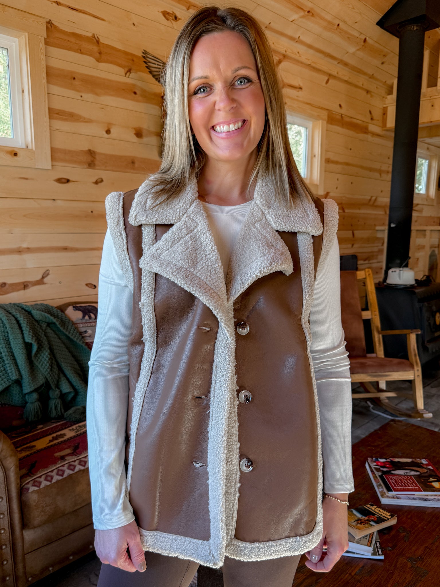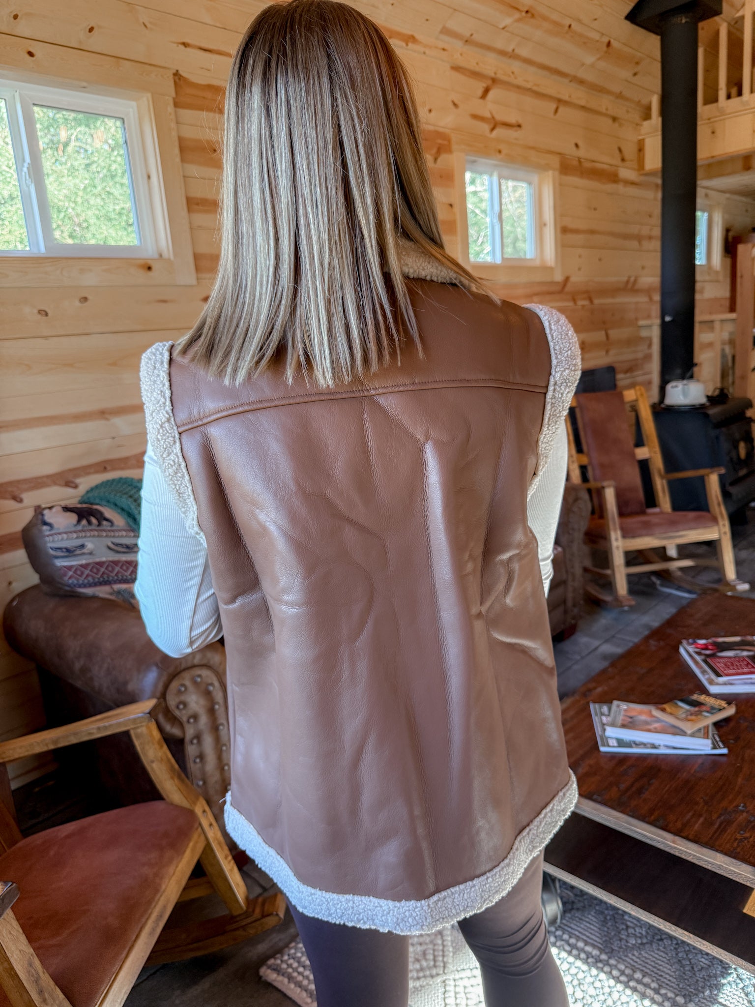 Faux Leather Vest- Brown