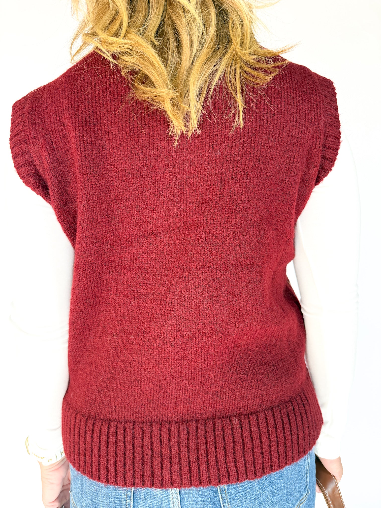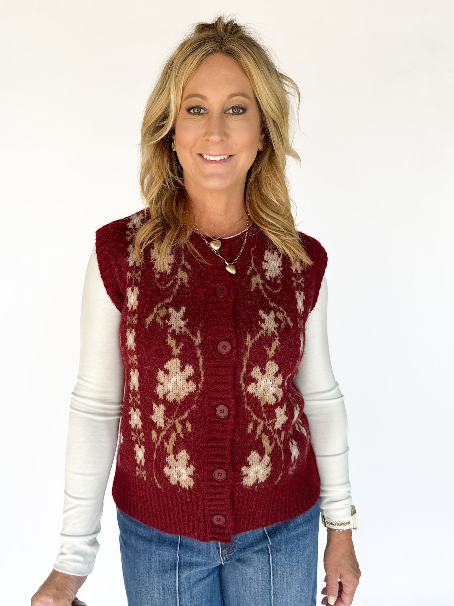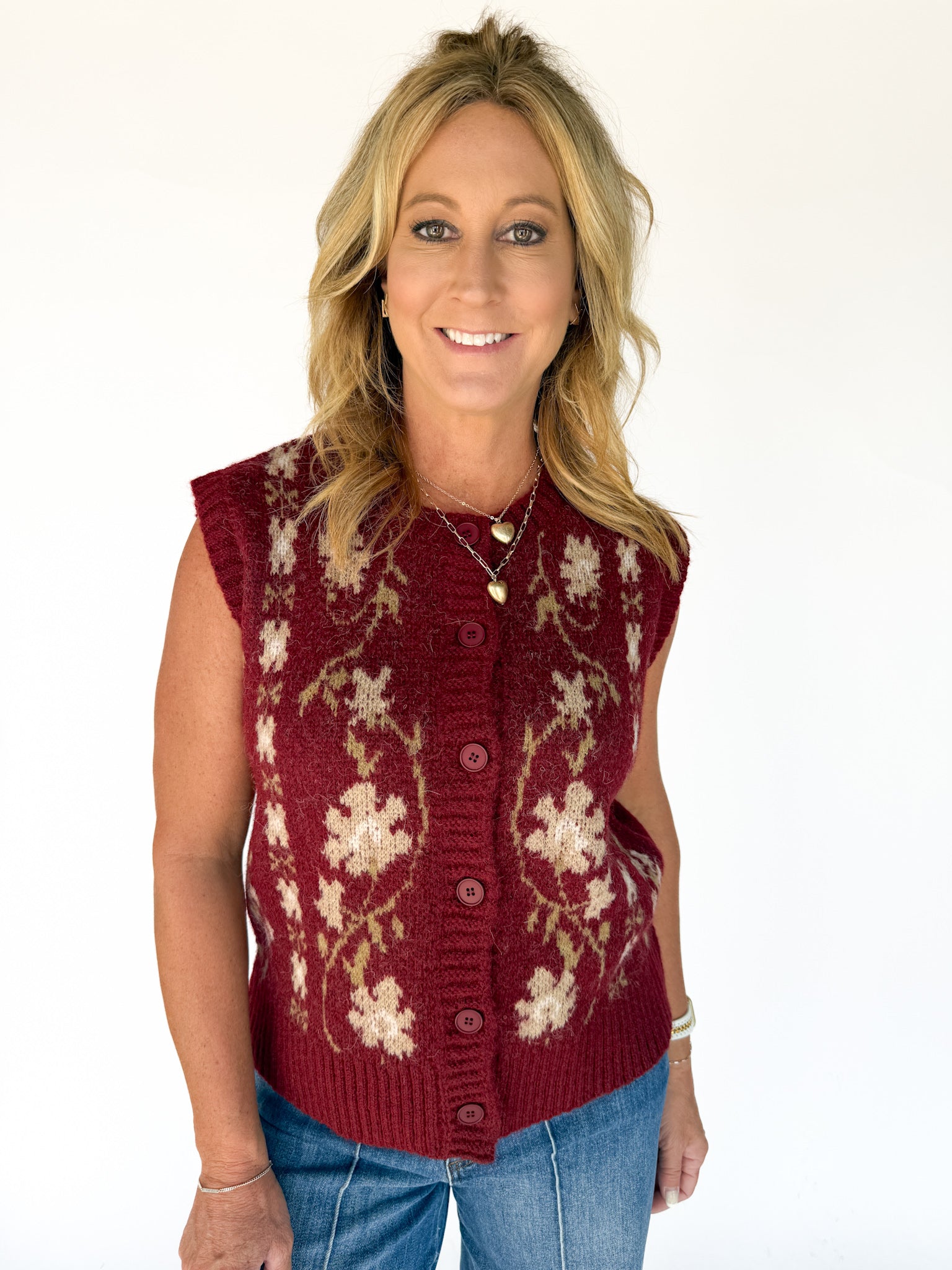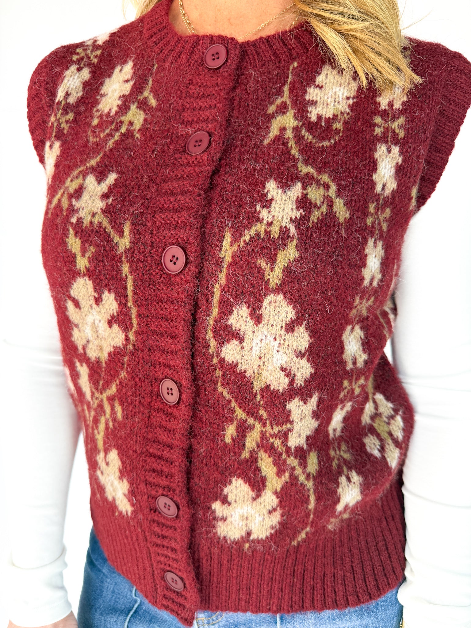 Floral Sweater Vest- Burgundy