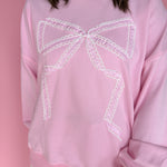 Gingham Lace Bow Pullover- Pink