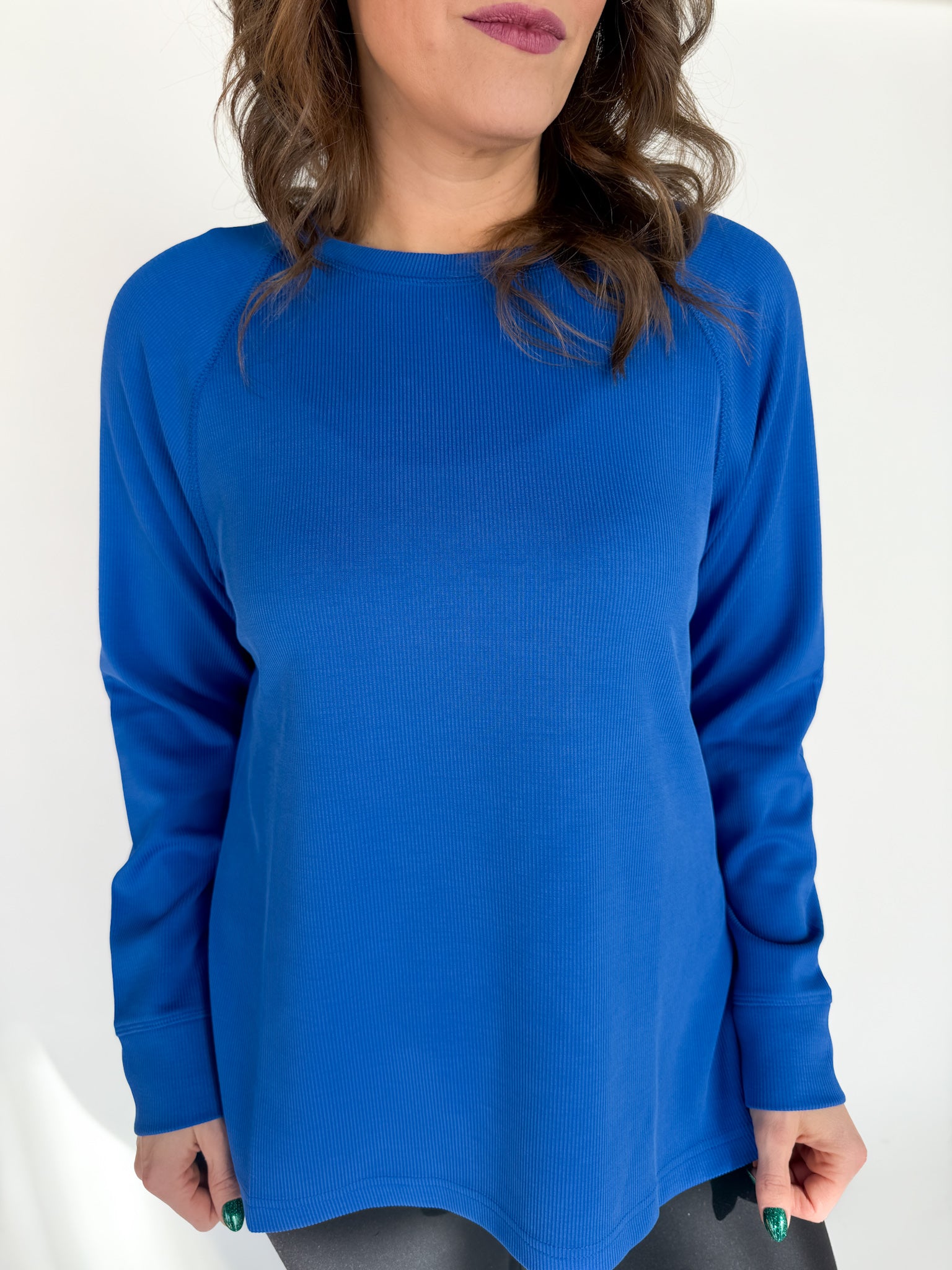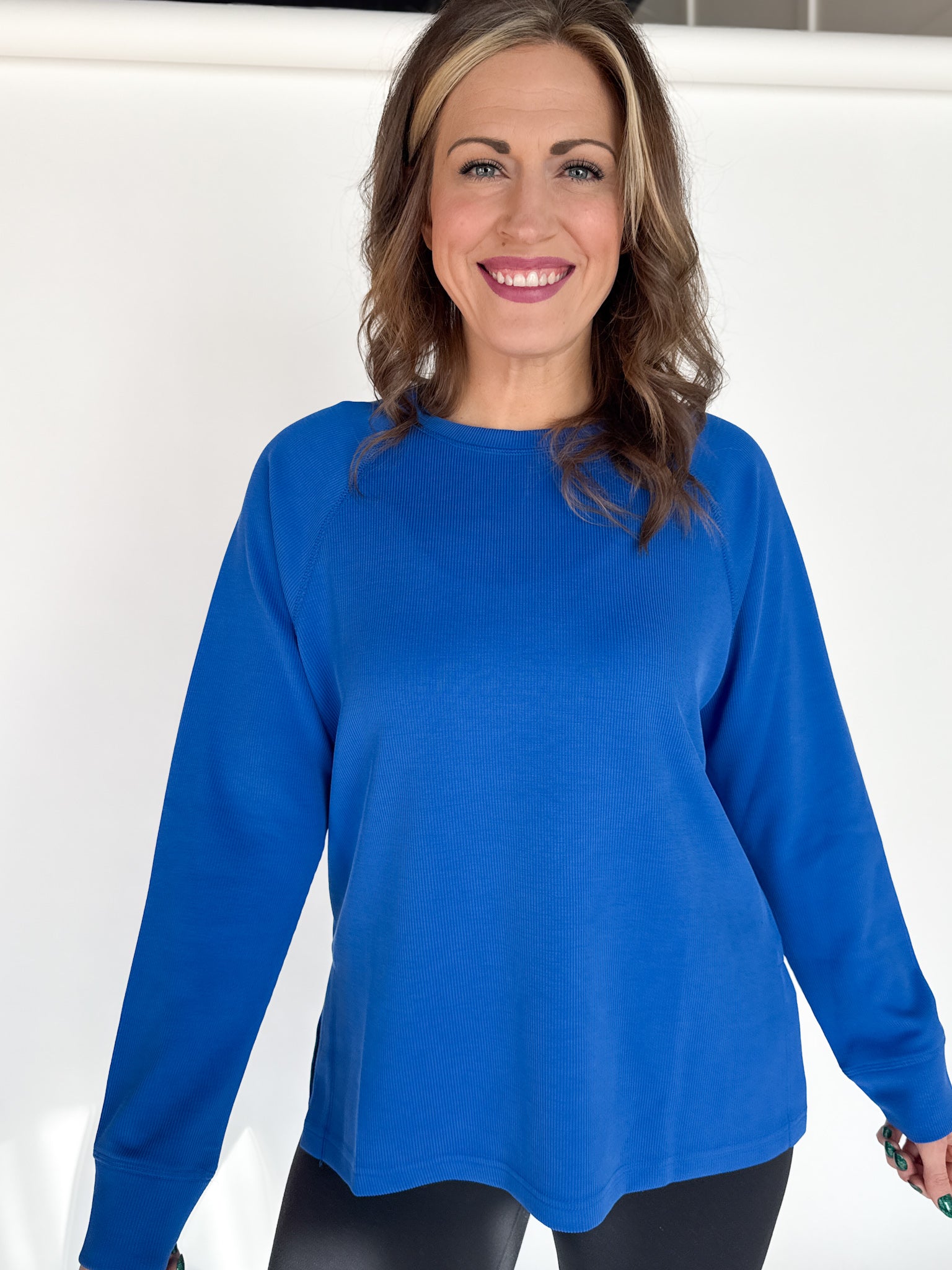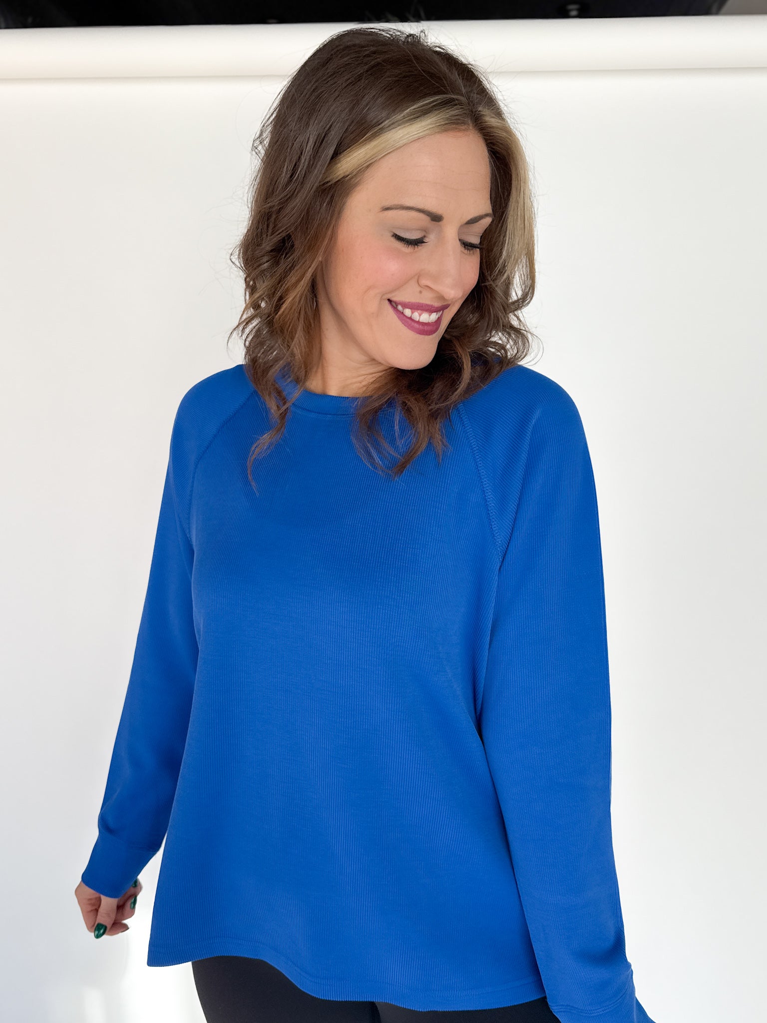 A modern essential you’ll reach for again and again. This long-sleeve tee is made from buttery-soft, sand-washed rib fabric that offers an effortless, flattering drape. Designed with a classic crew neckline, raglan sleeves, subtle side slits, and a high-low hem, it moves with you for all-day comfort. The perfect mix of cozy and refined—easy to style, easy to love.