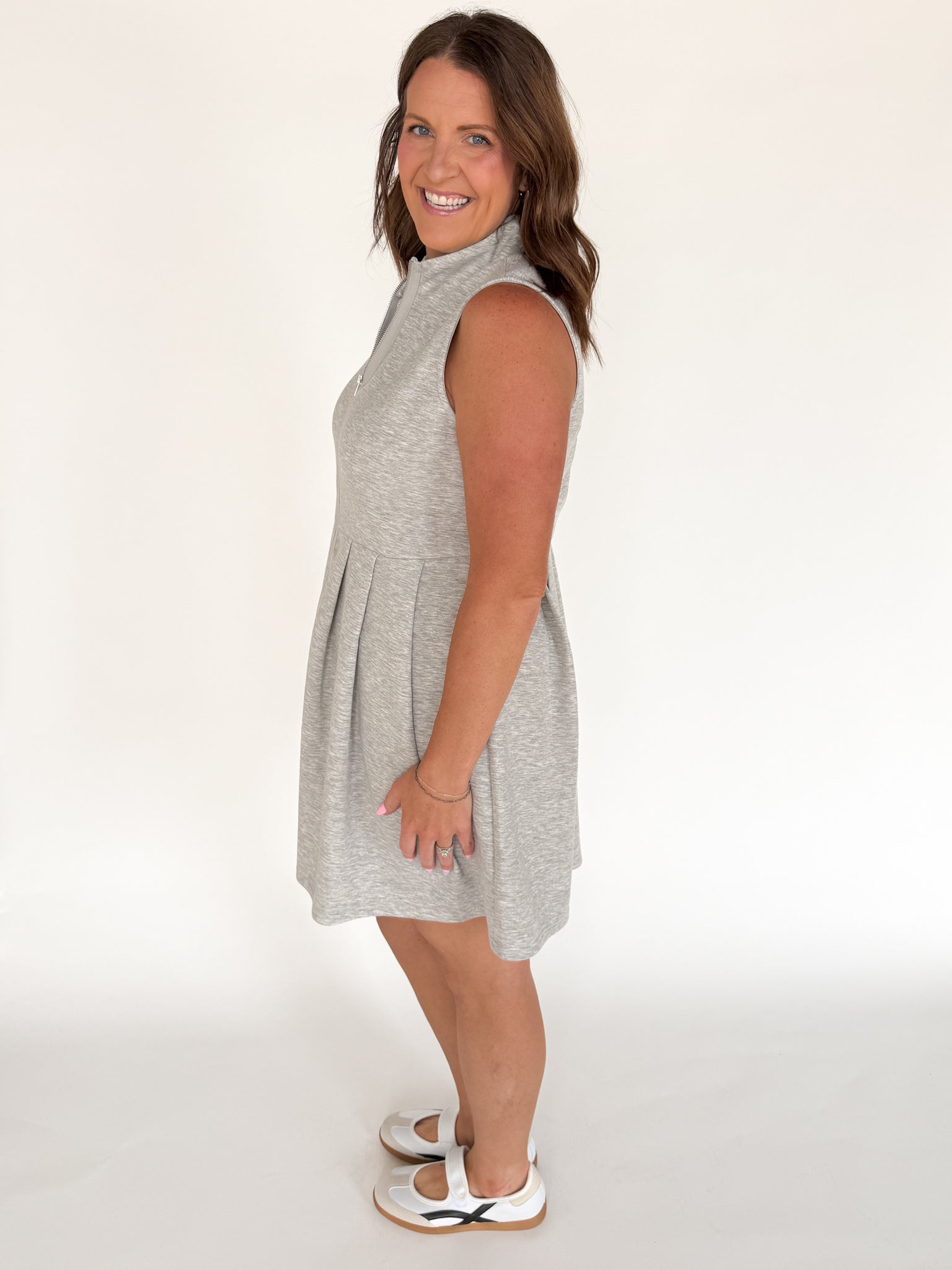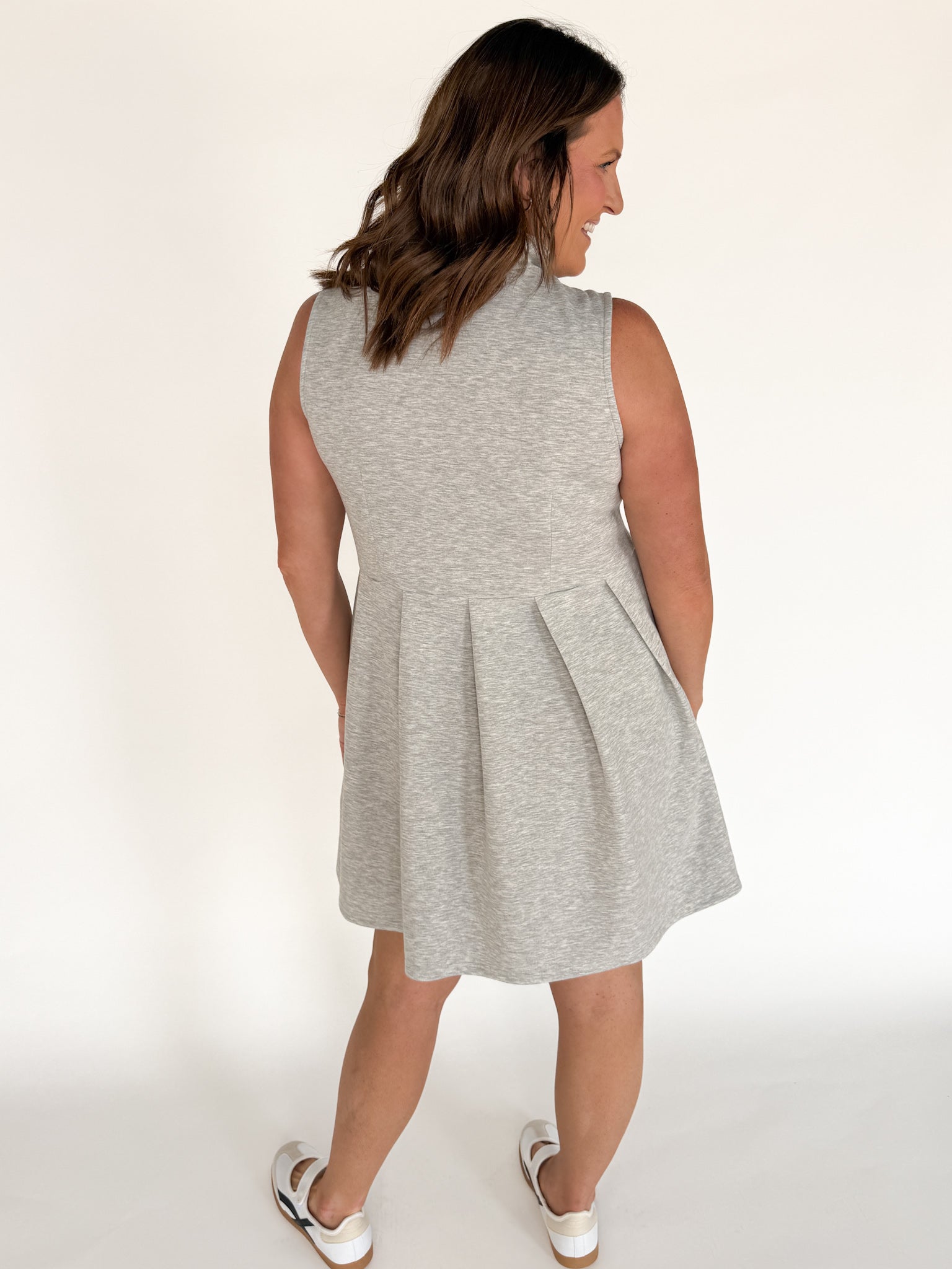This sleeveless athleisure dress features a full front zipper and a pleated skirt for the perfect mix of function and style. Easy to throw on and go, it’s perfect for busy days or the pickleball court.